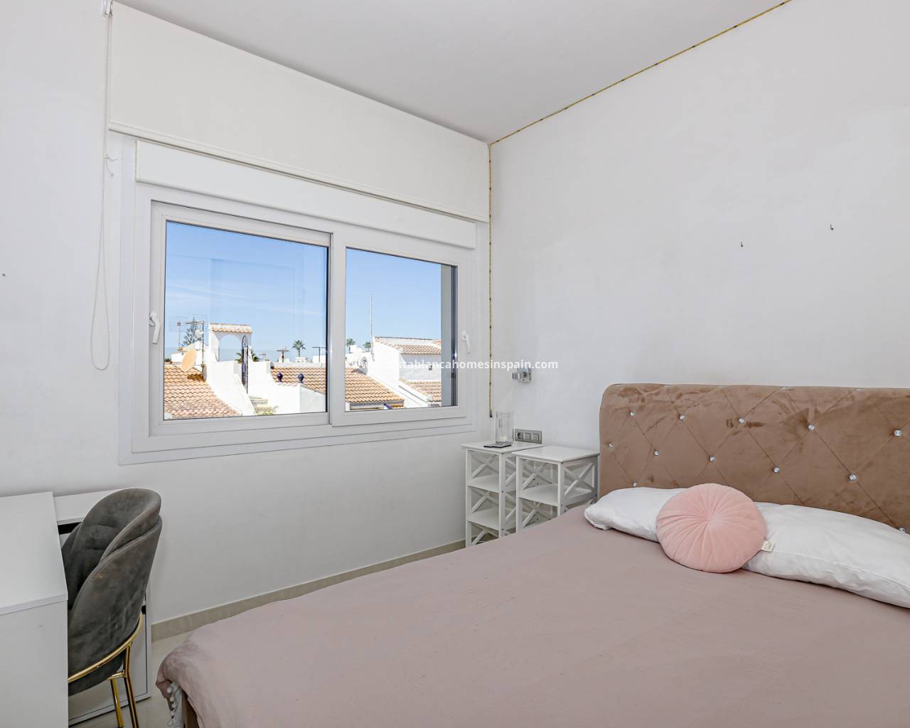 Nous vous présentons cette villa indépendante exclusive, située dans le prestigieux quartier résidentiel de Doña Pepa, à Ciudad Quesada (Rojales). La propriété se trouve au bout d’une rue calme et bénéficie d’une entrée totalement privée, avec portail automatique pour véhicules. La villa repose sur une parcelle facile d’entretien, aménagée en dalles style bois, avec quelques jardinières, une piscine privée et un local de rangement extérieur. L’un de ses atouts majeurs est le sous-sol brut, offrant un grand potentiel pour être aménagé en surface habitable supplémentaire selon vos besoins. Au rez-de-chaussée, en entrant, se trouvent une salle de bain complète (toutes équipées de chauffage au sol) et une chambre avec accès extérieur. Sur la gauche, un vaste salon-salle à manger s’ouvre sur une cuisine américaine moderne et entièrement équipée. La maison dispose de volets roulants électriques, sauf pour les grandes baies vitrées du salon. À l’étage, vous trouverez deux chambres supplémentaires, chacune avec salle de bain privative. La suite parentale profite également d’une terrasse privée. Le dernier niveau propose un grand solarium à 360º, idéal pour profiter du soleil toute la journée, avec des vues panoramiques sur les lagunes de Torrevieja. Une deuxième machine à laver y est installée (la première se trouve au rez-de-chaussée). La villa est équipée de panneaux solaires avec batteries, garantissant des économies d’énergie maximales. À proximité immédiate, vous trouverez un supermarché Consum, des bars et restaurants, et à seulement 7 km en voiture des plages de Guardamar del Segura. Une propriété idéale comme investissement ou comme résidence secondaire familiale sur la Costa Blanca. N’attendez plus pour nous contacter et organiser une visite.