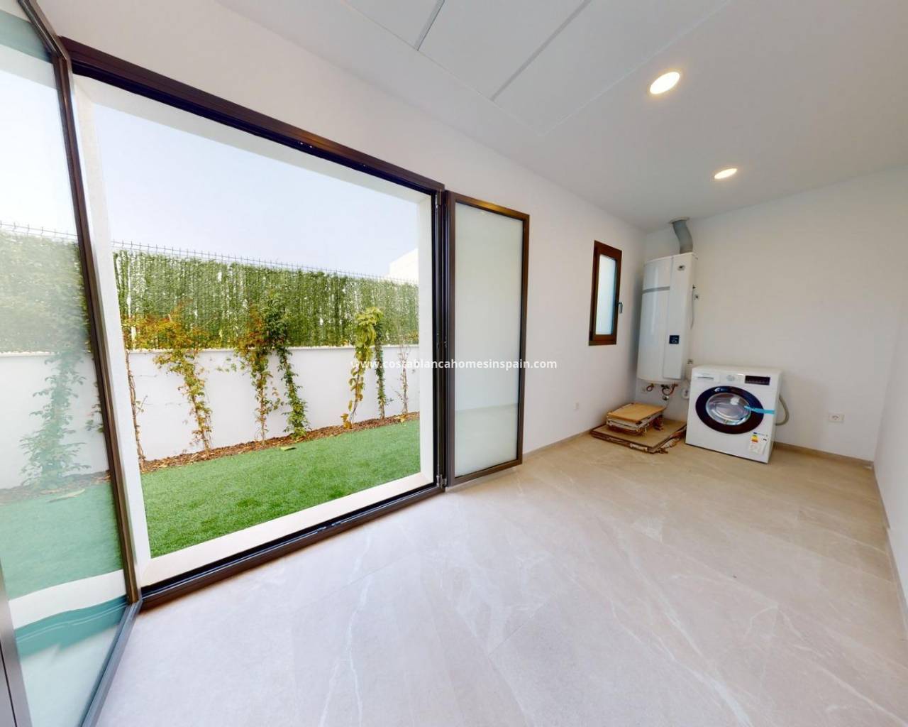 VILLAS NEUVES À LOS ALCAZARES Nouvelle construction résidentielle de villas et de maisons de ville à Serena Golf, Los Alcazares. Les villas modernes ont 3 chambres à coucher, 3 salles de bains, cuisine ouverte avec coin salon, terrasse, solarium, jardin privé avec piscine et place de parking. Cuisine entièrement équipée en blanc brillant ou couleur bois. Quartz technologique. Évier en acier inoxydable. Plaque de cuisson à induction avec hotte intégrée, four, micro-ondes, lave-linge, réfrigérateur intégré, lave-vaisselle intégré. Climatisation : Installation complète avec gaines FUJITSU. Piscine : Dimensions en fonction de la propriété, avec marches, carreaux de céramique bleus et éclairage LED blanc. Pré-installation pour pompe à chaleur. La Serena Golf est située dans la municipalité de Los Alcázares, sur une superficie de 60 hectares au bord de la Mar Menor, un environnement naturel parfait pour profiter du meilleur climat d'Europe. Los Alcázares se trouve dans la région de Murcie, à proximité des plages de Mar Menor, où l'on peut pratiquer divers sports nautiques, et est entouré de plusieurs terrains de golf. La ville de Cartagena se trouve à moins de 15 minutes en voiture et à 22 km de l'aéroport de Murcie, ce qui permet d'accéder à une vaste offre culturelle, gastronomique et sportive.