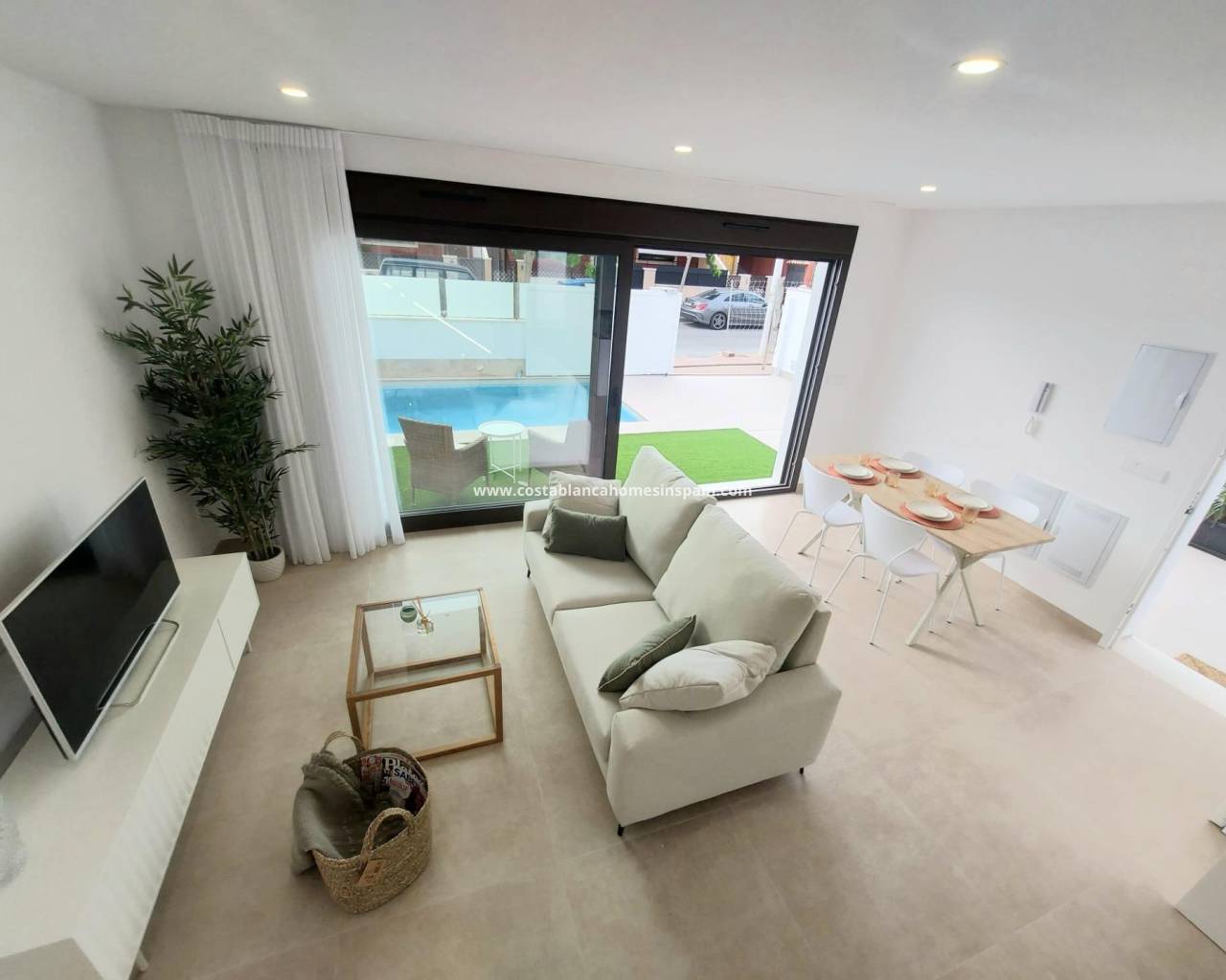 VILLAS DE NOUVELLE CONSTRUCTION À SAN PEDRO DEL PINATAR Nouvelles villas modernes situées près du centre de San Pedro del Pinatar. Les villas sont construites sur 2 étages, avec 3 chambres à coucher, 3 salles de bains, une cuisine ouverte sur le salon, des placards, un jardin privé avec une piscine et un espace de stationnement hors route, un solarium privé. Du salon, vous avez un accès direct à la terrasse et à la piscine. Les villas sont livrées avec un système de climatisation pré-installé, un système d'éclairage LED, des stores motorisés, des appareils électroménagers, un interphone, un système d'eau chaude aérothermique et une piscine privée. À proximité, vous trouverez des supermarchés, des restaurants, des magasins et des pharmacies. À une courte distance en voiture, vous pouvez atteindre plusieurs terrains de golf ou le centre commercial Dos Mares. La belle plage de Lo Pagan est à quelques minutes. La situation privilégiée de San Pedro del Pinatar, sur le Mar Menor et le littoral méditerranéen, attire les amateurs de voile et de sports nautiques, qui peuvent s'amarrer à la marina et trouver des clubs de voile, tandis que les plages et les bains de boue naturels attirent ceux qui recherchent le soleil, la mer et le sable en toute sécurité. San Pedro del Pinatar a une communauté bien établie et offre une excellente gamme d'activités, y compris une piscine couverte et des installations sportives, ainsi qu'un programme d'activités sociales tout au long de l'année au bord de la mer. ainsi qu'un programme d'activités sociales tout au long de l'année, grâce à l'agréable climat hivernal. Les bienfaits des bains de boue, typiques de la région, ou les eaux calmes de la Mar Menor, ont favorisé la croissance de Lo Pagán, qui dispose actuellement de toutes sortes de commodités. En outre, il bénéficie d'un excellent emplacement, à seulement 5 minutes du centre commercial Dos Mares.
