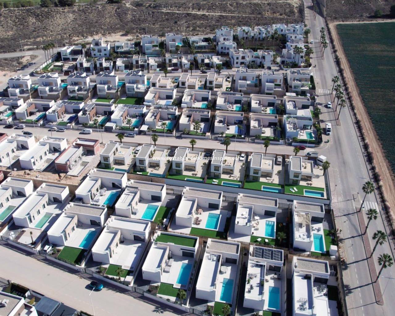 Villas neuves exclusives dans la zone du terrain de golf d'Algorfa Découvrez ces superbes villas neuves à Algorfa, nichées dans le cadre serein de l'un des plus prestigieux complexes de golf d'Espagne, La Finca Golf & Spa Resort. Situé dans le sud de la province d'Alicante, ce complexe exclusif allie un mode de vie luxueux aux avantages d'un centre de villégiature, créant ainsi la maison idéale pour les amateurs de golf et ceux qui recherchent un mode de vie méditerranéen décontracté. Elégantes villas de 3 chambres avec piscine privée et design moderne Chaque villa est conçue avec soin sur deux étages spacieux, avec 3 chambres et 2 salles de bains. La cuisine ouverte se fond parfaitement dans l'espace de vie, où de grandes fenêtres et des portes coulissantes en verre offrent une lumière naturelle abondante et un accès direct à la terrasse et à la piscine privée. Une place de parking privée pratique est incluse sur le terrain, ce qui renforce la facilité et l'exclusivité de ces maisons. Caractéristiques haut de gamme et technologie de la maison intelligente Ces villas sont dotées d'une gamme de caractéristiques haut de gamme pour offrir un maximum de confort et de sécurité. Elles sont dotées d'un parking intérieur privé, de volets électriques, d'un système de climatisation et d'un système domotique sophistiqué. En outre, un système d'alarme entièrement équipé garantit la tranquillité d'esprit. L'orientation sud/sud-ouest permet un éclairage naturel optimal tout au long de l'année, réduisant la consommation d'énergie en apportant chaleur et luminosité du lever au coucher du soleil. Des espaces de vie lumineux et ouverts avec des touches traditionnelles Conçues selon un concept ouvert, ces maisons utilisent de grandes fenêtres et des portes coulissantes pour favoriser la ventilation croisée, gardant les intérieurs frais et remplis de lumière naturelle. La conception architecturale associe une esthétique moderne à des éléments traditionnels, tels que des accents de pierre sur la façade et des détails en bois, créant ainsi une atmosphère chaleureuse et accueillante. Avec un classement EPC A, ces villas offrent une efficacité énergétique et une durabilité qui en font un choix respectueux de l'environnement pour les propriétaires. Situation privilégiée avec accès aux plages et aux principales attractions Situées dans la ville bien établie d'Algorfa, ces villas se trouvent à une courte distance en voiture des plages immaculées de Guardamar et de Torrevieja, où vous pourrez profiter de plus de 300 jours de soleil par an. À proximité, vous trouverez des centres commerciaux, des restaurants gastronomiques et des lieux de divertissement animés. L'excellente infrastructure et la proximité des grands axes routiers, dont l'autoroute AP-7, permettent de rejoindre facilement des destinations populaires comme Orihuela, Elche, Murcia et Alicante. L'aéroport d'Alicante n'est qu'à 40 km et celui de Murcie à 55 km, ce qui facilite les déplacements. Votre maison de rêve méditerranéenne vous attend - Contactez-nous dès aujourd'hui Ne manquez pas cette opportunité de posséder une luxueuse villa dans la plus prestigieuse station de golf d'Algorfa. Découvrez le mélange parfait de confort moderne, de charme traditionnel et de style de vie méditerranéen. Contactez-nous dès maintenant pour organiser une visite et découvrir la maison de vos rêves.