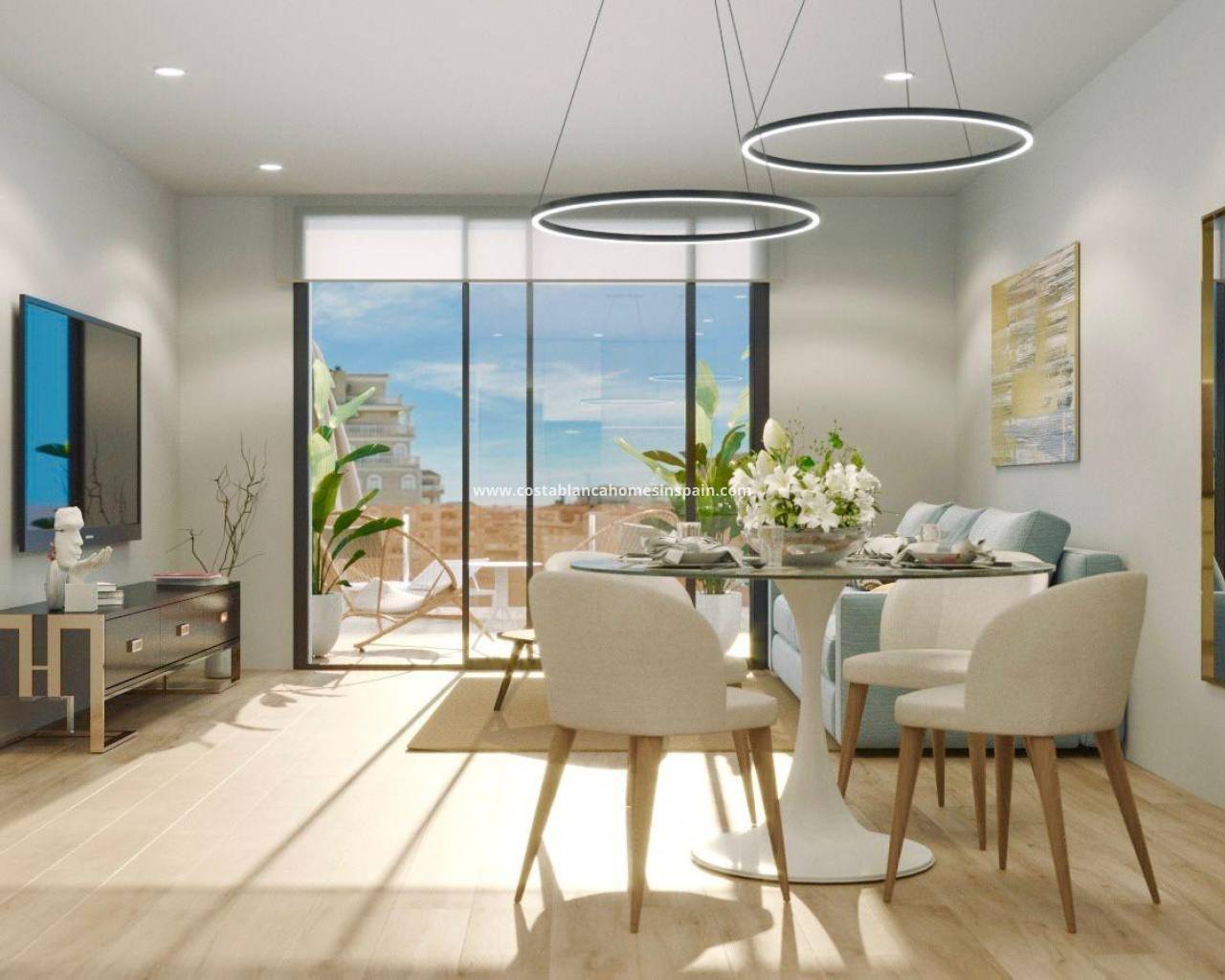 APPARTEMENTS NEUFS À TORREVIEJA PRÈS DE LA PLAGE Nouvelle construction de 8 appartements de luxe et penthouses à Torrevieja situé à seulement 150 mètres de la plage. Les propriétés modernes ont 3 chambres à coucher, 3 salles de bains, une cuisine ouverte sur le salon, des salles de bains chauffées, des terrasses spacieuses, des armoires et des cuisines entièrement équipées. Penthouses avec solariums privés. Piscine communautaire et sauna, solarium sur le toit avec barbecue. Un parking souterrain est disponible en option moyennant un supplément. Date d'achèvement fin 2025 Torrevieja est une ville espagnole de la province d'Alicante, sur la Costa Blanca. Elle est connue pour son climat typiquement méditerranéen et son littoral. Elle possède des promenades avec des stations balnéaires le long de ses plages de sable. Le petit musée de la mer et du sel présente des expositions sur l'histoire de la pêche et du sel dans la ville. À l'intérieur des terres, le parc naturel Lagunas de La Mata-Torrevieja propose des sentiers et deux lagunes salées, l'une rose et l'autre verte. L'aéroport d'Alicante se trouve à 40 minutes et celui de Murcie à environ 1 heure.