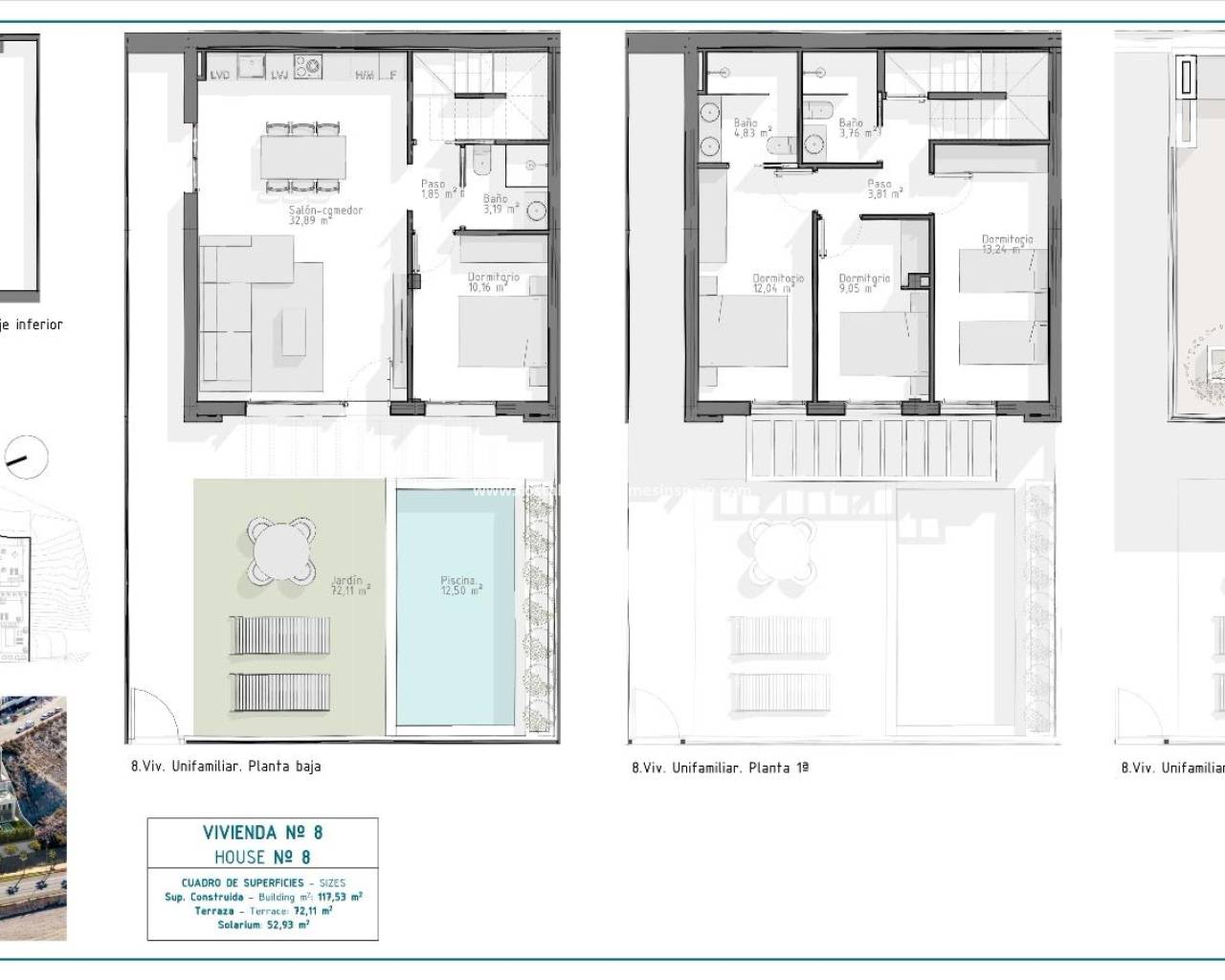 NOUVEAU COMPLEXE RÉSIDENTIEL À AGUILAS Nouveau complexe résidentiel exclusif d'appartements et de villas à Aguilas. Le complexe consiste en 36 appartements de 3 et 2 chambres à coucher distribués dans 4 blocs modernes, équipés de 2 piscines communes et d'un garage commun avec place de parking et salle de stockage pour chaque propriété ; et 10 villas élégantes de 4 chambres à coucher et 3 salles de bains, chacune avec sa propre piscine privée. Ce complexe résidentiel a été conçu dans un souci d'excellence, offrant de spacieuses terrasses au rez-de-chaussée et au premier étage et des solariums aux étages supérieurs, où la vue sur l'horizon devient une toile d'expériences. Les maisons sont dotées de cuisines et de salles de bains entièrement équipées et d'une pré-installation pour l'air conditionné. Le complexe est situé à 800 mètres de la mer, à côté d'un centre commercial. Aguilas se trouve dans une zone exceptionnelle de la Costa Cálida, à seulement 50 minutes du nouvel aéroport de Murcie ou d'Almeria et à 1h30 de l'aéroport d'Alicante. Aguilas est une petite ville avec de nombreuses commodités, une longue plage pour se promener et se détendre au soleil. C'est une enclave parfaite pour la plongée, les sports nautiques, la randonnée et le golf. Elle possède 28 kilomètres de littoral, dont 35 plages avec différents types d'épaisseur de sable situées dans différents paysages, depuis les criques et les plages vierges dans des cadres naturels jusqu'aux plages urbaines de la ville d'Aguilas. Son climat chaud et désertique est présent tout au long de l'année, avec une moyenne annuelle de 22º, des températures douces en hiver et très chaudes en été.