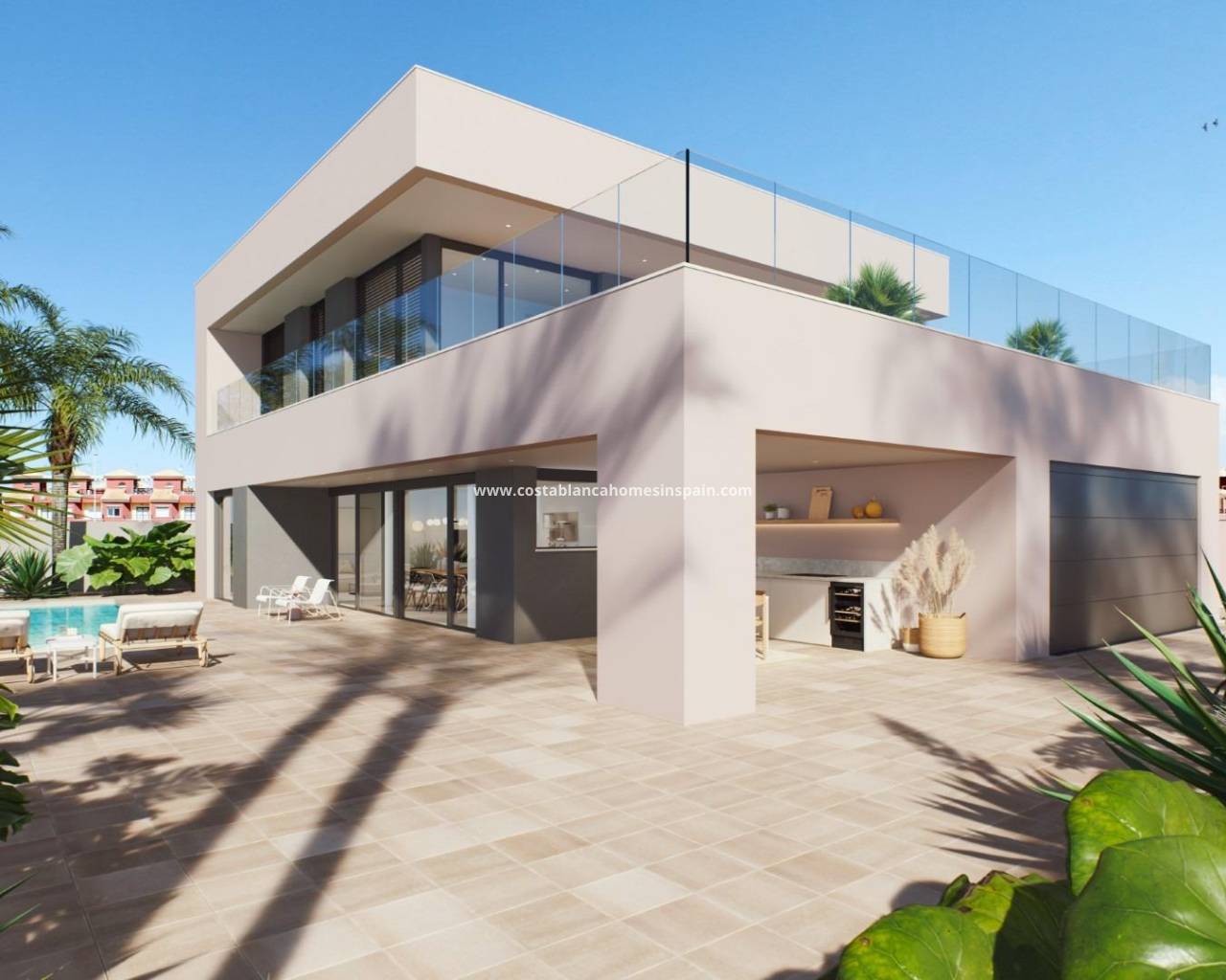 VILLA NEUVE A TORRE DE LA HORADADA Villa moderne de construction neuve près de la plage de Higuericas à Torre de la Horadada. La villa se compose d'un terrain de 618 m², avec 344 m² construits. La villa dispose de 5 chambres à coucher : deux d'entre elles avec salle de bain complète et dressing. Cuisine meublée avec des matériaux de première qualité à choisir par le propriétaire, y compris les appareils électriques, suivant un concept ouvert avec la salle à manger entourée de grandes fenêtres qui fournissent tout au long de la journée une lumière agréable et un accès direct à la piscine et les zones de jardin privé complètement fini. Climatisation (chaud/froid) par gaines incluse. En soignant les moindres détails des finitions, en utilisant des matériaux de la plus haute qualité, en personnalisant le design et le luxe sans oublier le confort maximum, nous obtenons la jouissance d'un logement aussi bien en été que dans la douceur de l'hiver, le rendant habitable tout au long de l'année. En plus d'un garage couvert pour 2 véhicules et d'un parking pour une autre voiture. Villa située à 100 m de la plage de Higuericas, à Torre de la Horadada, un paradis à tous points de vue, où vous pourrez profiter de l'immensité de la mer Méditerranée, de la promenade, des baignades rafraîchissantes dans la mer, des sports nautiques, de la voile, du surf, de la plongée avec tuba et à seulement 8 km du golf Lo Romero, l'un des 21 terrains de golf de la Costa Blanca. À 5 minutes du port de plaisance de La Torre de la Horadada et à 10 minutes des ports de plaisance de San Pedro del Pinatar, et des meilleurs restaurants où vous pourrez déguster la meilleure cuisine méditerranéenne. Sans oublier la proximité de l'autoroute AP7 qui relie notre résidence à deux aéroports aux destinations internationales, à 44 km de Corvera et à 75 km d'El Altet, Alicante. La ville la plus proche de la zone où se trouve le développement est Pilar de la Horadada, à 1 km, une ville tranquille avec toutes sortes de services, écoles, centres de santé, police, pharmacies, etc. Il y a également deux zones commerciales à proximité, le centre commercial Dos Mares à San Javier, à 5 minutes en voiture, et le boulevard La Zenia à Orihuela Costa, à 15 minutes en voiture.