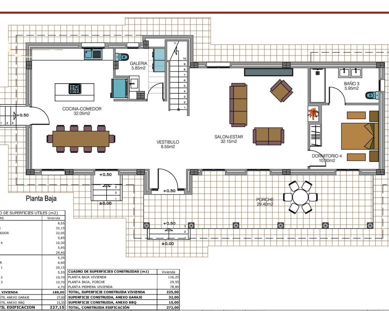VILLAS NEUVES A PINOSO Vous pouvez choisir des villas avec des touches espagnoles traditionnelles ou des finitions super modernes, lumineuses et propres. Différents terrains constructibles légaux sont disponibles (rustiques avec un minimum de 10.000 m2), certains à quelques pas de la ville, d'autres totalement privés et les plus populaires sont à 5-10 minutes en voiture d'une ville. Nous avons un terrain pour tous les goûts, tous avec une vue imprenable et tous avec l'eau et l'électricité incluses dans le prix et l'internet à haut débit disponible. Les maisons sont construites par le plus grand et le meilleur constructeur de la région et utilisent des matériaux de qualité supérieure pour une finition parfaite. Toutes les maisons comprennent une terrasse de 2m en béton matricé autour de la piscine (couleur et motif au choix), 1m autour de la maison, une entrée fermée, une clôture de 3.000 m2, un système de climatisation pré-installé, une cuisine standard, une porte de sécurité, des fenêtres allemandes oscillo-battantes (ou coulissantes si vous préférez), une cheminée intégrée, une pré-installation pour la télévision et l'internet, une allée en gravier plus quelques mètres autour de la maison, une fosse septique. Les salles de bains comprennent une colonne de douche, un receveur de douche ou une baignoire, des lavabos (plusieurs couleurs au choix) avec éviers, robinets et miroirs, ainsi qu'un grand choix de carrelages muraux. Grand choix de carreaux de sol en céramique, différentes couleurs, effet bois, etc. Les cuisines comprennent des armoires avec portes et poignées standard, conformément aux plans fournis, un évier et un robinet en acier inoxydable, une pré-installation pour le four, le lave-vaisselle et la hotte aspirante. Différents plans de travail en granit sont inclus dans le budget, d'autres plans de travail en pierre sont disponibles en supplément. Les produits blancs ne sont pas inclus. Escalier en marbre (crème, blanc ou gris) et garde-corps inclus, plus garde-corps pour le porche d'entrée. Grande fenêtre en verre fixe sur l'escalier pour plus de lumière. Choix du carrelage et des marches de la piscine. Choix du granit pour les marches extérieures de la maison et les appuis de fenêtre. Vous pouvez personnaliser la maison à votre guise, la plupart des modifications internes sont gratuites, les maisons peuvent être agrandies et nous pouvons même construire votre propre design. Les maisons peuvent être agrandies et nous pouvons même construire votre propre projet. Vous pouvez opter pour une plus grande piscine, un garage simple ou double, une maison d'amis, etc. moyennant un coût supplémentaire. La belle ville prospère de Pinoso se trouve à environ 45 minutes d'Alicante et des plages blanches de la Costa Blanca et à proximité de la frontière entre Murcie et Alicante Elle compte un peu moins de 8 000 habitants. Pinoso, également connue sous le nom de El Pinos, doit son nom aux pins qui couvrent les chaînes de montagnes de la région. Pinoso offre un style de vie rural espagnol, sans feux de circulation, pratiquement sans trafic, les seuls embouteillages étant causés par les tracteurs qui transportent les raisins à la Bodega. Les champs sont plantés de vignes, d'amandes et d'olives. En février, les champs se couvrent de fleurs d'amandiers roses. Pinoso compte de nombreux bars, restaurants et magasins, un nouveau centre médical ouvert 24 heures sur 24, des dentistes, deux écoles primaires et une école secondaire, un théâtre. Il y a un excellent centre sportif avec des piscines extérieures, des courts de tennis, des terrains de football et un gymnase, une bibliothèque et de nombreuses autres installations, dont une belle aire de pique-nique au milieu des pins, avec des barbecues, des sièges et de l'eau courante.