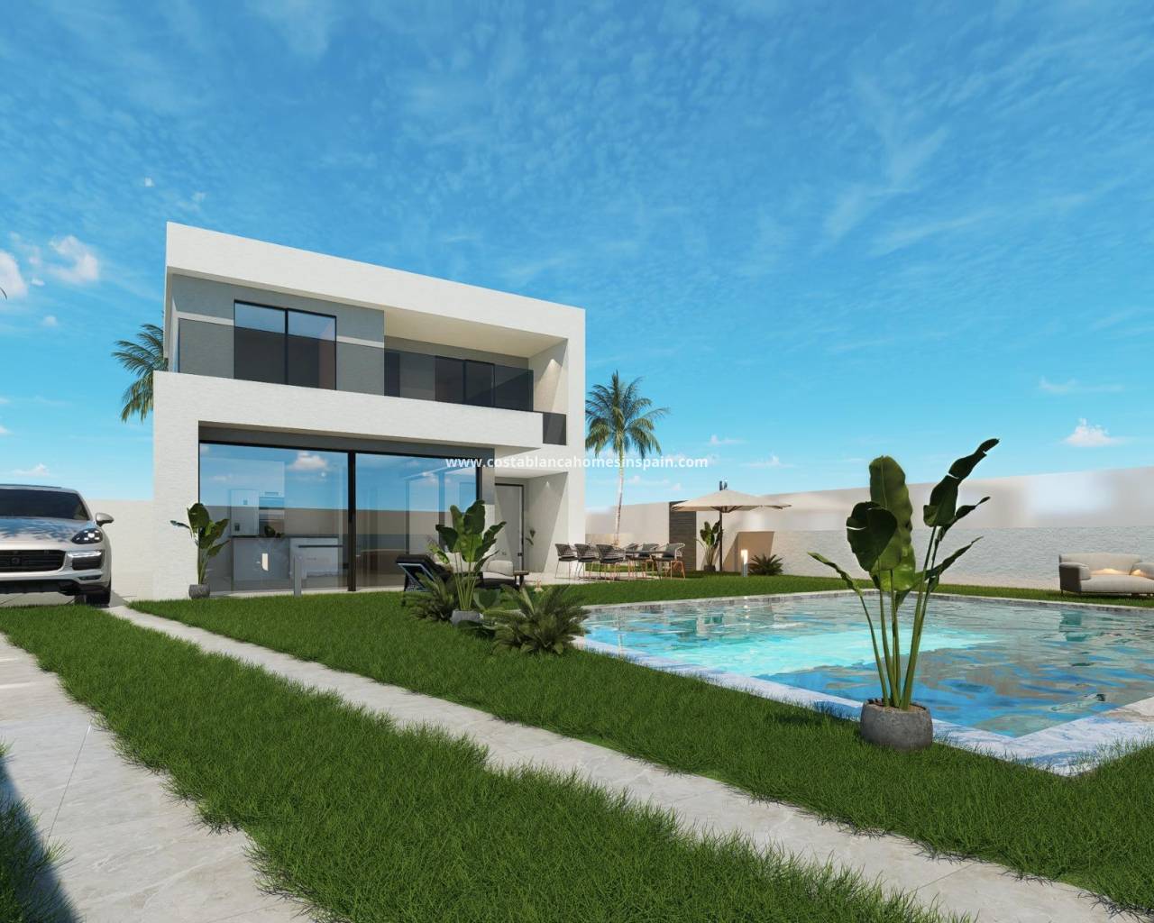 VILLA NEUVE A SAN PEDRO DEL PINATAR Cette villa neuve à deux niveaux a été conçue pour offrir un espace de vie contemporain privé et parfait, avec des portes coulissantes en verre qui s'ouvrent directement sur une grande terrasse avec une piscine privée, des jardins clos et un parking hors route. « Le soleil toute la journée » avec une terrasse au premier étage pour profiter du soleil toute la journée ... Située dans un quartier résidentiel central et bien établi, à seulement 10 minutes à pied des plages de San Pedro del Pinatar. Ce terrain exposé au sud est situé dans un quartier résidentiel à seulement 25 minutes de la ville de Cartagena et 30 minutes de la nouvelle Covera (aéroport international de Murcie). Parfaite pour vivre ... Cette villa de signature offre une sensation de générosité surdimensionnée avec 3 chambres à coucher, 3 salles de bains, toilettes invités, rangement buanderie, salon ouvert et salle à manger, terrasse couverte, terrasses ouvertes des chambres principales au premier étage, super grande piscine privée (38m2) à l'avant avec parking hors route et zone de jardin. La situation privilégiée de San Pedro del Pinatar sur la Mar Menor et le littoral méditerranéen attire les amateurs de voile et de sports nautiques, avec un port de plaisance et des clubs de voile, tandis que les plages et les bains de boue naturels attirent ceux qui recherchent le soleil, la mer et le sable en toute sécurité. San Pedro del Pinatar dispose d'une communauté bien établie et offre une excellente gamme d'activités, notamment une piscine couverte et des installations sportives, ainsi qu'un programme d'activités sociales tout au long de l'année grâce à un climat hivernal agréable. Les bienfaits des bains de boue, typiques de la région, ou les eaux calmes de la Mar Menor, ont favorisé la croissance de Lo Pagán, qui dispose actuellement de toutes sortes de commodités. De plus, il bénéficie d'un excellent emplacement, à seulement 5 minutes du centre commercial Dos Mares. L'aéroport de Murcia/Corvera se trouve à 30 minutes et celui d'Alicante à une heure de route.