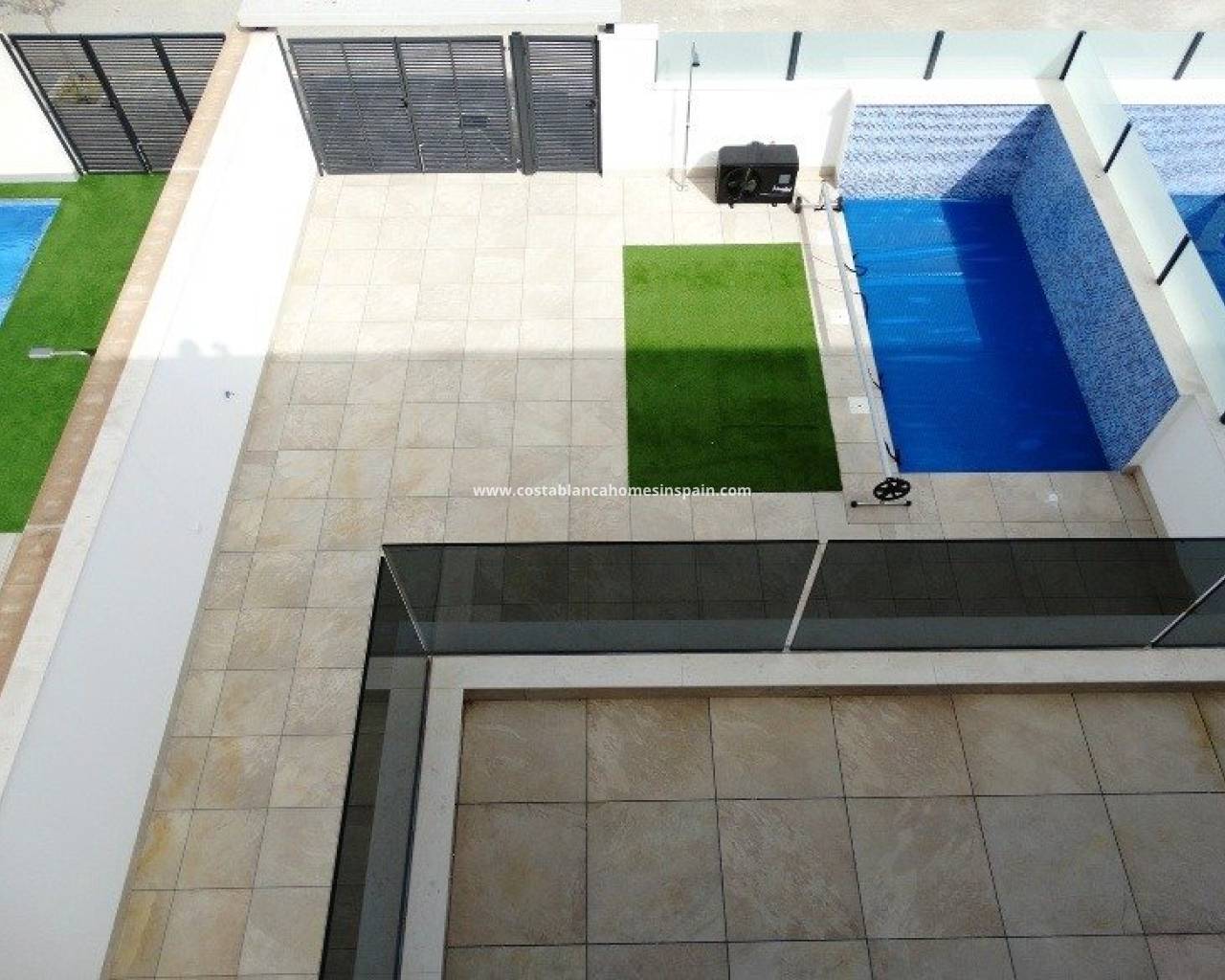 NOUVELLE CONSTRUCTION DE 4 VILLAS JUMELÉES À PILAR DE LA HORADADA Nouvelle construction de 4 villas jumelées situées à Pilar de la Horadada. Les villas sont construites sur 2 étages et ont un solarium privé, 3 chambres à coucher, 3 salles de bains, une cuisine ouverte sur le salon, un jardin avec une piscine privée et une place de parking. Villas situées à quelques mètres de tous les services et du centre. Pilar de la Horadada est un village espagnol typique situé dans la partie la plus méridionale de la Costa Blanca. La grande rue principale a des supermarchés, beaucoup de magasins, des restaurants et des bars et quelques belles places. Les belles plages de Torre de la Horadada et de Mil Palmeras, avec leur promenade de sable fin, ne sont qu'à 5 minutes. À Pilar de la Horadada, il existe également un réseau bien développé de pistes cyclables et de sentiers pédestres, ainsi qu'une grande offre d'activités sportives variées. Le terrain de golf 18 trous de Lo Romero se trouve à une courte distance en voiture de la ville. Les aéroports de Corvera (Murcie) et d'Alicante sont respectivement à 40 et 55 minutes.