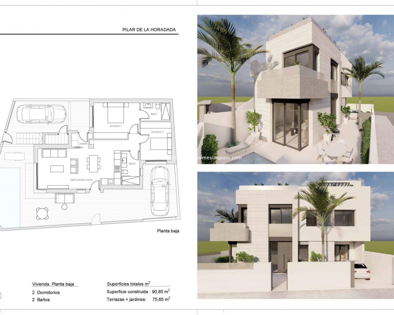 Bungalows neufs exclusifs avec piscine privée à Pilar de la Horadada Une vie moderne dans un emplacement privilégié sur la Costa Blanca Découvrez un nouveau programme immobilier exclusif composé de seulement deux bungalows haut de gamme situés au cœur de Pilar de la Horadada, une charmante ville côtière de la Costa Blanca réputée pour ses plages de sable fin, son ambiance paisible et son style de vie méditerranéen. Le complexe résidentiel est situé à seulement 2,5 km de la plage et à quelques pas des supermarchés, des magasins, des restaurants et des services quotidiens essentiels. Avec d'excellentes liaisons routières et l'aéroport d'Alicante à seulement 45 km, cet emplacement offre l'équilibre parfait entre tranquillité, confort et accessibilité. Deux maisons uniques conçues pour le confort Le projet comprend deux élégantes maisons de 2 chambres et 2 salles de bains, conçues avec des finitions de haute qualité et des agencements modernes. L'une des salles de bains est attenante, offrant ainsi plus d'intimité et de commodité. Chaque propriété offre une expérience de vie en plein air unique, adaptée à différents styles de vie. Bungalow au rez-de-chaussée avec grand jardin et piscine privée Le rez-de-chaussée comprend un grand jardin de 75 m² idéal pour les repas en plein air, les bains de soleil et les loisirs. Une piscine privée est incluse, ainsi qu'un parking privé à l'intérieur du terrain. De grandes fenêtres et des espaces ouverts créent une atmosphère lumineuse et accueillante dans toute la maison. Bungalow penthouse avec solarium et piscine privés La résidence à l'étage supérieur dispose d'une place de parking clôturée au rez-de-chaussée et d'un accès par un escalier extérieur. Elle dispose d'une terrasse spacieuse et d'un solarium privé sur le toit avec sa propre piscine, créant ainsi un refuge exclusif pour profiter du climat méditerranéen et d'une vue imprenable. Mode de vie à Pilar de la Horadada Cette commune côtière est connue pour son atmosphère calme et détendue, ses belles plages telles que Mil Palmeras et son large éventail d'activités de plein air. La plongée avec tuba, la plongée sous-marine, les promenades côtières et le vélo font partie du mode de vie quotidien des résidents et des visiteurs. Les amoureux de la nature apprécieront la proximité des marais salants de San Pedro, situés à environ 12 km, qui offrent des paysages pittoresques et une faune sauvage. Distances vers les principaux points d'intérêt Plage : 2,5 km Salines de San Pedro : 12 km Golf Lo Romero : 6 km Aéroport d'Alicante : 45 km Aéroport de Murcie : 40 km Torrevieja : 20 km Assurez-vous dès aujourd'hui votre maison exclusive Saisissez l'opportunité d'acquérir une propriété unique avec des espaces extérieurs exceptionnels dans l'une des zones les plus prisées de la Costa Blanca. Contactez-nous dès aujourd'hui pour organiser une visite et réserver votre nouvelle maison à Pilar de la Horadada.