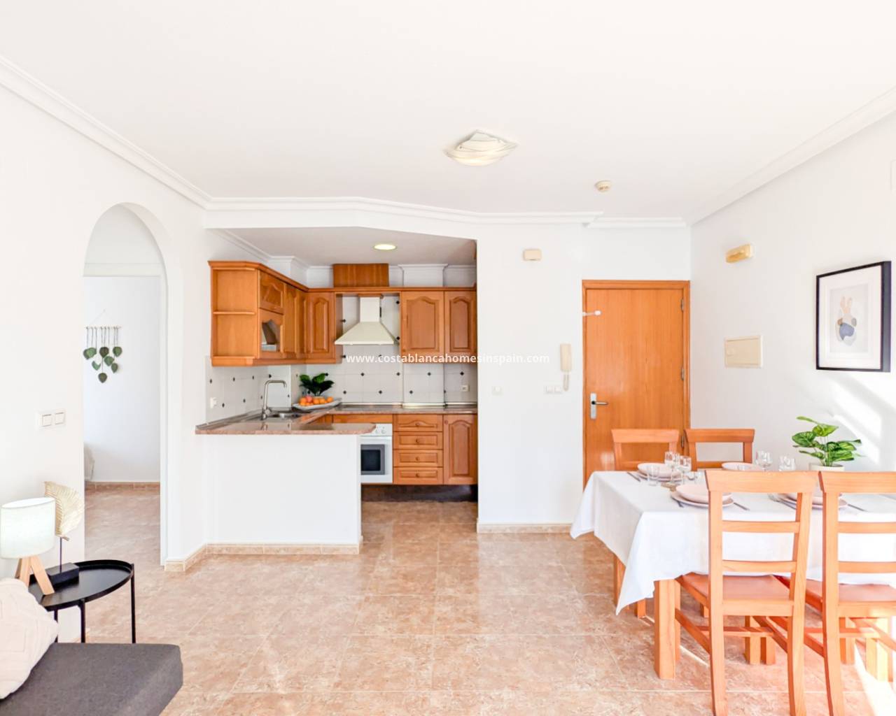 Situé dans l’un des quartiers les plus recherchés de Cabo Roig, à seulement cinq minutes à pied de la plage, cet appartement élégant et parfaitement agencé se trouve dans la résidence appréciée Playa Marina 1. Il offre une combinaison rare de situation centrale, tranquillité absolue et véritable art de vivre méditerranéen, dans une zone où la demande locative touristique est très élevée. L’appartement est orienté vers le côté le plus calme de l’immeuble, avec vue sur la piscine entourée de palmiers, créant une atmosphère verdoyante et apaisante. Bien que restaurants, cafés et services se trouvent juste à la sortie de l’une des entrées, le logement reste paisible et privé. Le salon spacieux, avec cuisine ouverte, bénéficie d’une belle luminosité et d’un agencement convivial. Il est équipé de la climatisation, et donne accès à la terrasse exposée plein sud, idéale pour profiter du soleil tout au long de la journée. La cuisine est intégrée de manière fonctionnelle et comprend notamment une machine à laver. La chambre principale dispose de la climatisation et d’un placard intégré, assurant un confort optimal. La seconde chambre offre une vue sur la piscine et est également équipée d’un placard, ce qui la rend parfaite comme chambre d’amis ou bureau. Une place de parking en garage est incluse, un véritable atout dans le secteur. Playa Marina 1 est une résidence bien gérée avec deux accès distincts : l’un menant directement à la zone animée de restaurants de Cabo Roig, l’autre passant par l’espace piscine pour un environnement plus calme. La résidence est spécialement conçue pour les appartements touristiques, un avantage considérable dans le contexte actuel où l’obtention de licences touristiques est devenue de plus en plus complexe. Cela rend ce bien particulièrement attractif pour ceux qui souhaitent combiner usage personnel et location, dans une zone à forte demande. Un bien qui réunit qualité de vie, sécurité et flexibilité à long terme, au bord de la Méditerranée.