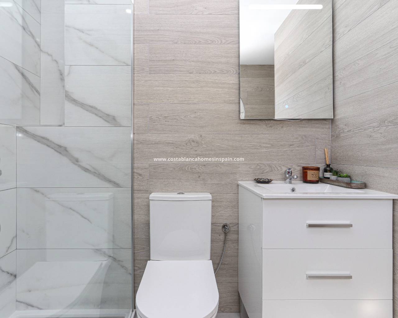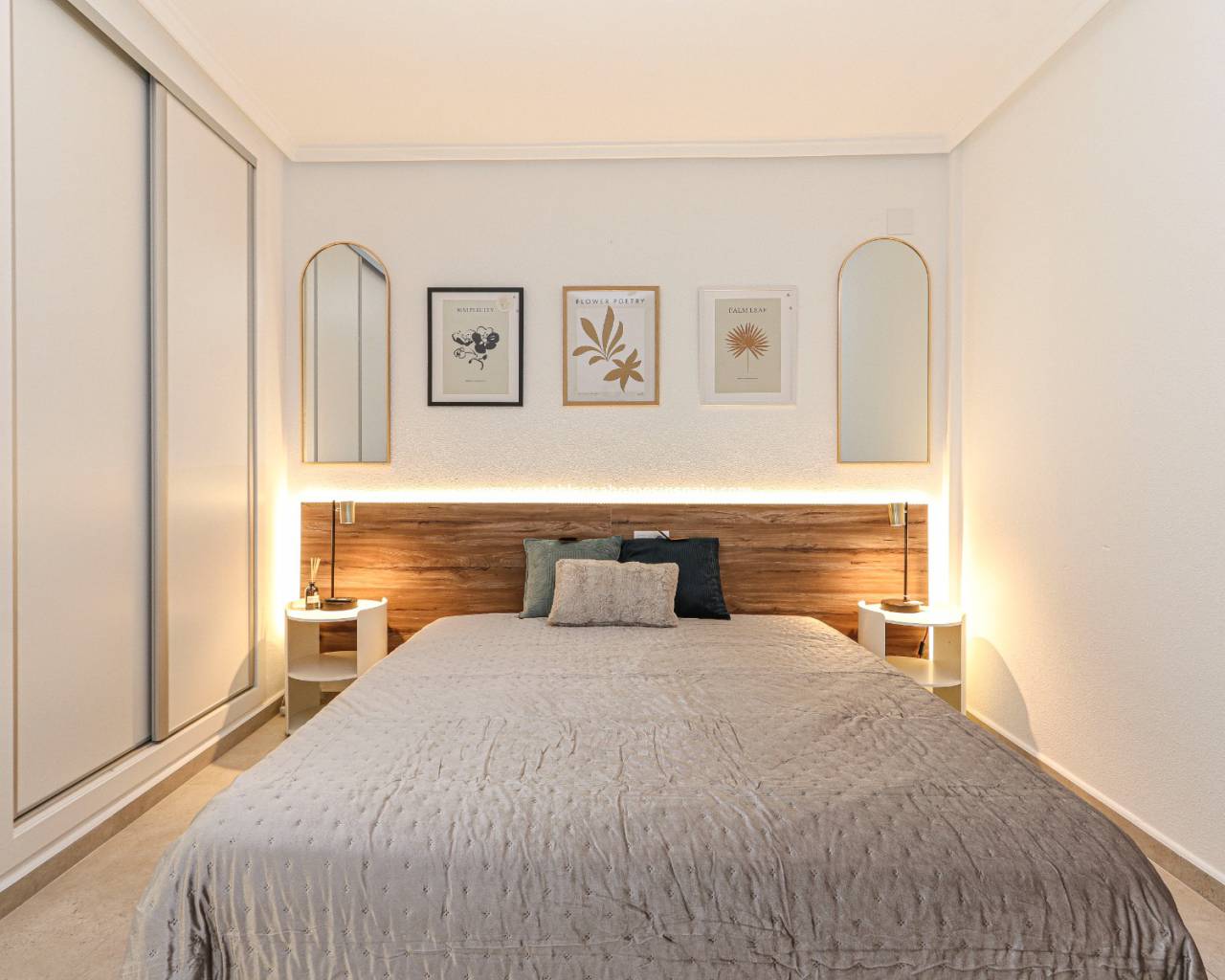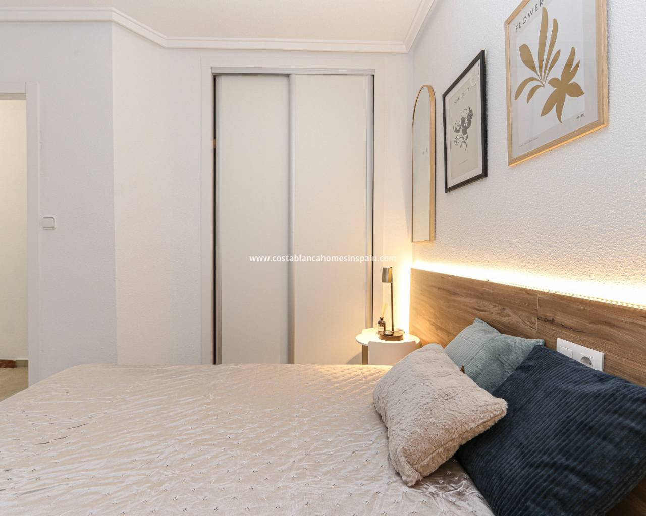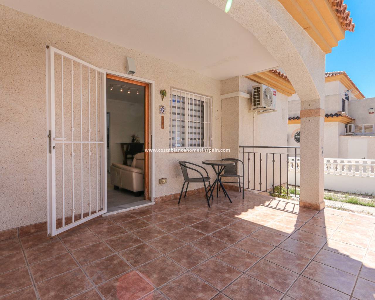 A reformed 2 bedroom house in Playa Flamenca in the desirable gated urbanisation of Iria V. The property has a new independent kitchen with a separate store room to the side, a fully reformed modern bathroom, a large bedroom downstairs and a large master bedroom upstairs. At the top of the stairs is a door leading out to the large terrace, which can also be accessed from the master bedroom. A communal swimming pool is just a short walk away, as are the local amenities of many bars and restaurants.