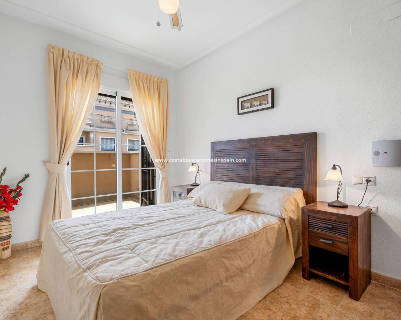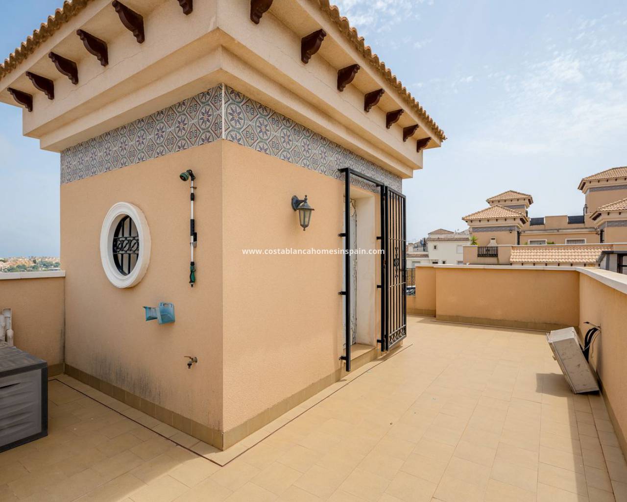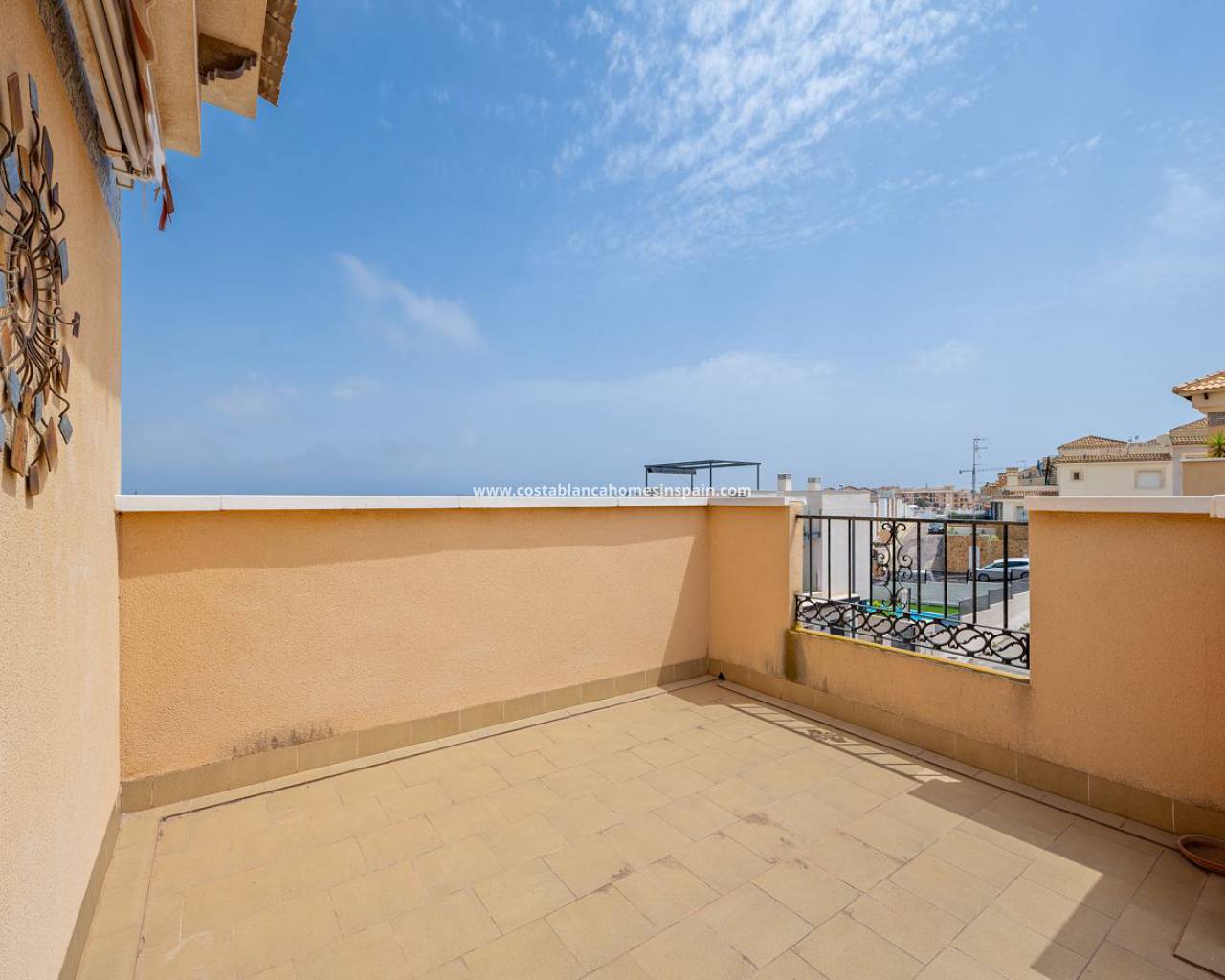 Vous entrez dans cette maison de ville très bien entretenue dans un salon / salle à manger spacieux et aéré avec la cuisine séparée à l'arrière - il y a une cour arrière pratique avec une porte latérale menant au terrain d'angle très spacieux de l'espace barbecue. Il y a aussi une salle de douche et des toilettes au rez-de-chaussée. Au premier étage se trouvent trois chambres doubles avec placards, la chambre principale bénéficie d'un grand balcon et il y a aussi une salle de bain familiale. À l'étage, vous trouverez un grand solarium de la taille de l'empreinte de la maison avec une vue imprenable sur les lacs. Cette excellente propriété bénéficie de la climatisation, d'un grand jardin d'angle facile à entretenir et d'une belle piscine commune à quelques pas. Situé dans le quartier populaire de Pau 26 à Villamartin, il y a un supermarché et des commodités à quelques pas, les belles plages de drapeau bleu d'Orihuela Costa sont à seulement 10 minutes en voiture, ainsi que toutes les commodités et installations, y compris les terrains de golf d'Orihuela Costa qui en fait un endroit fantastique pour avoir une maison de vacances ou résider en permanence. Les aéroports d'Alicante et de Murcie sont à 45 minutes en voiture.
