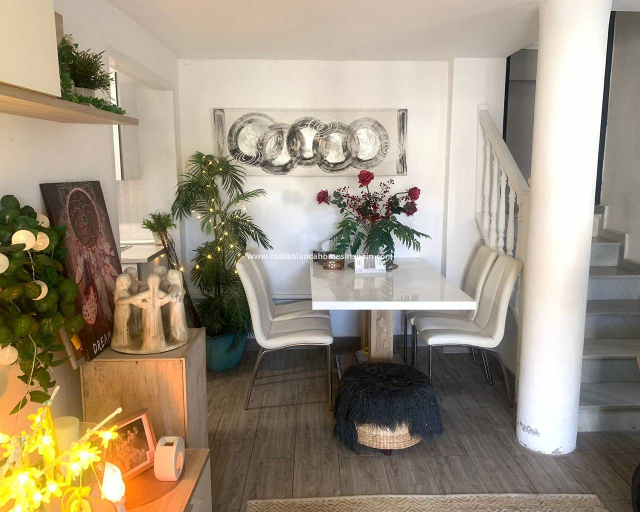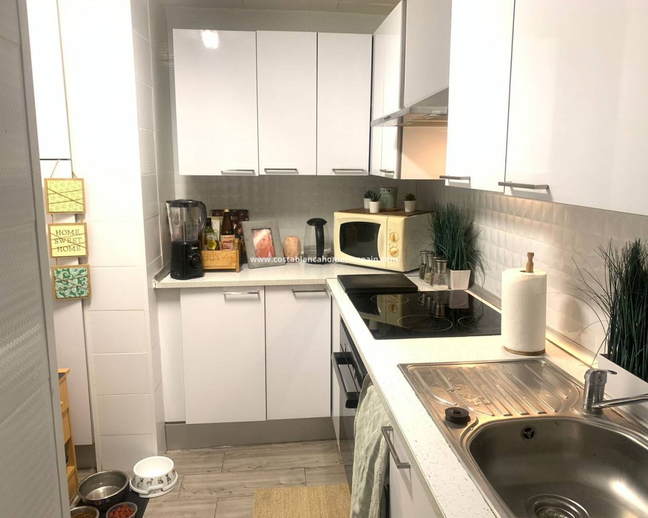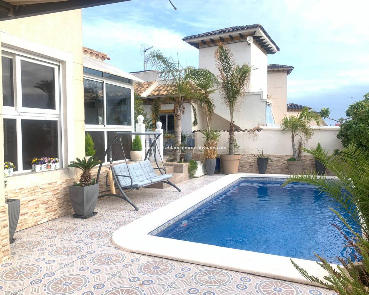 Il y a beaucoup d'espace extérieur pour profiter du fantastique climat espagnol, y compris un jardin avec une grande piscine privée et un espace détente orienté au sud. Il y a également une sortie qui vous mène directement au boulevard Zenia, un solarium avec vue sur la mer. L'allée qui peut également être utilisée comme terrasse pour l'appartement en construction ou votre voiture. La propriété est proposée entièrement meublée avec climatisation partout.