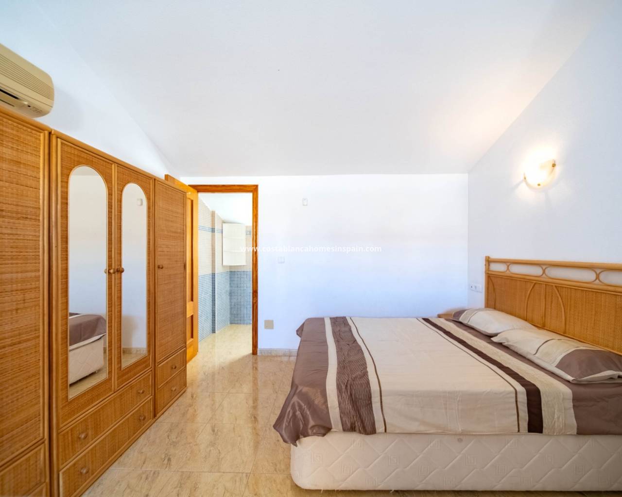 • Premier étage : Chambre double et chambre twin, toutes deux avec placards intégrés, dont une avec terrasse ensoleillée, et salle de bain familiale
