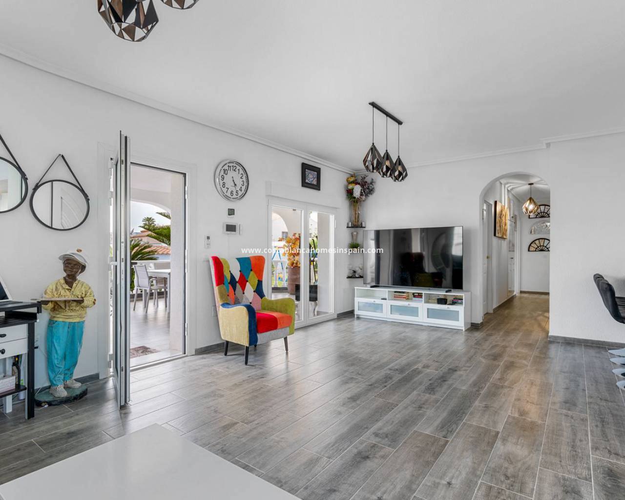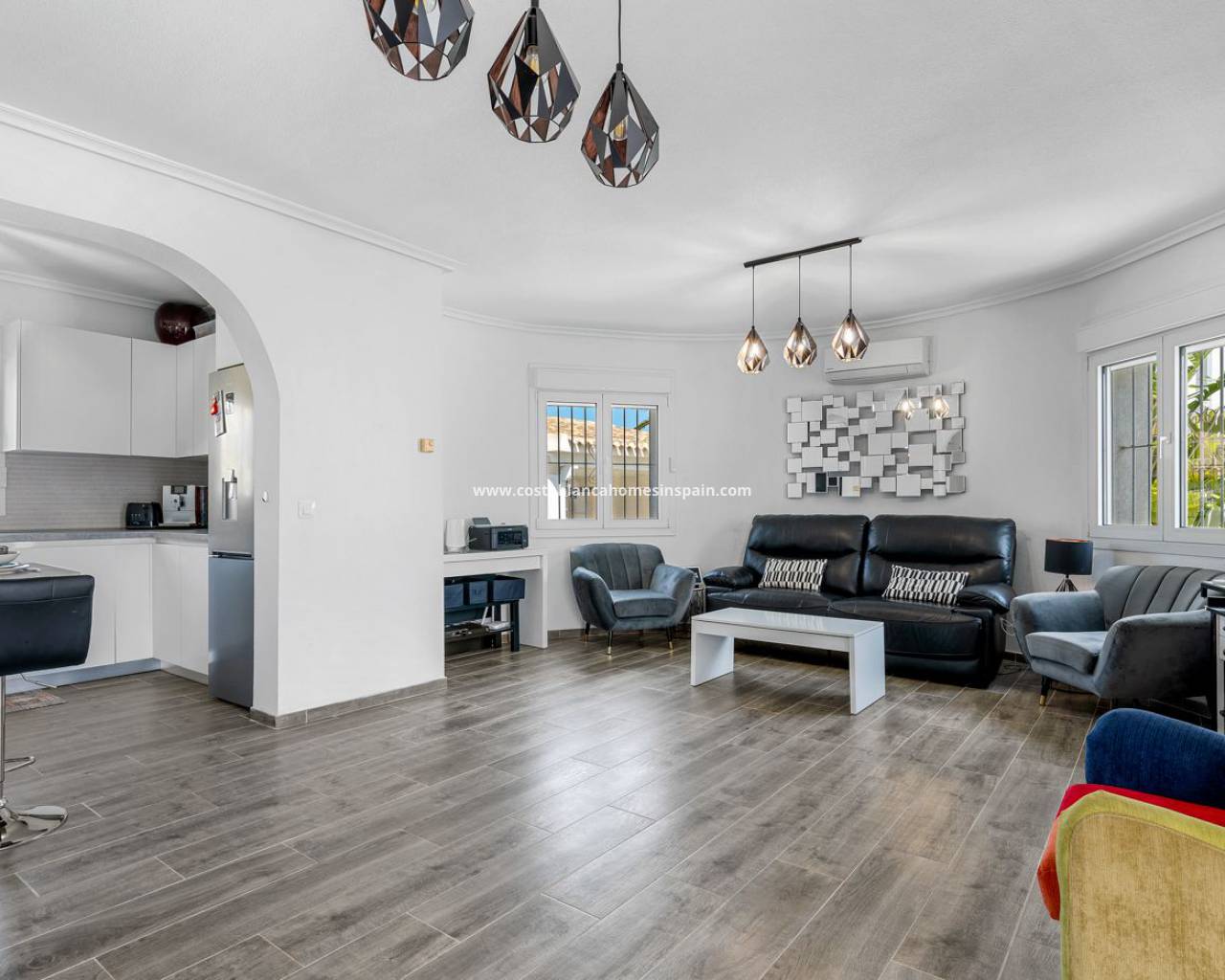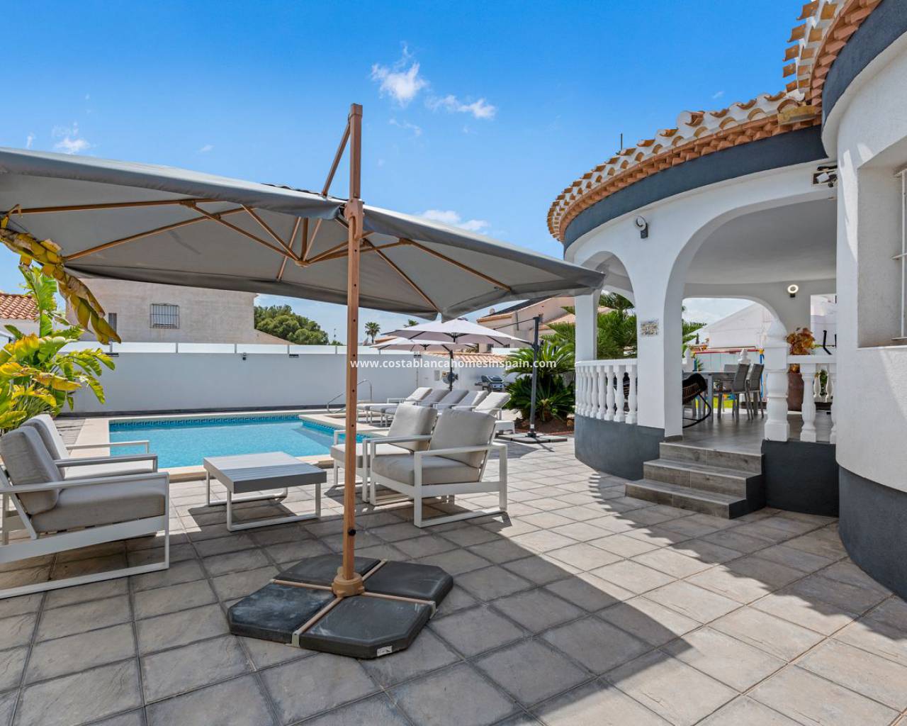 Þessi frábæra eign er staðsett á hinu vinsæla Playa Flamenca svæði, í aðeins nokkurra mínútna göngufjarlægð frá Zenia Boulevard verslunarmiðstöðinni og ströndinni. Rétt við Market Street er eignin með háa einkaveggi og rafmagnshlið fyrir bílana þína. Stóri sólríka garðurinn er með ávaxtatrjám og náttúrulegu grasi, pálma og Estrilizias, auðvelt í viðhaldi en veitir rómantískt umhverfi allt árið um kring. Stór einkasundlaug er á sólarhlið eignarinnar og með henni slökunarsvæði með sólbekkjum og stólum. Gengið er inn í eignina til suðurs með verönd þar sem hægt er að njóta kvölds og síðdegis utandyra og kjörinn morgunmatur. Þegar þú ferð í gegnum útidyrnar munt þú finna þig í stóru stofunni með nútímalegu endurnýjuðu eldhúsi sem er fullbúið með hágæða tækjum. Úr stofu er stór gangur sem leiðir inn í svefnherbergi en þar er að finna 3 hjónaherbergi, 1 baðherbergi og sérbaðherbergi á aðalbaðherbergi að aftan. Á þessum gangi er einnig þvottahús til að geyma allt sem þú gætir átt til að elda og þrífa. Gististaðurinn er með gólfhita í gegn, skipt eftir hlutum, og loftkæling í hverju herbergi. Efni sem notuð eru í bygginguna eru mjög vönduð og hefur húsið verið endurheimt með viðbótareinangrun í hverjum útvegg. Skipulag þessarar eignar er fullkomið fyrir litla fjölskyldu til að búa allt árið um kring eða fyrir frí. Staðsetningin er fullkomin og stefnumörkunin býður þér að vera í sólinni á hverjum degi.