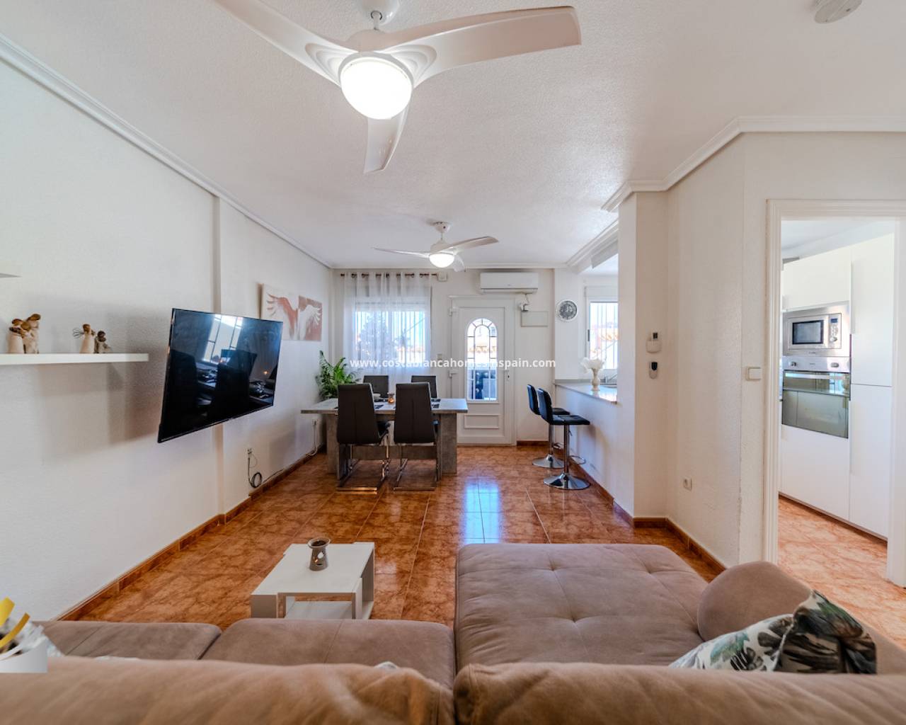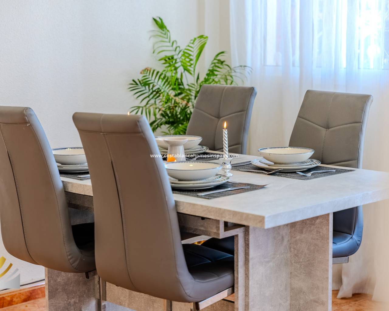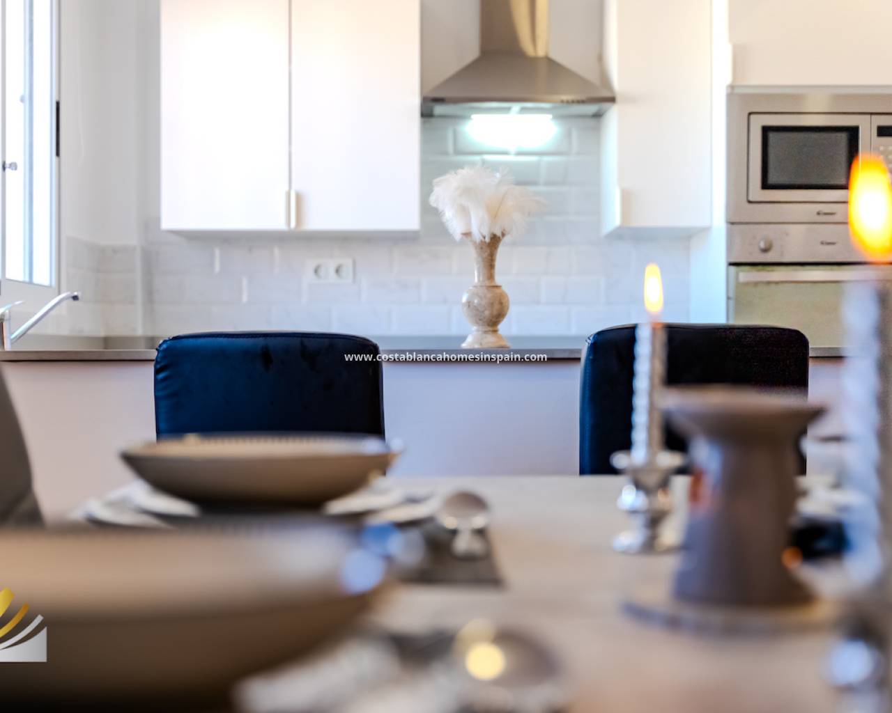 Þetta nýuppgerða og glæsilega 3ja herbergja, 2ja baðherbergja hús sameinar nútímalegan stíl, þægindi og fullkomna staðsetningu – aðeins 7 mínútna göngufjarlægð frá hinu vinsæla Cabo Roig-striki með fjölbreyttu úrvali veitingastaða, kaffihúsa og skemmtistaða.