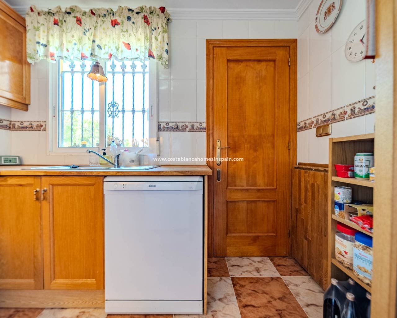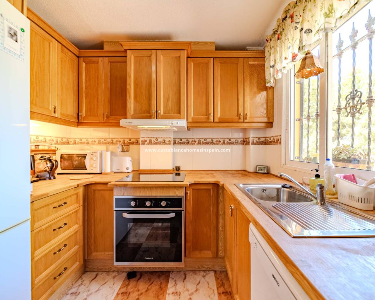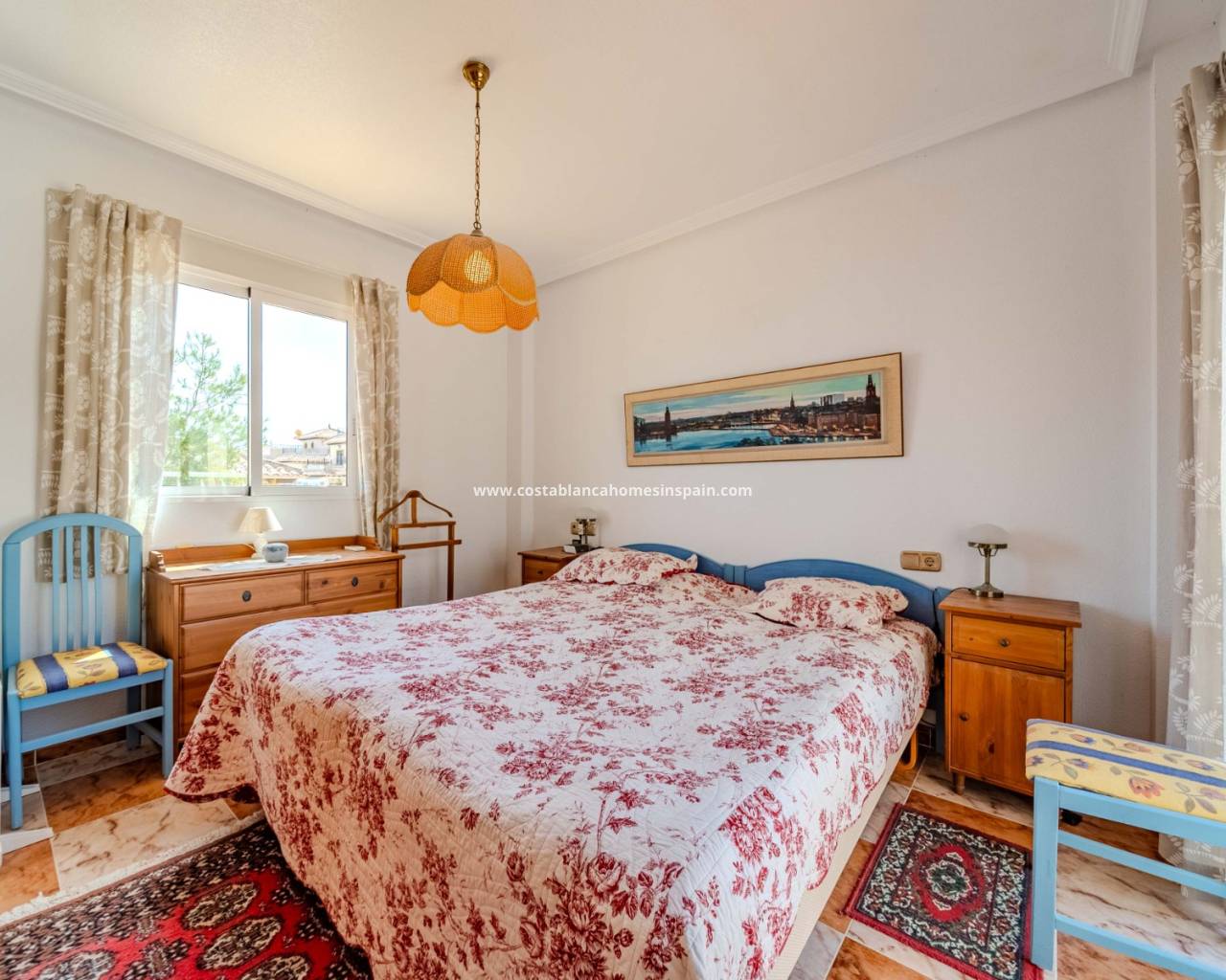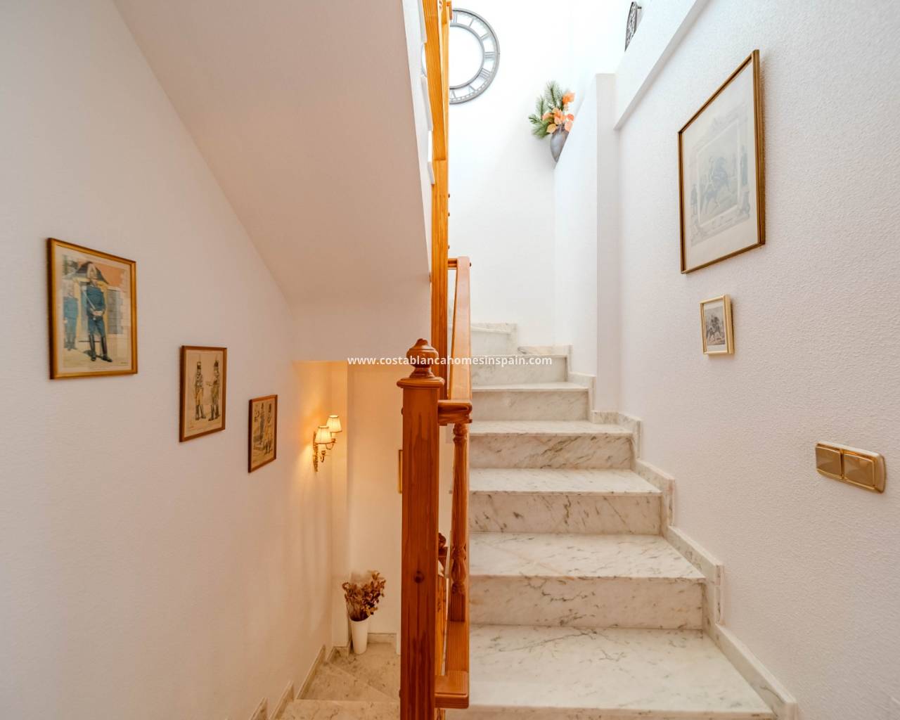 Denne nydelige villaen var det originale showhuset, så er satt på en stor tomt med sitt private oppvarmede basseng. Den kommer med en sol gjennomvåt terrasse over å se bassenget og en fin størrelse salong og kjøkken med et vaskerom og har et dusjrom og et stort dobbelt soverom nede. Det øverste nivået har to store doble soverom og et fullt familiebad med tilgang til en annen stor terrasse på hovedrommet, pluss at du har fordelen av et privat solarium med uavbrutt panoramautsikt. Villaen ligger en 8-minutters spasertur til alle lokale barer og restauranter på Villamartin Plaza og må sees.