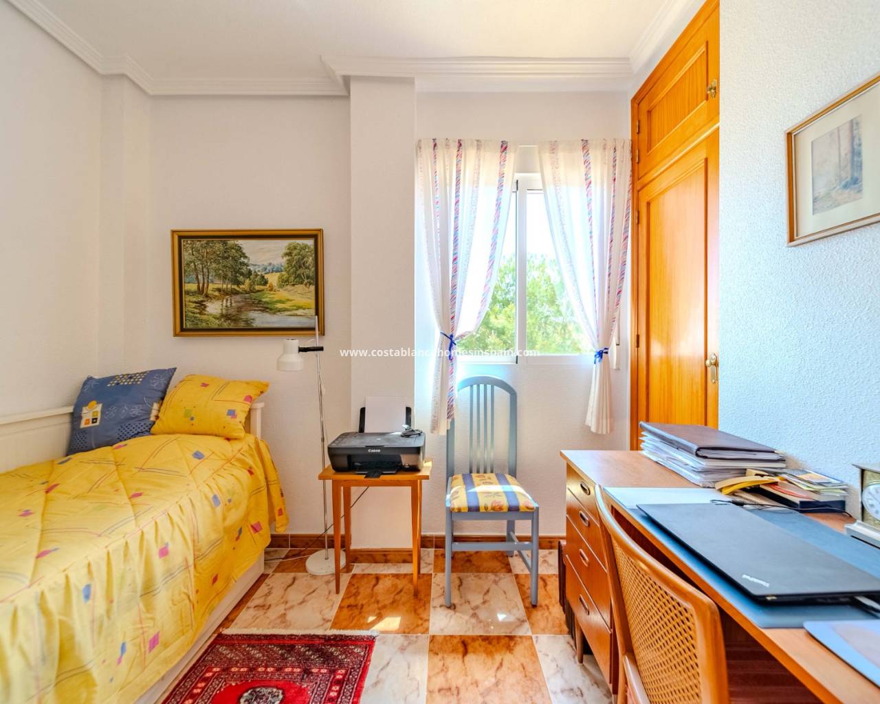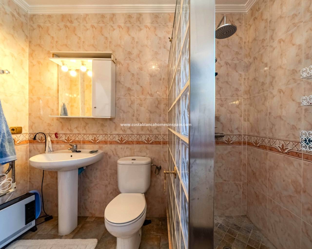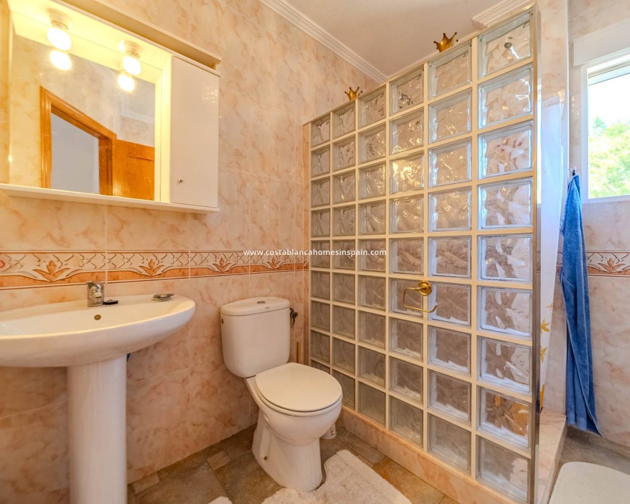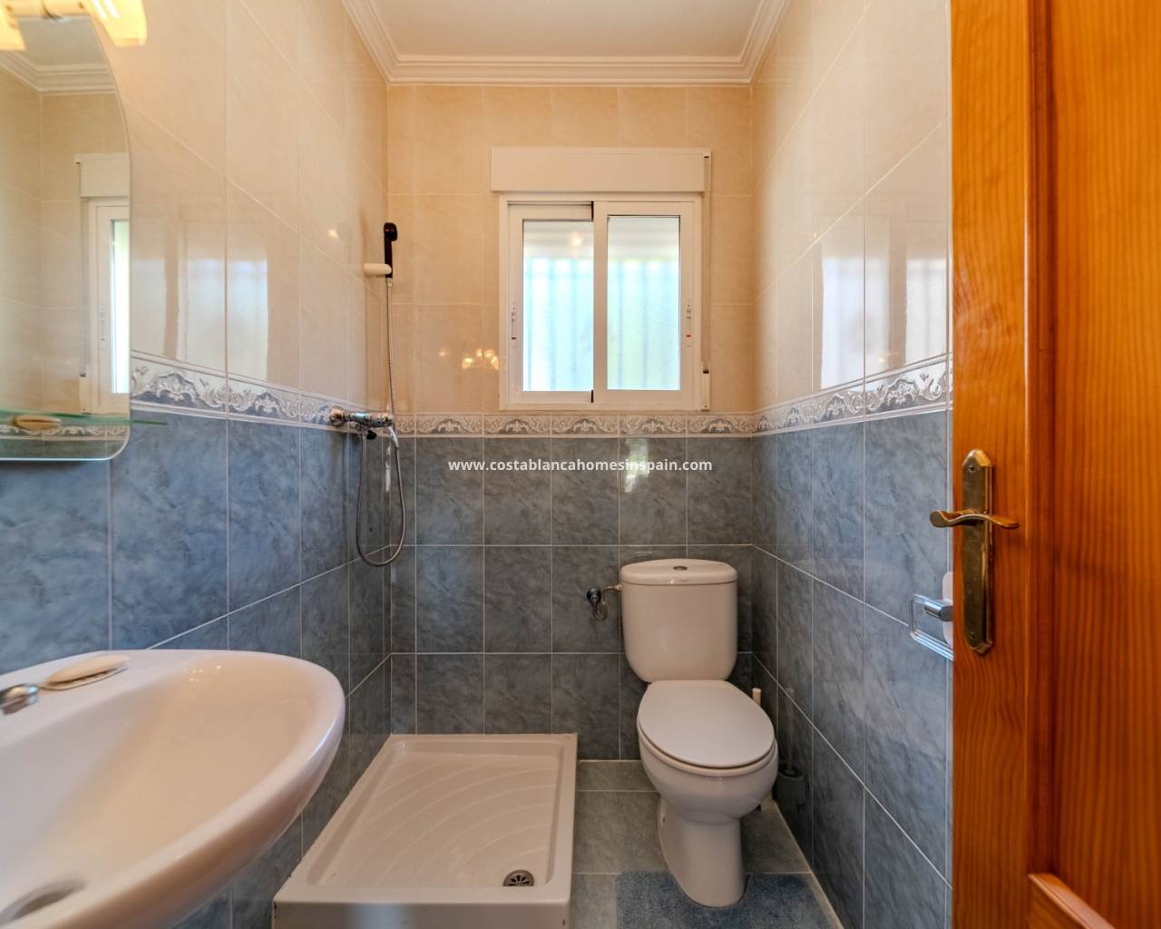 Denne nydelige villaen var det originale showhuset, så er satt på en stor tomt med sitt private oppvarmede basseng. Den kommer med en sol gjennomvåt terrasse over å se bassenget og en fin størrelse salong og kjøkken med et vaskerom og har et dusjrom og et stort dobbelt soverom nede. Det øverste nivået har to store doble soverom og et fullt familiebad med tilgang til en annen stor terrasse på hovedrommet, pluss at du har fordelen av et privat solarium med uavbrutt panoramautsikt. Villaen ligger en 8-minutters spasertur til alle lokale barer og restauranter på Villamartin Plaza og må sees.
