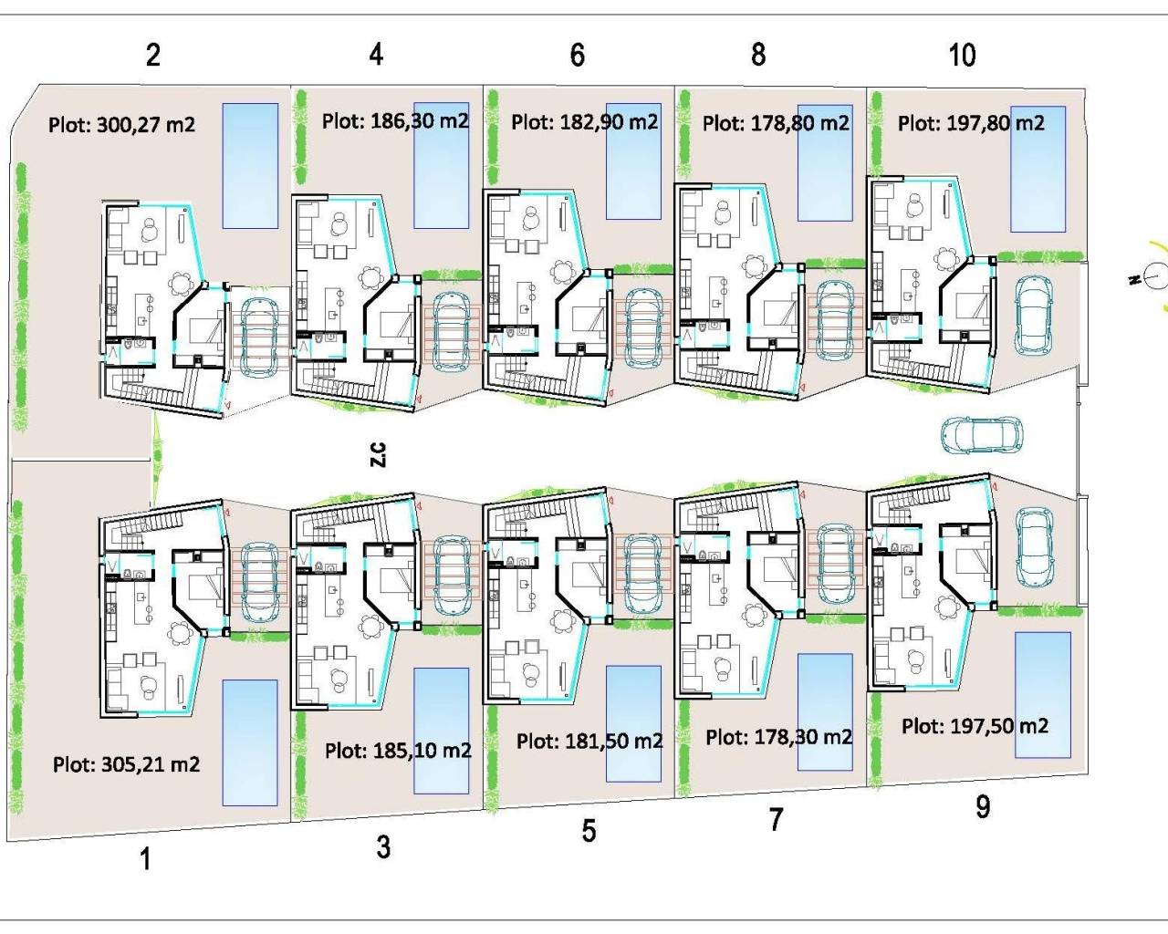 Nybyggede luksusvillaer i Orihuela Costa – mindre enn 4 km fra stranden Opplev førsteklasses kystliv i dette eksklusive nye boligprosjektet med 10 frittliggende villaer i Los Altos, et av de mest ettertraktede områdene i Orihuela Costa, Alicante. Disse luksuriøse villaene er designet med komfort, stil og funksjonalitet i tankene, og tilbyr en perfekt blanding av moderne arkitektur og middelhavsliv, bare noen minutter fra sjøen og viktige tjenester. Romslige villaer med private bassenger og solterrasser Hver villa er fordelt på to etasjer pluss en solterrasse på taket og inkluderer: 3 soverom, hvorav 2 med eget bad 3 fullt utstyrte bad Åpen kjøkkenløsning i forbindelse med stuen Store vinduer som gir naturlig lys og direkte tilgang til terrassen Privat hage med delvis overbygd terrasse og svømmebasseng Privat parkering på eiendommen Disse boligene er ideelle for familier, pensjonister eller investorer som ønsker en bolig av høy kvalitet nær stranden på Costa Blanca. Førsteklasses finish og energieffektive systemer Hver villa er bygget etter høye spesifikasjoner og har: Porcelanosa-fliser i hele eiendommen Aerotermisk vannvarmesystem for energieffektivitet Moderne bad med møbler og dusjvegger Motoriserte persienner i alle soverom Romslig solterrasse på taket, perfekt for soling eller avslapning utendørs Alle materialer og overflater er nøye utvalgt for å tilby et raffinert, holdbart og miljøbevisst hjem. Førsteklasses beliggenhet i Los Altos, Orihuela Costa Dette boligkomplekset ligger mindre enn 4 km fra strendene i Punta Prima og Playa Flamenca, og tilbyr enkel tilgang til det beste Orihuela Costa har å tilby. Området er kjent for sin utmerkede infrastruktur og tjenester, inkludert: Zenia Boulevard kjøpesenter – 3 km Villamartín Golf – 5 km Las Ramblas Golf – 7 km Alicante lufthavn – 55 km Murcia-Corvera lufthavn – 60 km Torrevieja marina – 6 km Los Altos er et fredelig, men likevel livlig nabolag med supermarkeder, skoler, legesentre og restauranter, noe som gjør det til et ideelt sted å bo hele året eller til ferier. Din luksuriøse villa venter på Costa Blanca Ikke gå glipp av muligheten til å eie en fantastisk ny villa i et av de mest attraktive kystområdene i Alicante. Kontakt oss i dag for mer informasjon eller for å bestille en visning.