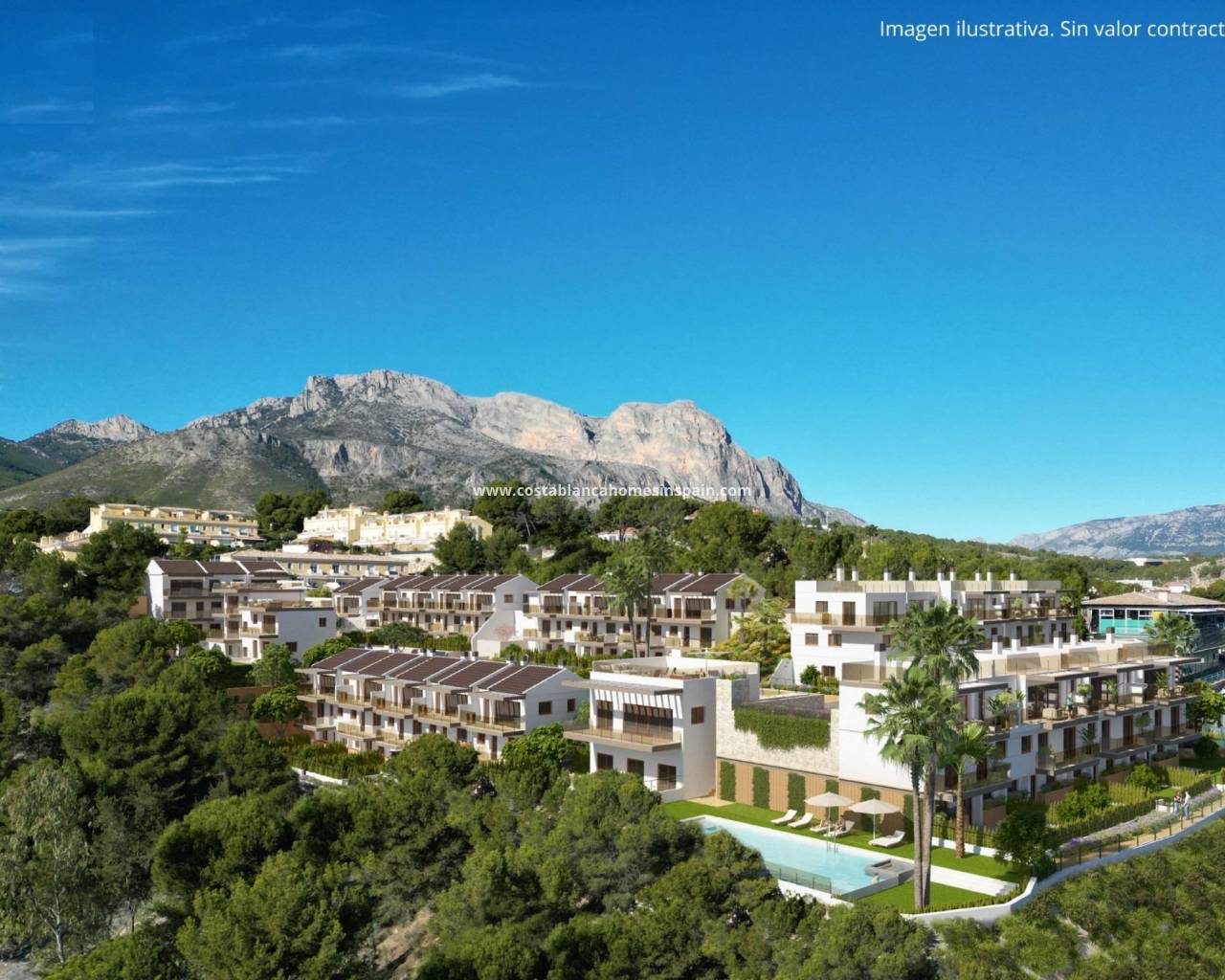 NYBYGD BOLIGKOMPLEKS I LA NUCIA Nybygget boligkompleks med frittstående og tomannsboliger med felles svømmebasseng i La Nucia. Et boligkompleks med moderne design og konstruksjon der du kan nyte klimaet, det gode solskinnet, den spektakulære utsikten over buktene i Benidorm og Albir og en sunn livsstil. I nærheten av alle tjenester og idrettsbyen La Nucia. Størrelsen på de moderne boligene og utformingen av dem gjør dem ideelle for kunder som trenger mer plass, som ønsker å gjøre en del av boligene sine lønnsomme for utleie mens de fortsetter å ha sitt eget hjem, eller som vil ha plass til spill, et kontor eller et område for familiens yngste medlemmer. Boligene går over 3 etasjer, har 4 soverom, 3 bad, gjestetoalett, åpen kjøkkenløsning med stue, garderober, flere terrasser med utsikt, parkering for to biler og en hage med direkte tilgang til fellesområdene. Mange av dem har også et solarium hvor du kan nyte kveldene utendørs med vennene dine. La Nucía er en kommune i kommunen Marina Baixa i Alicante. Den grenser til kommunene Altea, Callosa d'En Sarrià, Benidorm, Polop og L'Alfàs del Pi. La Nucia ligger i en fruktdal mellom Benidorm og Callosa d'En Sarrià, 3 km fra kysten av Altea. Byens sentrum ligger på en odde med utsikt over Middelhavet, 51 km nord for Alicante og 8 km nord for Benidorm.