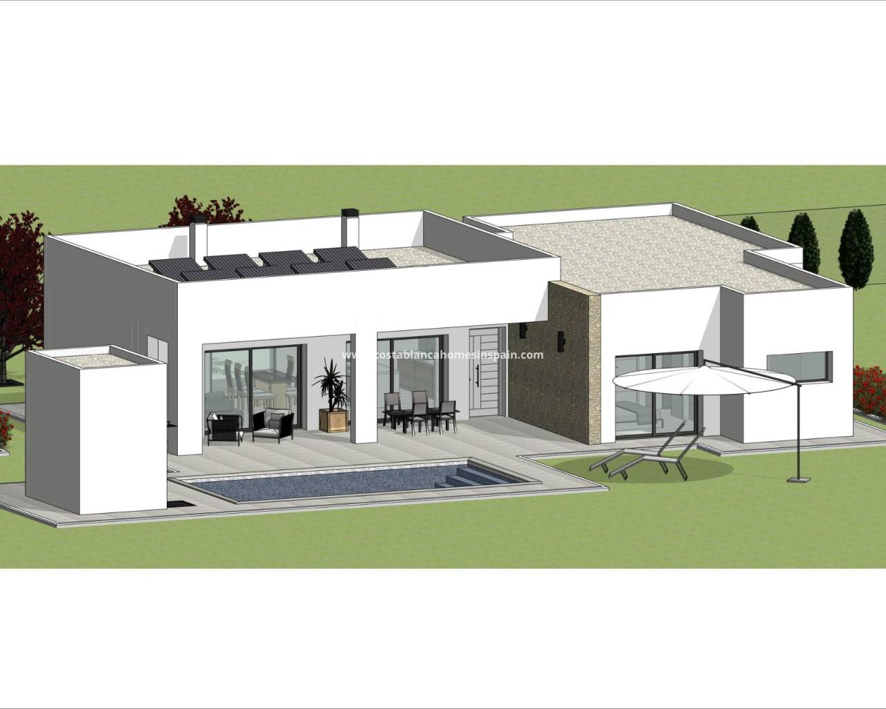 Nybyggede villaer i Aspe. Nybyggede villaer med flere modeller å velge mellom, med 2, 3 eller 4 soverom, på 1 eller 2 etasjer og bygget med plate eller struktur: avhengig av modell og valgt tomt, vil den nøyaktige prisen bli beregnet. Alle villaene bygges på rustikke tomter på over 10 000 m2, hvorav ca. 2500 m2 vil bli inngjerdet. Villaene har åpen kjøkkenløsning med stue, innebygde skap, privat svømmebasseng, veranda, bod og utendørs parkeringsplass. Det er flere tomter å velge mellom. For prisberegningen er det lagt til grunn en tomt til en pris av 77 500 euro (hvis du velger en annen tomt, betales differansen i henhold til prisen på denne). Prosjektet er selvbygg, og levering skjer ca. 12 måneder etter at byggetillatelsen er gitt. Hvis du er ute etter et rolig miljø, nær typiske spanske landsbyer langt fra turistmassene, omgitt av fjell, med en svært stor tomt og ca. 30 minutter fra havet, er dette huset for deg. Aspe er en typisk spansk landsby med alle daglige tjenester, omgitt av fjell og med flere naturområder i nærheten hvor du kan gå på tur eller sykle på terrengsykkel. Ligger 25 km fra stranden, 9 km fra Elche og ca. 20 km fra Alicante flyplass.