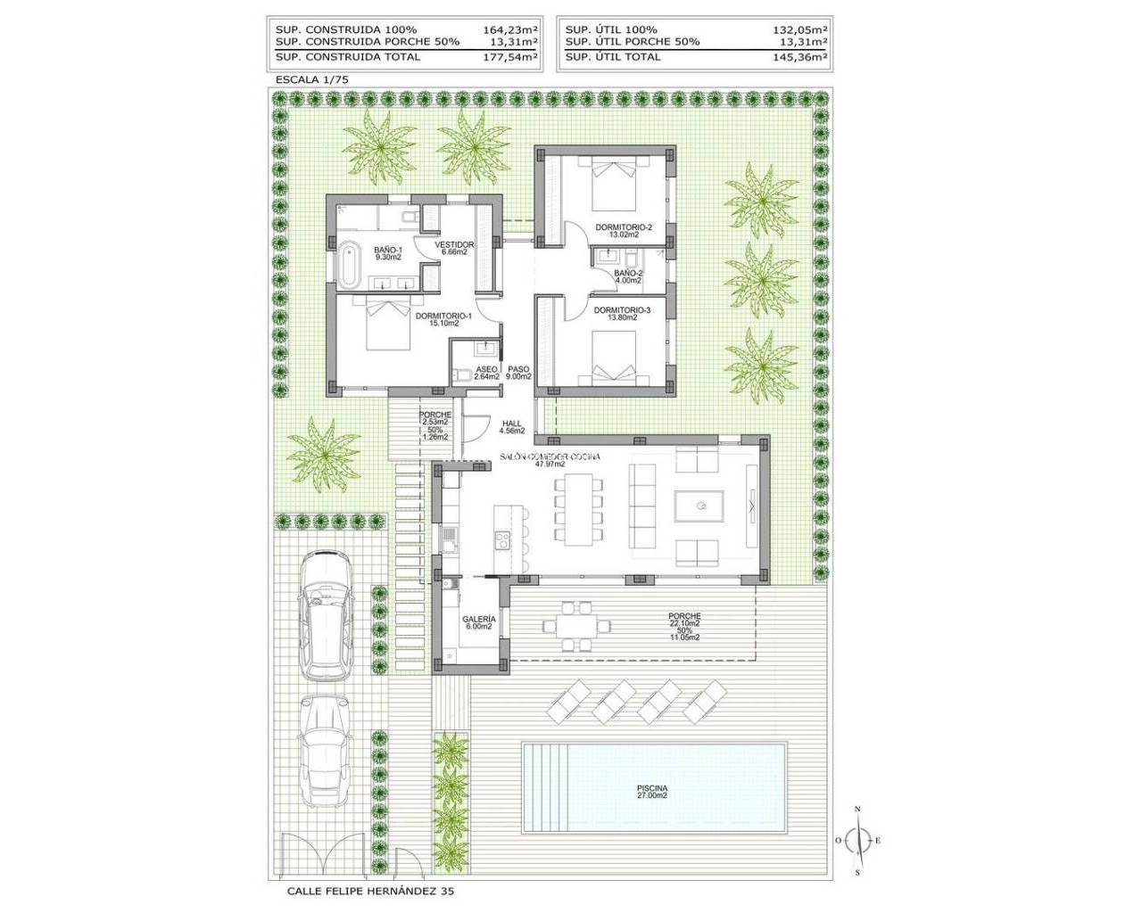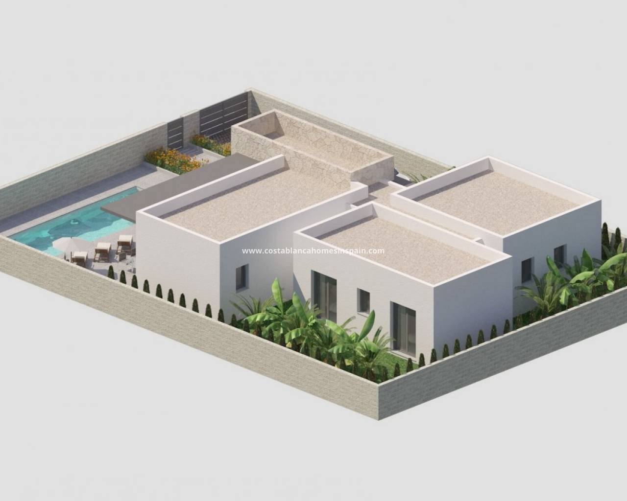 NYBYGG MODERNE VILLAER I BENIJOFAR Nybyggede villaer som ligger i Benijófar, et privilegert område på Costa Blanca, utstyrt med alle tjenester, 20 minutter fra Alicante flyplass, nær de vakre strendene i Guardamar og flere golfbaner. Det er en moderne villa som består av romslig stue/spisestue med åpen kjøkkenløsning, 3 soverom (ett av dem en-suite) og 3 bad. Den har også en privat tomt med terrasse, parkeringsplass, privat basseng, hage i middelhavsstil med flott utsikt. Huset har også varmt og kaldt klimaanlegg, videointercom og sikkerhetsdør. Benijofar det er en nydelig landsby med en sjarmerende kirke og alle tjenester som supermarkeder, apotek, banker, restauranter og naturpark som ligger svært nær villaene. Det er flere golfbaner i nærheten, samt badeland i nærliggende Rojales og Torrevieja. Benijófar ligger noen få minutter fra N-332 og AP-7. Bare 30 minutter fra Alicante flyplass, 10 minutter fra strendene i Guardamar og Torrevieja.