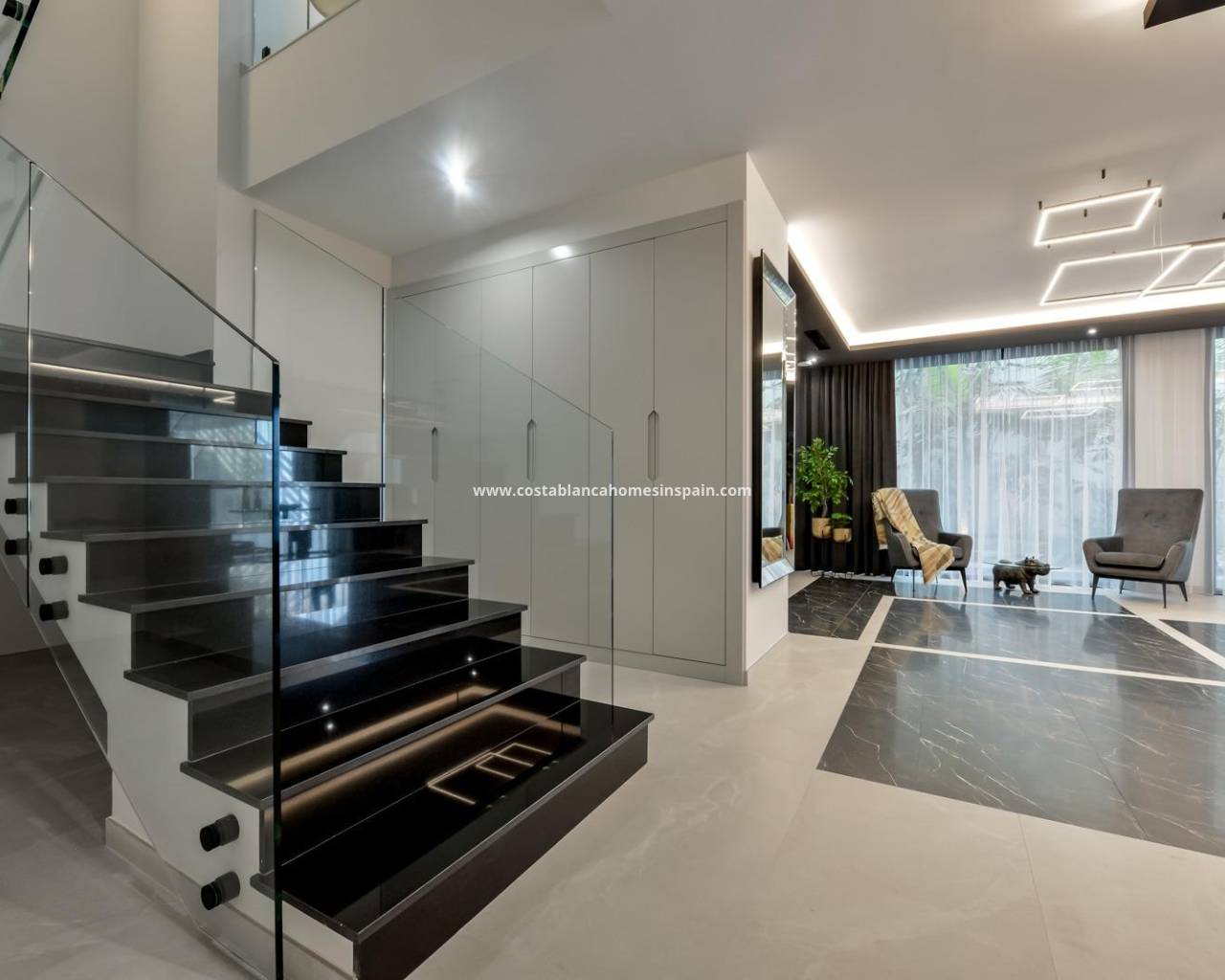 NYBYGD LUKSUSVILLA I FINESTRAT MED HAVUTSIKT Nybygget luksusvilla med havutsikt i Sierra Cortina, Finestrat. Ankommer urbaniseringen er det en natursteinsmur med en høyde på 7 meter og de automatiske inngangsportene til villaen som ankommer den overbygde garasjen på gateplan med dobbel høyde, naturlig lys og hage med palmer i forskjellige høyder på 180 m2, et innglasset rom på 78 m2 med heis, innvendig trapp, garderobe og nok plass til å sette lenestoler, konvertere denne plassen til et kontor eller bare et venterom for besøkende. Neste etasje på 190 m2 lukket rom ligger under tomtenivået, men 3 meter over gatenivået og derfor med naturlig lys. Det kan nås med heis eller trapp inne i villaen, eller ved trappen utenfor garasjen, i sistnevnte tilfelle kan du bare få tilgang til de utvendige korridorene, installasjonsrommet eller hoveddøren i denne etasjen, og dermed gjøre vedlikehold av huset uten å måtte gå inn i huset. Inne i denne etasjen finner vi 4 romslige soverom, stue med engelsk uteplass på 17 m2 med trapp til tomten, vaskerom, 2 bad, utvendige korridorer på 40 m2 og installasjonsrom. Når vi går opp til hovedetasjen med 3 tilgangsmåter ser vi en stue på 130 m2 med dobbelt lys, åpent kjøkken, gjestetoalett, panoramautsikt over havet og svømmebasseng på 54 m2 laminat, en vakker hage og 2 store overbygde terrasser. Til soveromsgulvet får vi tilgang med heis eller innvendig trapp hvor vi vil se et hovedsoverom på mer enn 50 m2 med eget bad, omkledningsrom og terrasse, to soverom på ca 20 m2 hver, et bad og terrassen for disse soverommene. Villaen er utstyrt med Led eksteriør og interiør, gulvvarme, domotics, høye Gamma-krystaller, sentralisert klimaanlegg, automatiske persienner, høye tak og mye mer: Stue- 95 m2 Soverom- 8 (hoved 52 m2 og sekundær 20 m2) Bad- 5 Tomt- 890 м2 Bygget- 998 м2 Svømmebasseng- 12 X 5 Fire etasjer Hage (20 m2) - fullt ferdig med automatisk vanningsanlegg Heis (Otis) inne i huset Gulvvarme i gulvet Domotikk (kontroll av klimaanlegg, gulvvarme, innvendig og utvendig belysning, persienner) Elektriske persienner Utvendig og innvendig lys av merket Siemens Høye tak opp til 3,20 m høye Imponerende havutsikt En etasje for gjester Aerotermisk oppvarming Fullt utstyrt kjøkken med øy Innebygde garderober Porselen flislagt gulv Vegg med håndskåret naturstein Garasje for 4 biler med automatiske dører 160 m2 + inngangsparti 78 m2 Åpen parkering 37 Villa som ligger i Sierra Cortina-feriekomplekset, ved siden av to golfbaner, fornøyelsesparker, et stort kjøpesenter og noen få minutter fra strendene i Benidorm. Finestrat ligger i Marina Baixa-regionen på Costa Blanca, nær nabobyen Benidorm og omtrent 40 kilometer fra byen Alicante og den internasjonale flyplassen. Landsbyen ligger på fjellsiden av Puig Campana og tilbyr vakker utsikt over fjellene, kysten og Middelhavet.