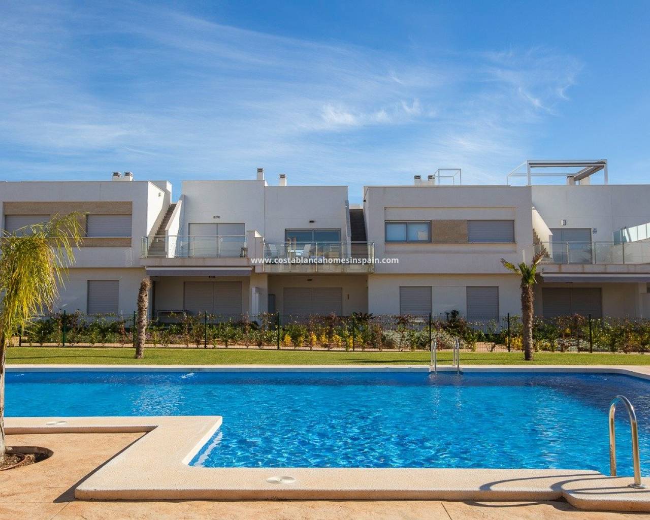 NYBYGG BOLIG AV BUNGALOW LEILIGHETER I VISTABELLA Nybygget boligkompleks på bungalowleiligheter i Vistabella nær golfbanen. Komplekset med fellesfasiliteter og svømmebasseng består av bungalower med 2 og 3 soverom, i første etasje med privat hage og toppetasje med privat solarium, åpen kjøkkenløsning med stue, innebygde garderober, terrasse. Hver leilighet har privat parkering. Tilvalgsbod mot ekstra kostnad. På Vistabella Golf er det plass til alle. Banen er laget slik at hver spiller kan nyte den fra start til slutt. Dens bølgende gater, strategiske bunkere eller innsjøer er noen av funksjonene som gjør den til en av de mest attraktive designene i området, hvor hvert slag er en utfordring og en nytelse for sansene. De 18 hullene i Vistabella Golf, par 72 og mer enn 6000 meter i lengde er designet etter retningslinjene til de moderne feltene med 4 tees med stor amplitude i hvert hull, brede fairways og hevet bunkers. Vistabella Golf klubbhus og restaurant og lokale barer og butikker ligger innen 5 minutters gange. Den travle byen San Miguel de Salinas og Los Montesinos ligger 5 minutters kjøring unna, og de vakre strendene med blått flagg ved Guardamar ligger bare 15 minutters kjøring unna. Alicante flyplass ligger 35 minutter unna, og den nye Corvera Murcia flyplass ligger 45 minutter unna.
