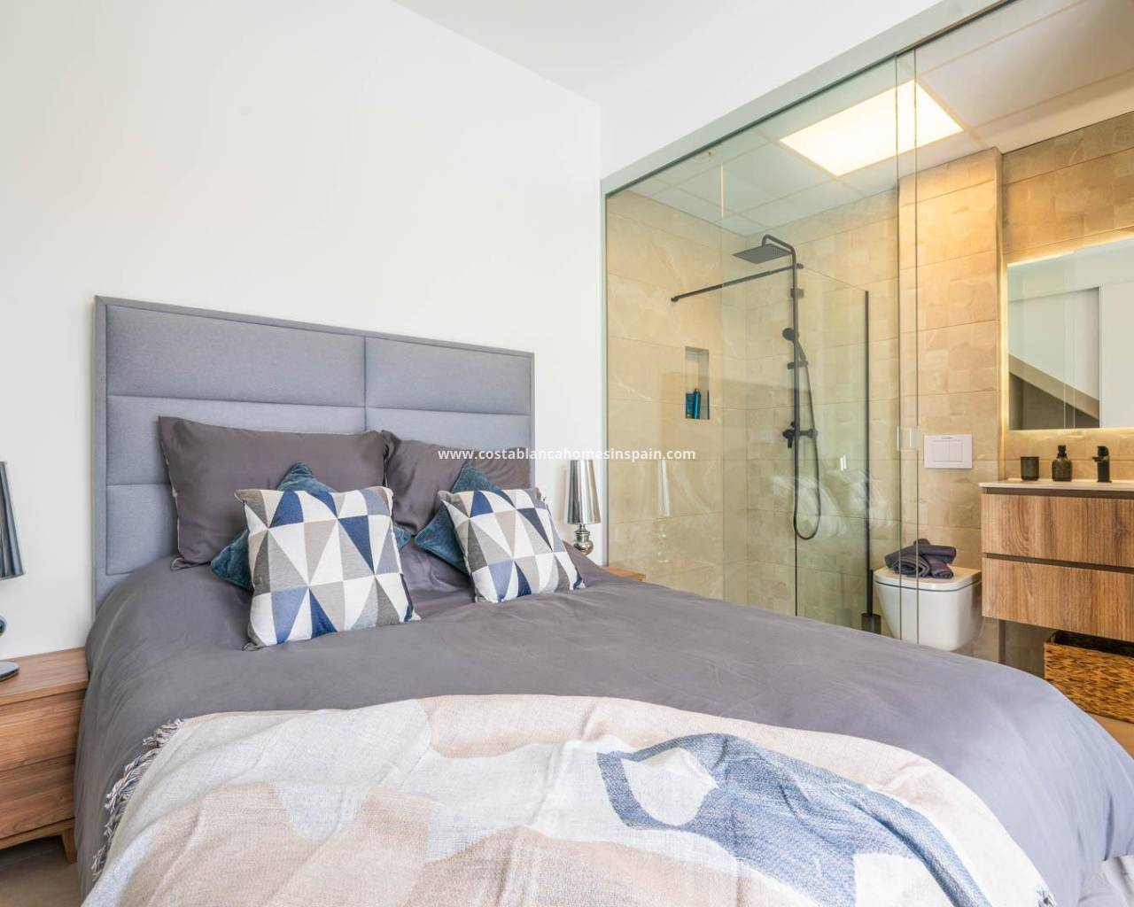 Nybyggede frittliggende villaer med privat basseng og solarium i Roldán, Torre-Pacheco Moderne villaer i ett plan med eksklusiv design Disse splitter nye villaene med 3 soverom og 2 bad i Roldán, Torre-Pacheco, har et moderne og miljøvennlig design med komfort og livsstil i tankene. Hver villa er bygget i ett plan og har en romslig åpen stue og spisestue med et fullt utstyrt, moderne kjøkken som er sømløst koblet til store terrasser og et solarium på taket. Villaene er nøye designet for å kombinere funksjonalitet og estetikk, med skrå fasader kledd i stein, elegante overflater og rikelig med uteplass for å nyte middelhavssolen hele året. Privat uteplass og førsteklasses fasiliteter Hver villa har: Privat svømmebasseng og utendørs dusj Solarium på taket med god plass til soling eller avslapning Terrasse og hageområder i første etasje Privat innkjørsel for parkering LED-belysning både innendørs og utendørs Forhåndsinstallert klimaanlegg Hovedsoverommet har eget bad, mens to ekstra soverom deler et familiebad, alle designet med et moderne preg og høykvalitets finish. Ideell beliggenhet nær strender og golf Roldán er en sjarmerende spansk by i kommunen Torre-Pacheco, kjent for sin tradisjonelle atmosfære og komplette utvalg av daglige tjenester, inkludert supermarkeder, restauranter, helsetjenester og skoler. Beliggenheten tilbyr nærhet til flere viktige attraksjoner: Corvera lufthavn (RMU) – 15 km Strendene ved Mar Menor og Middelhavet – 20 km Golfbaner (La Torre Golf og Las Terrazas de La Torre) – innen 4 km Cartagena sentrum – 32 km Zenia Boulevard kjøpesenter – 35 km Marina i Los Alcázares – 22 km Enten du er på jakt etter en feriebolig, permanent bolig eller en god investering for utleie, tilbyr denne beliggenheten enkel tilgang til kystattraksjoner, sportsfasiliteter og urbane bekvemmeligheter. Ditt nye liv i solen venter Ikke gå glipp av muligheten til å eie en av disse stilige nye villaene i Roldán. Kontakt oss i dag for mer informasjon, for å avtale en visning eller for å sikre deg ditt nye hjem på Costa Cálida før alle er reservert.