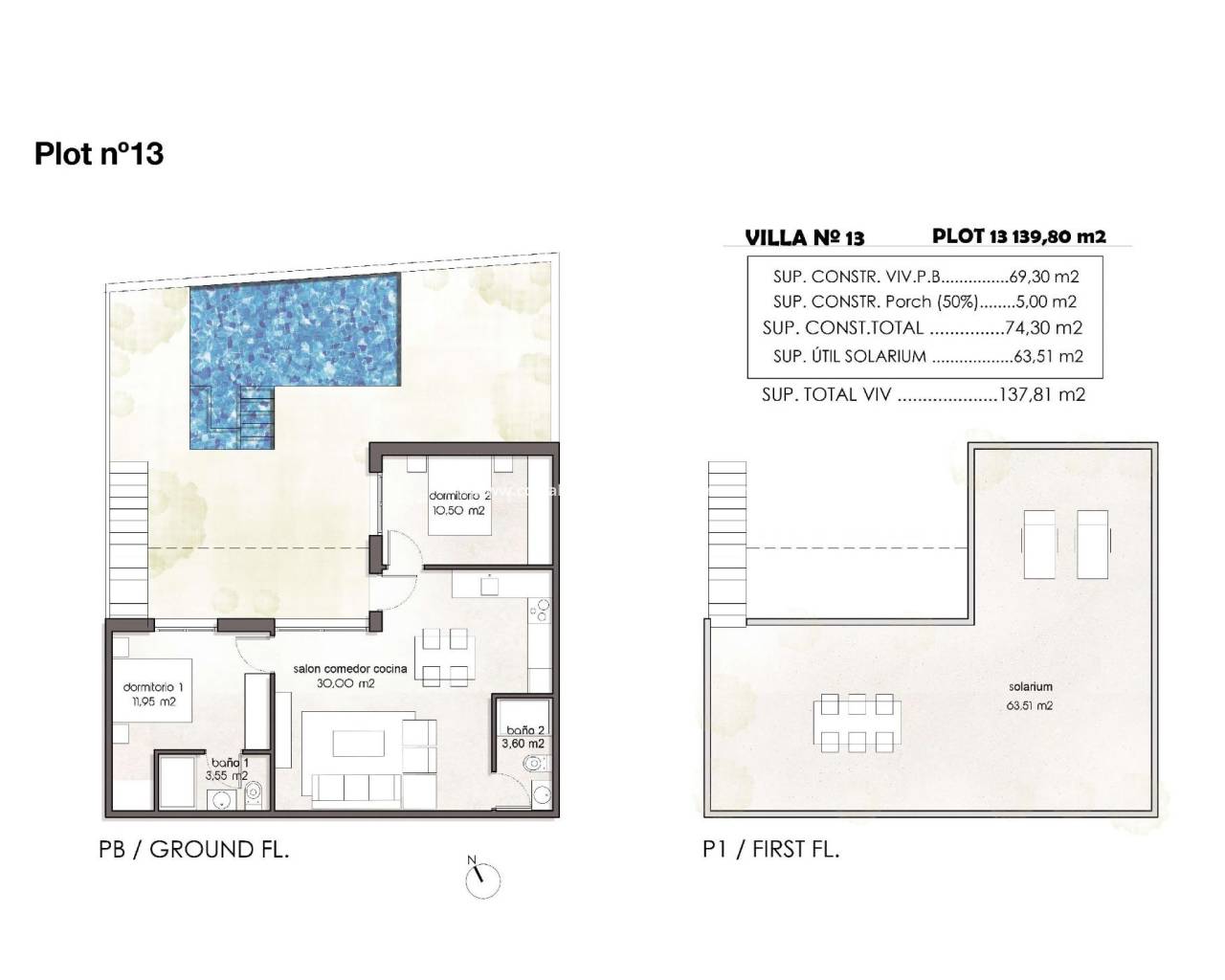 NYBYGDE REKKEHUS I PILAR DE LA HORADADA Nybygde rekkehus som ligger i Pilar de la Horadada. Rekkehus bygget i 1 etasje og har privat solarium, 2 soverom, 2 bad, åpen kjøkkenløsning med stue, hage med parkeringsplass. Mulighet for et privat basseng mot en ekstra kostnad. Eiendommene ligger noen få meter fra alle tjenester og sentrum. Pilar de la Horadada er en typisk spansk landsby i den sørligste delen av Costa Blanca. I den store hovedgaten finner du supermarkeder, mange butikker, restauranter og barer og noen flotte torg. De vakre strendene Torre de la Horadada og Mil Palmeras med fin sandstrand ligger bare 5 minutter unna. I Pilar de la Horadada er det også et godt utbygd sykkel- og tursti-nettverk, og det er også et stort tilbud av ulike sportsaktiviteter. Lo Romero 18-hulls golfbane ligger bare en kort kjøretur fra byen. Flyplassene i Corvera (Murcia) og Alicante ligger henholdsvis 40 og 55 minutter unna.