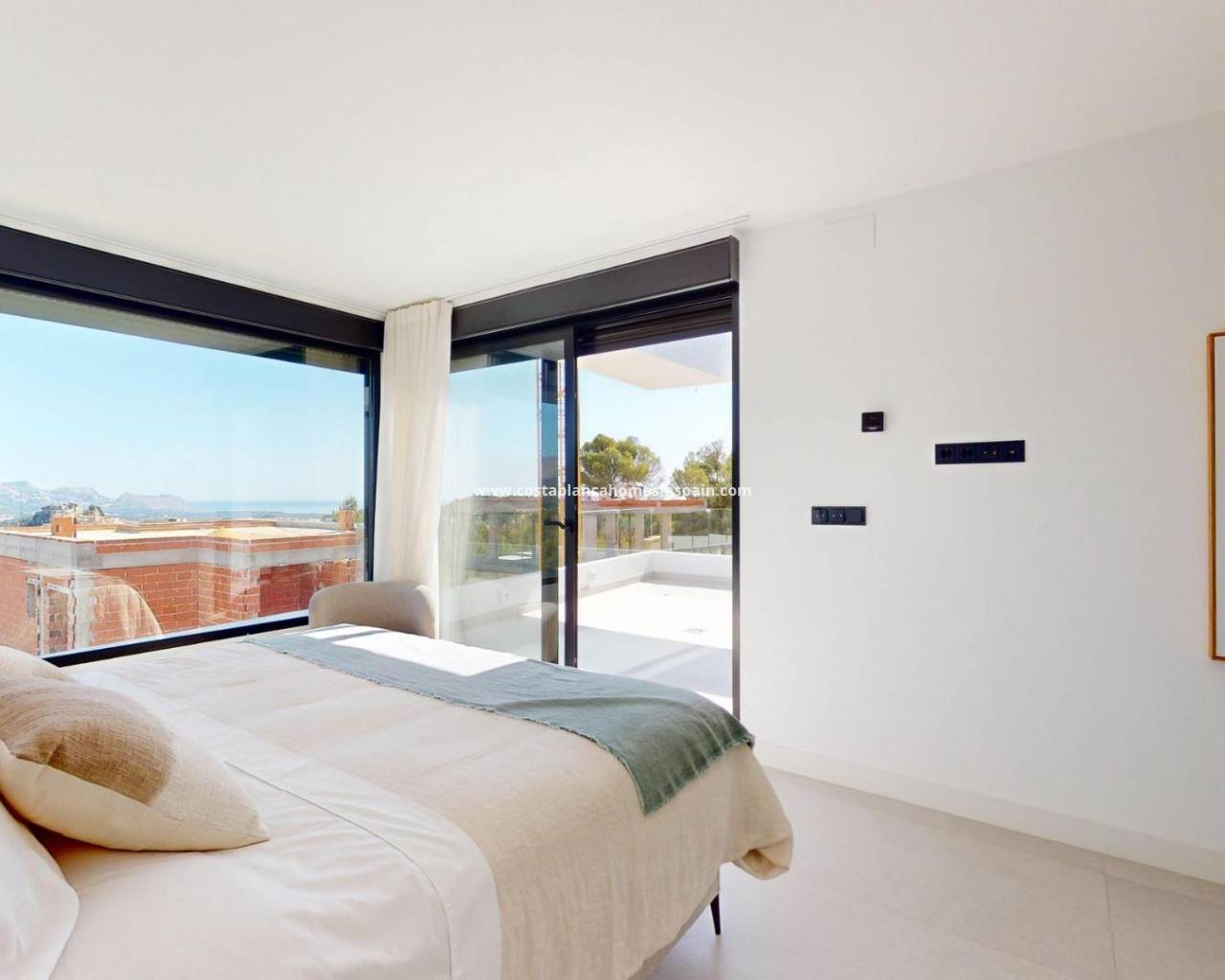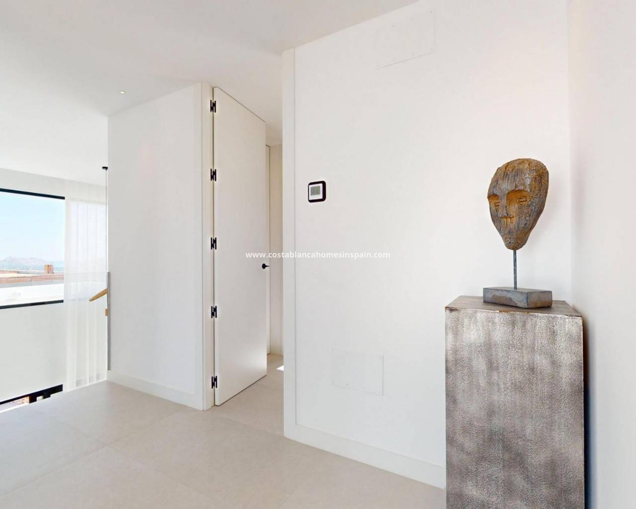 Nybygde luksusvillaer i Polop med fantastisk utsikt Eksklusiv utvikling av 6 luksusvillaer i Polop Dette splitter nye prosjektet med 6 luksusvillaer ligger i Polop, med fantastisk utsikt over havet og fjellene. Hver villa er bygget på en uavhengig tomt med privat svømmebasseng, parkering, grillplass og en romslig hage. Villaene er fordelt over to etasjer pluss en halvkjeller, med totalt 293 m² på private tomter på 393 m². Romslig planløsning og moderne design I hovedetasjen finner du et moderne kjøkken med en kjøkkenøy, en åpen stue- og spisestue, ett soverom, ett bad, en overbygd terrasse og en stor åpen terrasse, perfekt for å nyte utsikten over Polop, Altea og fjellene rundt. Første etasje har to store soverom, to bad og to terrasser, både overbygde og åpne. Den halve kjelleren kan gjøres om til et uavhengig boareal. Høy kvalitet og energieffektivitet Villaene har et fullt utstyrt kjøkken med hvitevarer fra Siemens. Badene er fullt utstyrt med førsteklasses Roca-armaturer. Alle boligene har gulvvarme, klimaanlegg og et evighetsbasseng. Villaene er designet med tanke på energieffektivitet, og har et energisertifikat med karakteren A. Førsteklasses beliggenhet nær alle fasiliteter Disse villaene ligger bare 10 km fra Benidorm og Altea, og bare en kort kjøretur fra La Nucía og Alfaz del Pi. Området tilbyr enkel tilgang til viktige severdigheter, inkludert strendene i Benidorm (15 km), Alicante lufthavn (65 km) og flere golfbaner (innen 10 km). Nærheten til disse fasilitetene, kombinert med de rolige omgivelsene, gjør Polop til et ideelt sted for friluftsentusiaster og de som søker ro.