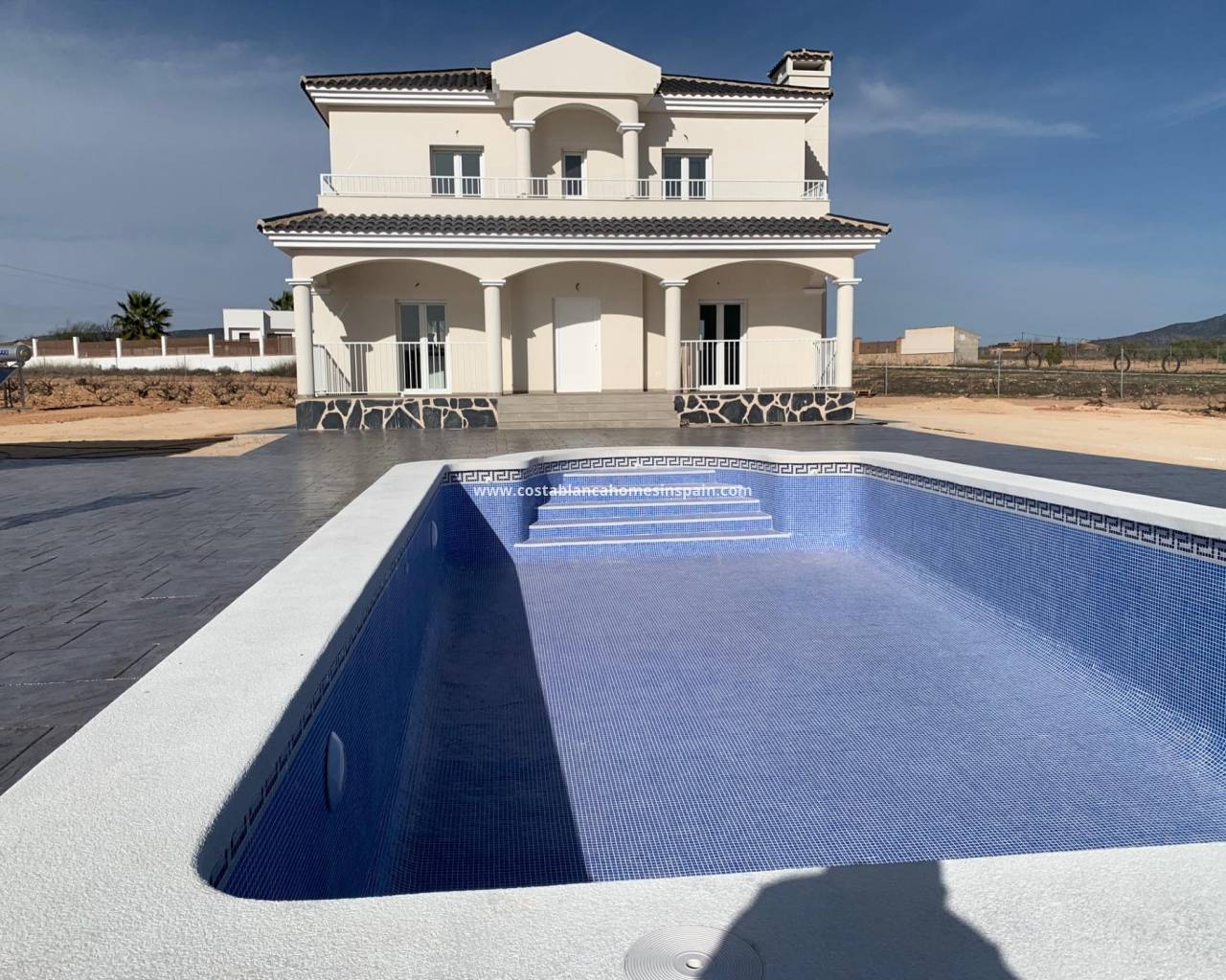 NYBYGGEDE VILLAER I PINOSO Du kan velge villaer med tradisjonelt spansk preg eller supermoderne, lyse og rene. Vi tilbyr forskjellige tomter (rustikke tomter på minst 10 000 m2), noen i gangavstand til byen, noen helt private, og de mest populære ligger 5-10 minutters kjøring fra byen. Vi har en tomt for enhver smak, alle med fantastisk utsikt og alle har innlagt vann + strøm inkludert i prisen og høyhastighetsinternett tilgjengelig. Husene er bygget av den største og beste byggmesteren i området og bruker materialer av topp kvalitet for en perfekt finish. Alle husene har 2 m stampet betongterrasse rundt bassenget (farge og mønster etter eget valg), 1 m rundt huset, inngjerdet inngang, 3 000 m2 gjerde, forhåndsinstallert luftkondisjonering, standardkjøkken, sikkerhetsdør, tyske vippe- og svingvinduer (eller skyvevinduer om ønskelig), innebygd peis og skorstein, forhåndsinstallasjon for tv og internett, grusinnkjørsel pluss noen meter rundt huset, septiktank. Badene har dusjsøyle, dusjkar eller badekar, servantskap (ulike farger å velge mellom) med vask, kraner og speil, samt et stort utvalg av veggfliser. Stort utvalg av keramiske gulvfliser i ulike farger, treeffekter osv. Kjøkken inkluderer skap med standarddører og håndtak, i henhold til medfølgende tegninger, vask og kran i rustfritt stål, forhåndsinstallasjon for stekeovn, oppvaskmaskin og avtrekk. Ulike benkeplater i granitt er inkludert i budsjettet, andre benkeplater i stein er tilgjengelig som ekstrautstyr. Hvitevarer er ikke inkludert. Marmortrapp (kremfarget, hvit eller grå) og rekkverk inkludert, samt rekkverk til verandaen. Stort fastmontert glassvindu i trappen for ekstra lys. Valg av fliser og trappetrinn til svømmebassenget. Valg av granitt til husets utvendige trappetrinn og vinduskarmer. Du kan tilpasse huset etter eget ønske, de fleste innvendige endringer er gratis, husene kan utvides og vi kan til og med bygge ditt eget design. Oppgrader til større basseng, enkel eller dobbel garasje, gjestehus osv. mot en ekstra kostnad. Den vakre og blomstrende byen Pinoso ligger ca. 45 minutter inn i landet fra Alicante og de hvite strendene på Costa Blanca og nær grensen mellom Murcia og Alicante. Byen har i underkant av 8 000 innbyggere. Pinoso, også kjent som El Pinos, er oppkalt etter furutrærne som dekker fjellkjedene i området. Pinoso byr på en spansk, landlig livsstil, ingen lyskryss, nesten ingen trafikk, og det eneste som skaper kø er traktorene som frakter druene til bodegaen. Åkrene er beplantet med vinranker, mandler og oliven. I februar er åkrene fylt med rosa mandelblomstring. Pinoso har mange barer, restauranter og butikker, et nytt døgnåpent legesenter, tannleger, to barneskoler og en ungdomsskole samt et teater. Det finnes et utmerket sportssenter med utendørsbasseng, tennisbaner, fotballbaner og gymsal, bibliotek og mange andre fasiliteter, blant annet et vakkert piknikområde blant furutrærne, komplett med griller, sittegrupper og rennende vann.