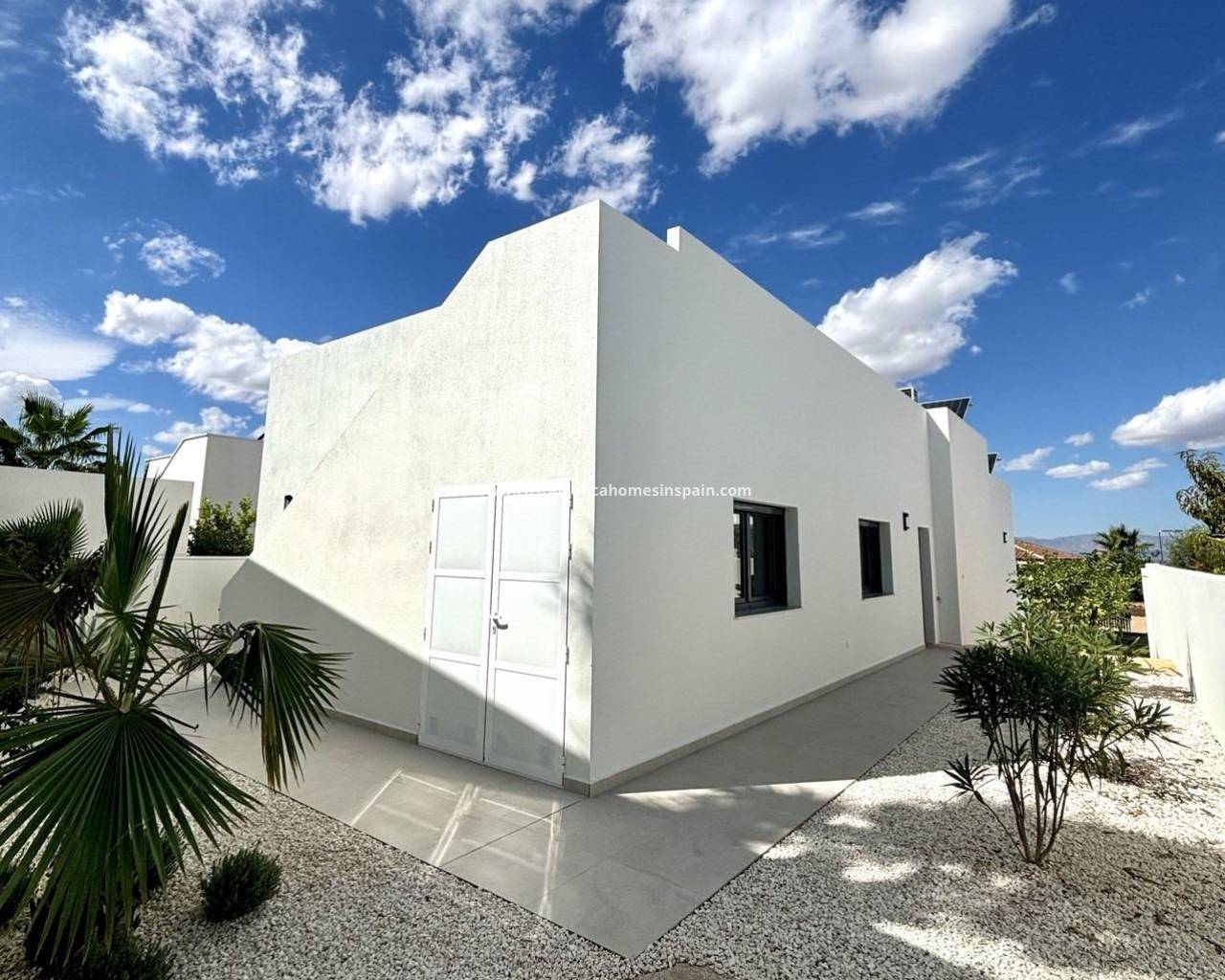 Nybygde middelhavsvillaer i Benijófar Moderne og stilfulle villaer i Benijófar Disse fantastiske, moderne villaene ligger i utkanten av den sjarmerende byen Benijófar, og tilbyr den perfekte blandingen av moderne design og tradisjonell spansk livsstil. Benijófar ligger i hjertet av Costa Blanca, bare 30 minutter med bil fra Alicante by og den internasjonale flyplassen. Området ligger også 8 km fra gylne sandstrender og 10 minutter fra to golfbaner av topp kvalitet. Romslige villaer med private bassenger Hver villa ligger på en stor tomt på over 400 m², og har et privat basseng (7x3,5 m) og 3 soverom med 2 bad, alle i én etasje. Som ekstrautstyr kan du velge mellom solarium og bod. Villaene er bygget etter de høyeste standarder, med topp kvalitet som Schüco-vinduer, motoriserte skodder, solcellepaneler og et automatisk vanningssystem for hagen. Tradisjonell spansk by med moderne fasiliteter Benijófar er en tradisjonell spansk by som er kjent for sine livlige fiestas, ukentlige gatemarkeder og pittoreske torg. Den grenser til Ciudad Quesada, som ligger bare to minutter unna med bil, og tilbyr et bredt utvalg av fasiliteter, inkludert restauranter, barer, butikker, liveunderholdning, et badeland om sommeren og en country club. Denne ideelle beliggenheten er en perfekt helårsbolig hvor du kan nyte solen, havet og ditt eget private basseng i fredelige, tradisjonelle omgivelser.