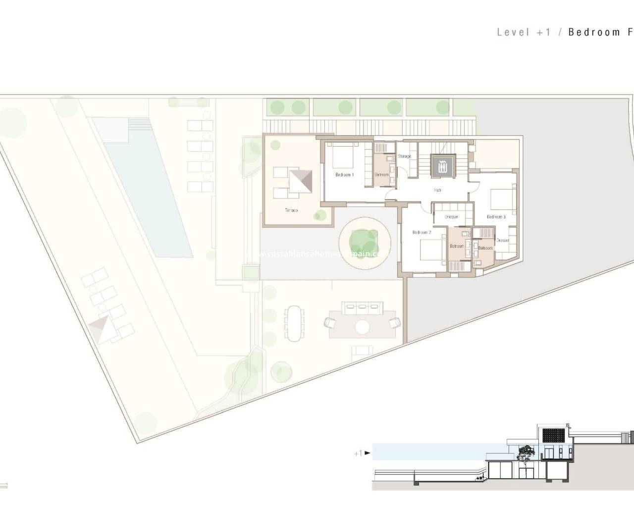 Moderne luksusvilla i La Marina Urbanization, San Fulgencio Elegant design og eksepsjonell komfort Oppdag denne moderne nye villaen i La Marina Urbanization, et eksklusivt boligområde som tilhører San Fulgencio, på den sørlige Costa Blanca. Denne eiendommen er designet med tidløs eleganse og moderne middelhavsstil, og tilbyr den perfekte blandingen av luksus, komfort og funksjonalitet, ideell for de som søker en raffinert livsstil nær sjøen. Med 305 m² bebygget areal på en generøs tomt på 935 m² har denne villaen 4 romslige soverom med eget bad, gjestetoalett og et åpent kjøkken og stue som går sømløst over i store terrasser og et privat svømmebasseng på 55 m². Designet sikrer naturlig lys og panoramautsikt hele dagen, noe som skaper en lys og innbydende atmosfære. Førsteklasses funksjoner og bærekraftig livsstil Hver detalj i dette hjemmet er nøye utvalgt for å gi en overlegen boopplevelse. Førsteklasses spesifikasjoner inkluderer: Møblert kjøkken med Siemens-apparater Fullt installert kanalisert klimaanlegg Elektriske persienner i stuen og soverommene Gulvvarme i hele eiendommen Solcellepaneler for energieffektivitet Innvendig heis som forbinder alle etasjer 30 m² carport for to biler Denne boligen redefinerer moderne middelhavsstil og tilbyr den ideelle rammen for å nyte livet hele året. Førsteklasses beliggenhet nær stranden og tjenester La Marina Urbanization er et av de mest ettertraktede områdene i San Fulgencio, kjent for sin avslappede kystatmosfære og nærhet til regionens beste strender. Den blåflaggede stranden La Marina ligger bare 3 km unna, og tilbyr kilometer med fin gylden sand og klart vann. Alicante internasjonale lufthavn ligger bare 25 minutter (30 km) unna med bil, noe som sikrer enkel tilgang fra hvor som helst i Europa. For golfentusiaster ligger flere prestisjetunge golfbaner som La Finca Golf, La Marquesa, Villamartín og Las Ramblas innenfor en radius på 20 km. De nærliggende byene Elche (20 km), Guardamar del Segura (10 km) og Torrevieja (20 km) tilbyr et bredt utvalg av shopping, restauranter og kulturelle opplevelser. Middelhavslivsstil på sitt beste San Fulgencio og La Marina kombinerer sjarmen til en tradisjonell spansk landsby med alle moderne bekvemmeligheter, omgitt av furuskog, naturparker og naturskjønne turstier. Enten du er på utkikk etter et permanent hjem, et feriested eller en investering, tilbyr denne villaen uovertruffen kvalitet og beliggenhet. Kontakt oss i dag for å avtale en visning og oppdag ditt drømmehus i La Marina, Costa Blanca – der luksus møter middelhavslivsstil.