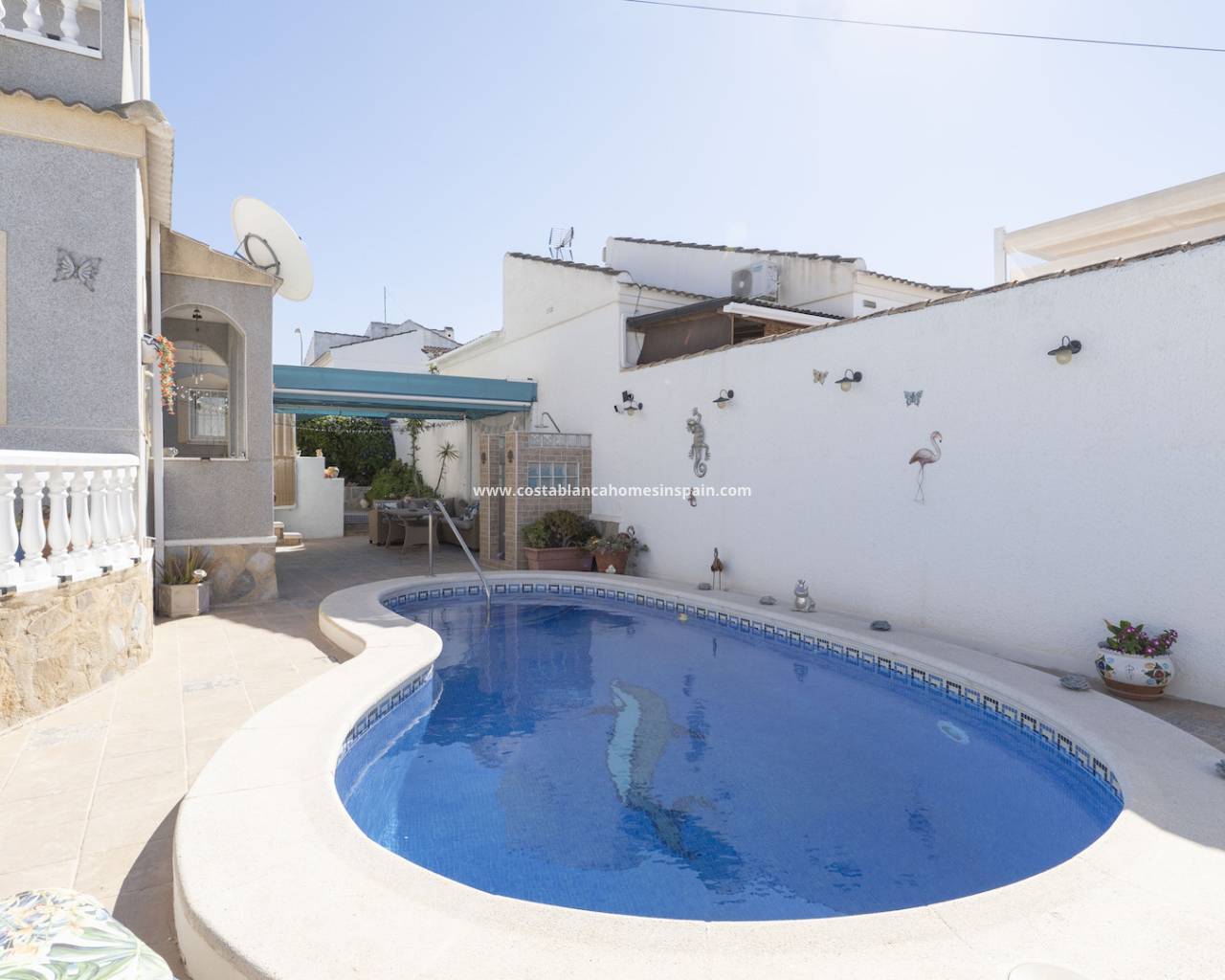 Vi har nå fått denne flotte boligen for salg, fullt møblert enebolig i det populære området San Luis, Torrevieja. Denne attraktive boligen har 3 romslige soverom og 3 bad, lekkert kjøkken og koselig stue med peis. Perfekt for familier eller for dem som trenger ekstra plass til gjester. Romslig og fin bolig. Privat svømmebasseng i hagen, terrasse og takterrasse. Sydøstvendt beliggenhet. Flott utsikt mot saltsjøen. San Luis er kjent for sin hyggelige atmosfære. Rolig område med en avslappet livsstil nær naturen, noe som gjør det til et ideelt sted å bo hele året eller bruke som feriested. . Ta kontakt med oss i dag for å avtale en visning.