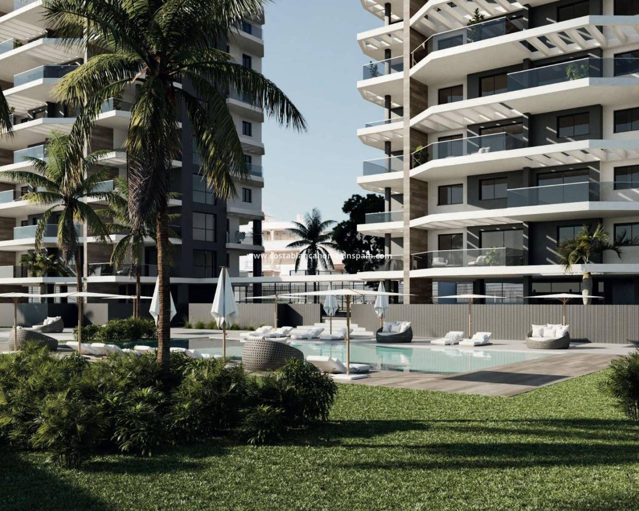 NYBYGDE LEILIGHETER I CALPE Nybygget boligkompleks med leiligheter med 2 og 3 soverom og store terrasser i Calpe. To tårn på 12 etasjer med vakre leiligheter med utsikt over havet og saltsjøen i Calpe. Et lyst hus i harmoni med naturen, med åpen kjøkkenløsning med stue, garderober, romslige terrasser og havutsikt. Hver leilighet har underjordisk parkeringsplass. Stort fellesområde med 2 store svømmebassenger, ett av dem med inngang fra stranden, solsenger med kunstgress, lekeplass, paddle-tennisbane, sykkelparkering, hageområder. Calpe har et privilegert mikroklima, og boligen ligger bare 200 meter fra El Arenal-stranden. Et ideelt sted å nyte freden, stillheten og det blå havet. Sammen med de du er glad i, kan du prøve alt det den har å by på: undervannsaktiviteter der du kan oppdage Middelhavets flora og fauna og utøve alle typer vannsport på internasjonale skoler. Calpe, en av byene i La Marina Alta, ligger på nordkysten av Alicante-provinsen, omgitt av byene Altea, Benidorm, Teulada-Moraira og Benissa. Calpe har en herlig blanding av gammel valenciansk kultur og moderne turistfasiliteter. Calpe er et flott utgangspunkt for å utforske lokalområdet eller nyte de mange lokale strendene. Calpe alene har tre av de vakreste sandstrendene på kysten. Calpe har også to seilklubber: Real Club Náutico de Calpe og Club Náutico de Puerto Blanco. Fiskerlandsbyen Calpe er nå forvandlet til en turistmagnet og har en ideell beliggenhet, lett tilgjengelig via motorvei A7 og N332 som går fra Valencia til Alicante. Det tar ca. 1 time å kjøre til flyplassen i Alicante og 1,5 time til Valencias flyplass.