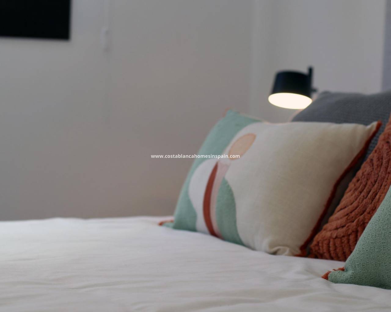 NYBYGGDE REKKEHUS I PILAR DE LA HORADADA Nybygg moderne rekkehus bygget i en rolig del av Pilar de la Horadada med nærhet til alt du trenger. Rekkehus har 4 soverom, 2 bad, åpen kjøkkenløsning, stue med direkte tilgang til det koselige bassengområdet, terrasse på baksiden med parkeringsplass, terrasse og stort taksolarium. Pilar de la Horadada er en typisk spansk landsby i den sørligste delen av Costa Blanca. Den store hovedgaten har supermarkeder, mange butikker, restauranter og barer og noen flotte torg. De vakre strendene i Torre de la Horadada og Mil Palmeras med fin sand og promenade ligger bare 5 minutter unna. Flyplassene Corvera (Murcia) og Alicante ligger henholdsvis 40 og 55 minutter unna.