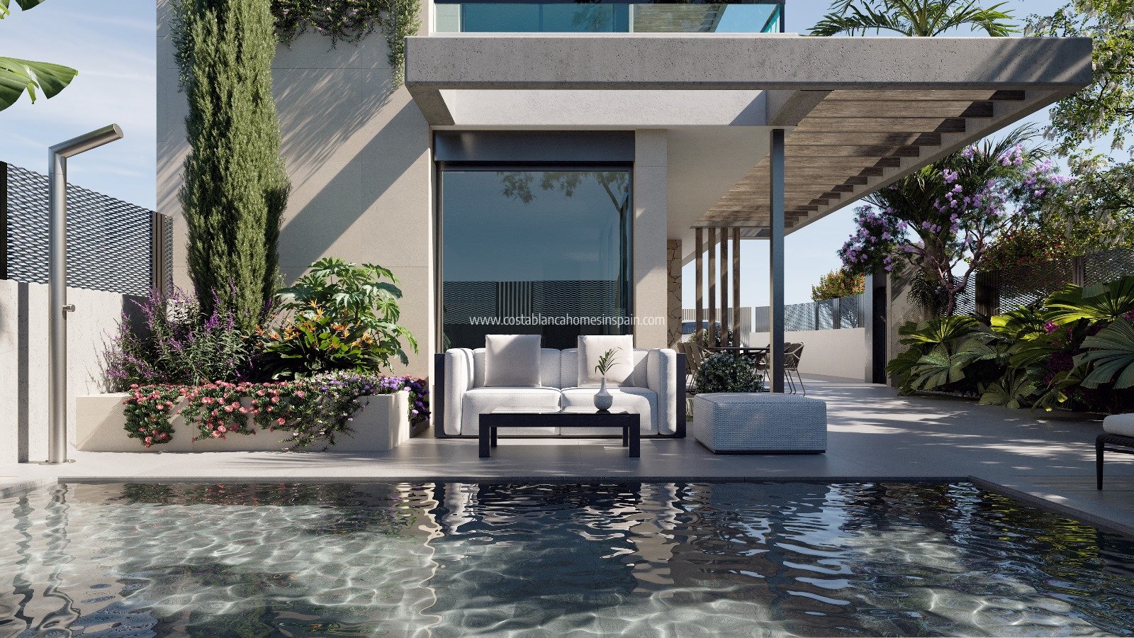 Boligene har utendørsområder designet for nytelse og avslapning. Hver eiendom har en privat hage, perfekt for utendørsaktiviteter eller bare for å nyte et øyeblikk av ro. De romslige terrassene gir ekstra plass til fritid, slik at beboerne kan dra full nytte av middelhavsklimaet. I tillegg inkluderer hver bolig et privat basseng, ideelt for å kjøle seg ned på varme sommerdager og for å nyte morsomme øyeblikk med familie eller venner.
