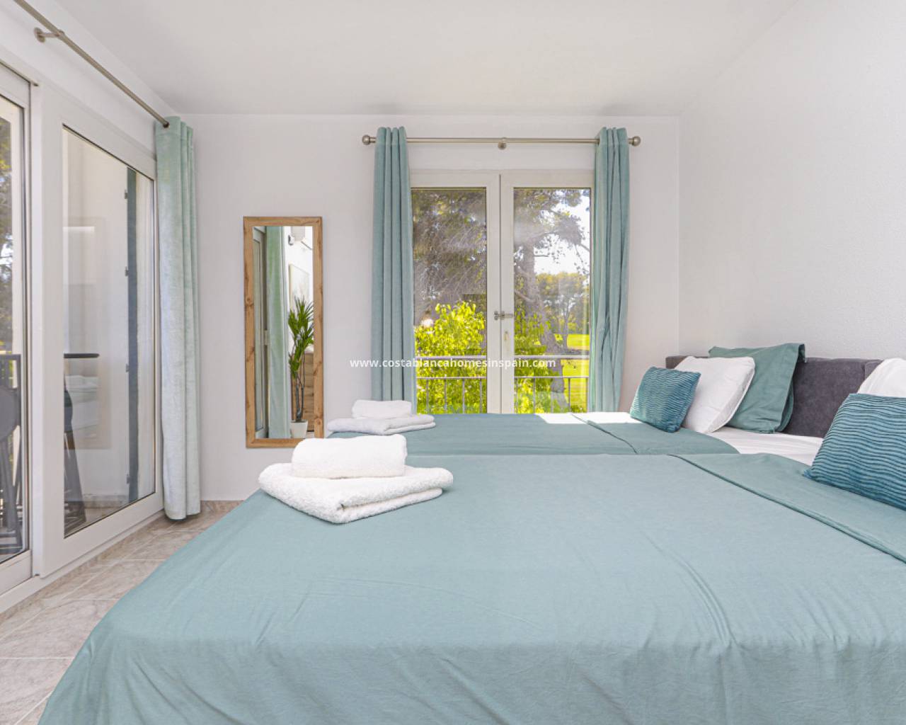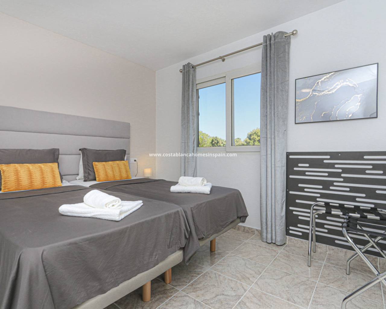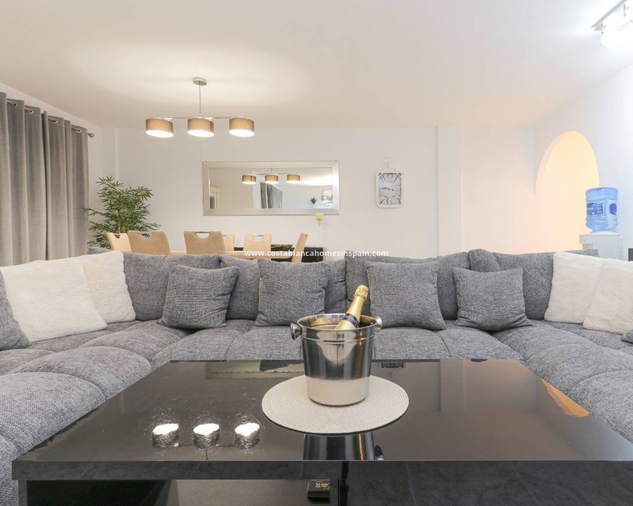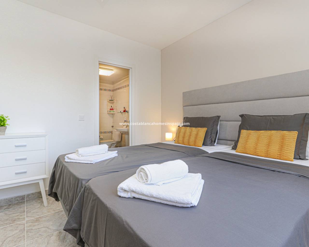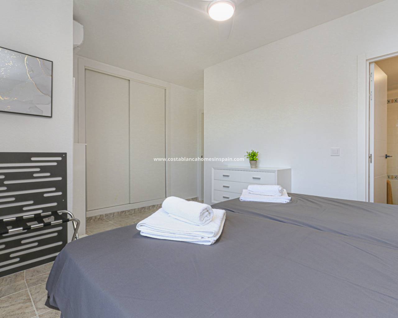 Fantastisk duplex penthouse på den berømte Villamartin Plaza, med utsikt over golfbanen. I 2. etasje av komplekset finner du i første etasje 2 doble soverom med eget bad. Hovedsoverommet har 2 ekstra store senger, innebygget garderobeskap, terrasse med golfutsikt og bad med toalett, dusj og badekar. Det andre soverommet har også 2 senger, innebygget garderobeskap, eget bad med dusj og dobbel vask, toalett.