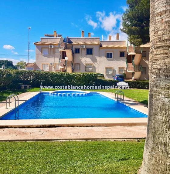 Terrassebungalow med hage foran og bak, privat solarium i gangavstand til La Fuente Centre og Mercadona Supermarket.