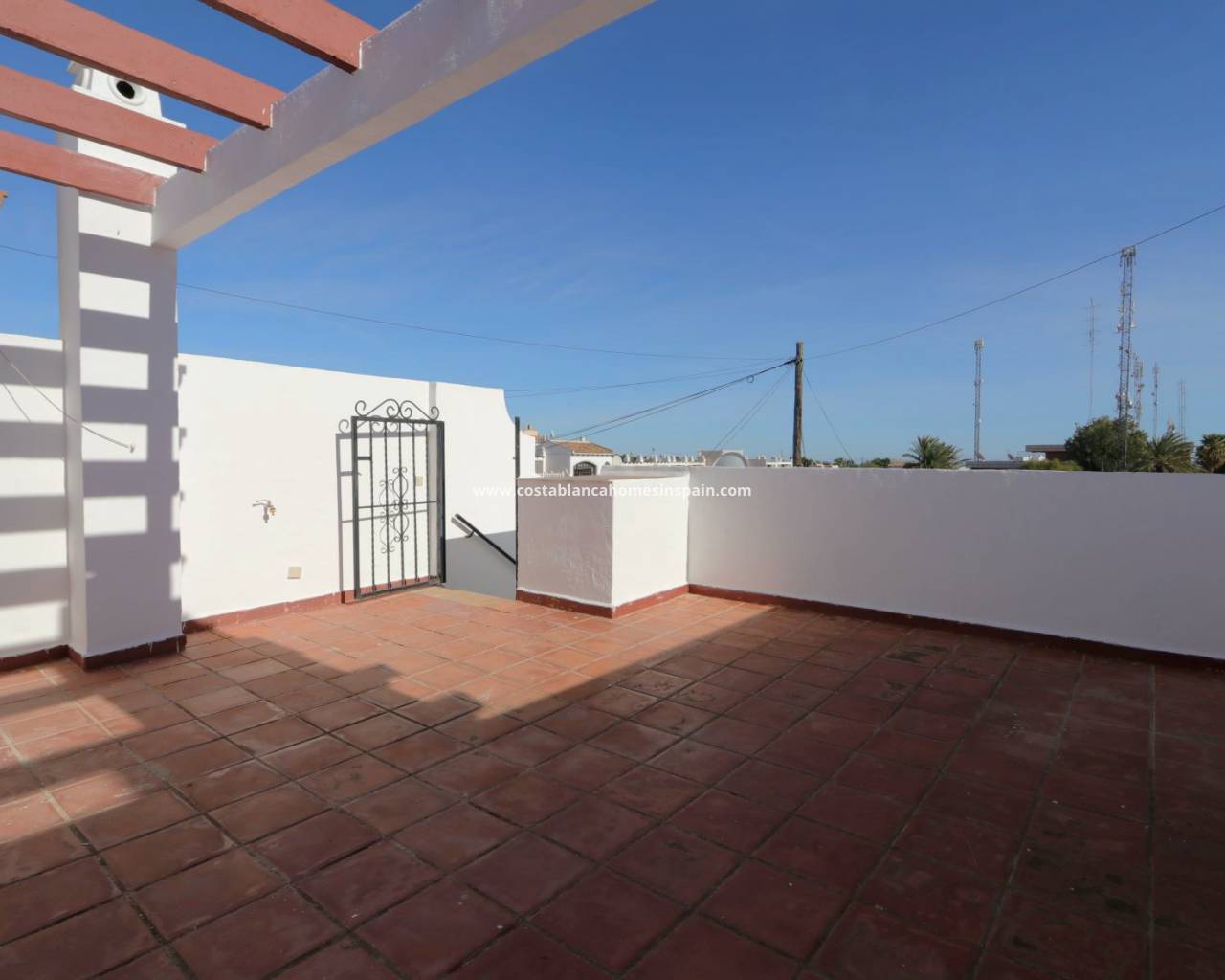 Terrassebungalow med hage foran og bak, privat solarium i gangavstand til La Fuente Centre og Mercadona Supermarket.