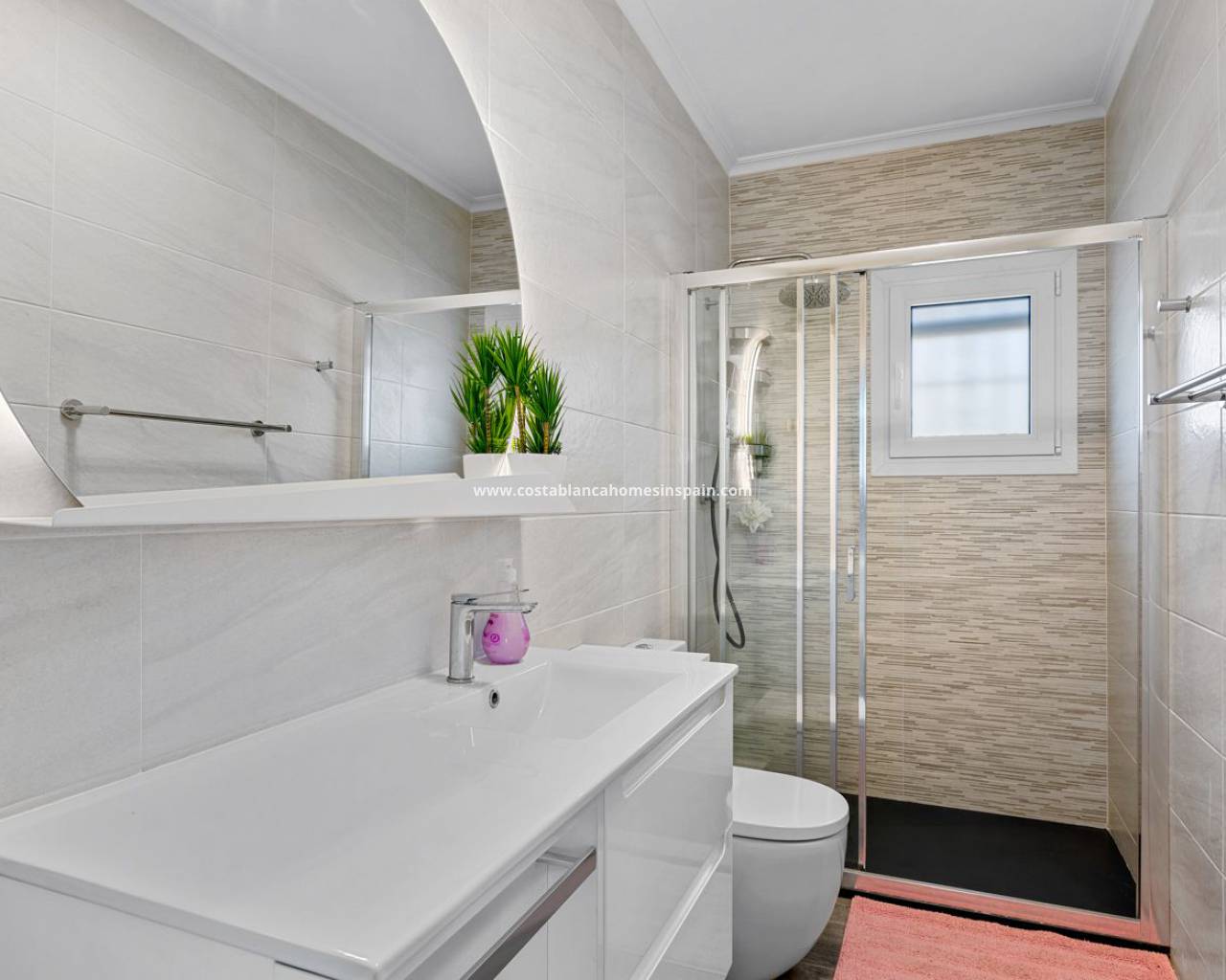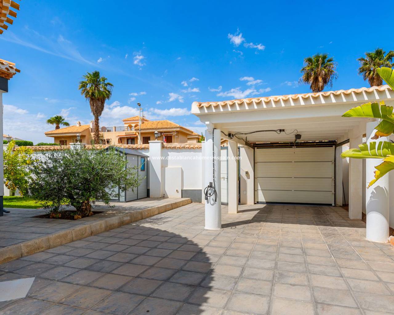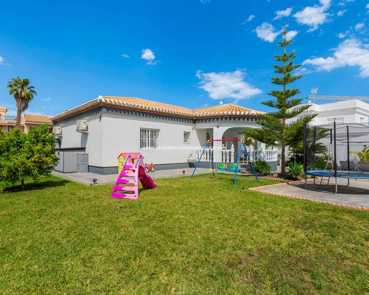 Denne fantastiske eiendommen ligger i det berømte området Playa Flamenca, kun få minutters gange fra kjøpesenteret Zenia Boulevard og stranden. Rett utenfor markedsgaten har eiendommen høye private vegger og en elektrisk port for bilene dine. Den solrike store hagen har frukttrær og naturlig gress, palmer og Estrilizias, lett å vedlikeholde, men gir et romantisk miljø hele året. Det er et stort privat basseng på solsiden av eiendommen og med det et avslappende område med solsenger og stoler. Eiendommens inngang er sør, sammen med terrassen hvor du kan nyte utendørs kvelder og ettermiddager, og det perfekte frokoststedet. Passerer du inngangsdøren finner du deg selv i den store salongen med et moderne oppusset kjøkken fullt utstyrt med hvitevarer av høy kvalitet. Fra salongen finner du en stor korridor som leder deg inn i soveområdet, hvor du finner 3 doble soverom, 1 bad og et eget bad på hovedbadet på slutten. I denne korridoren finner du også et vaskerom for å oppbevare alt du måtte ha til kjøkken og rengjøring. Eiendommen har gulvvarme overalt, inndelt etter seksjoner, og klimaanlegg i alle rom. Materialene som brukes i bygget er av meget høy kvalitet, og huset er gjenopprettet med en ekstra isolasjon i hver yttervegg. Utformingen av denne eiendommen er perfekt for en liten familie å bo hele året eller for deres ferier. Beliggenheten er perfekt, og orienteringen inviterer til opphold i solen hver dag.