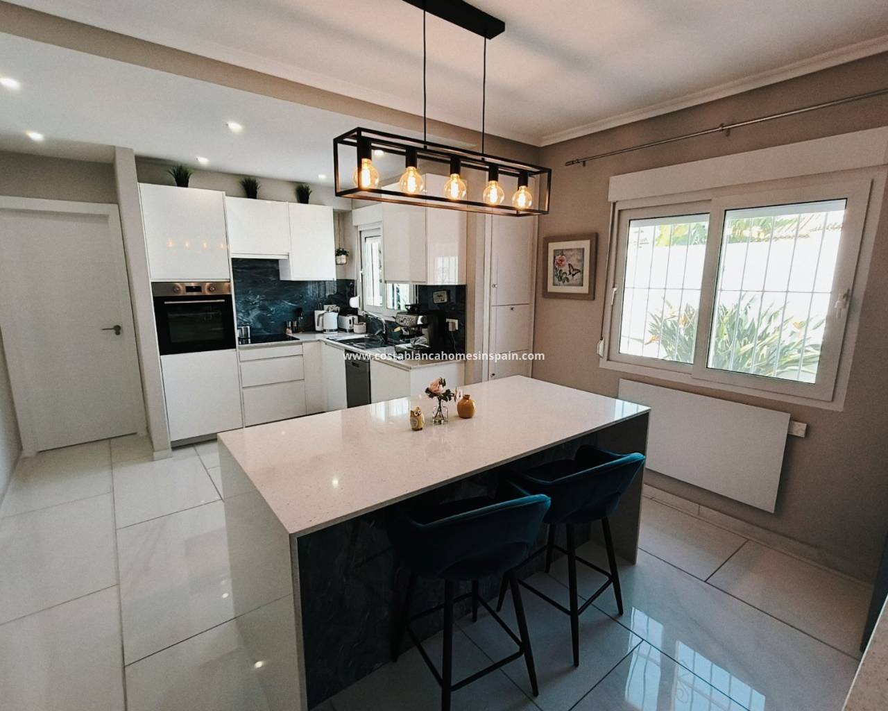 Vi er glade for å tilby denne renoverte vestvendte, tre-roms tomannsboligen i Playa Flamenca, som er perfekt plassert i et svært ettertraktet område. En kort fem-minutters spasertur tar deg til La Zenia Boulevard, hvor du finner et fantastisk utvalg av butikker, supermarkeder, barer og restauranter. De fantastiske strendene i Orihuela Costa ligger innen 15 minutters gange, mens topp golfbaner er bare en kort kjøretur unna.