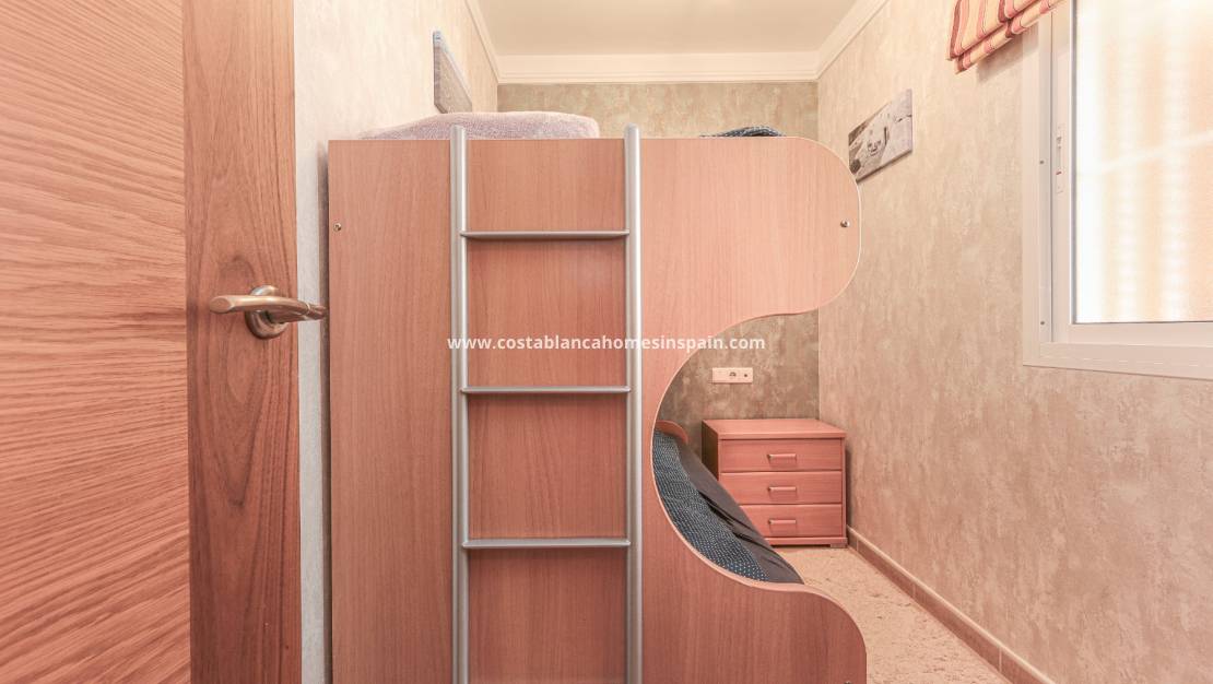 Denne nydelige leiligheten med 2 soverom og 1 bad ligger i Formentera de Segura, kun 12 minutters kjøring fra sandstrendene i Guardamar. Eiendommen gir den fulle opplevelsen av komfort å bo i hele året. Den har helt ny sentral aircon som kan regulere temperaturen inne i varmt og kaldt vær. Inn i den lukkede bygningsheisen tar oss opp til leiligheten som er separat stengt fra gangen. Etter å ha kommet inn i eiendommen har vi først gangen har egen inngangsenhet for sko, jakker og vesker enn gjestesoverommet er på vår høyre side med sin store garderobe og køyesenger for å sove 2 personer. Etter å ha passert gangen er vi inne i stue og amerikansk kjøkken som har alle gulv- og veggmonterte møbler og hvitevarer montert i. Stuen gir plass til spisehjørne, sofa og lenestoler og tv-enheten. Glass terrassedør åpner til den solrike terrassen som er komfortabel nok også på kaldere dager da den er dekket. Fra stuen kan vi gå til hovedsoverommet med sin brede garderobe og dobbeltseng i familiestørrelse. Foran den kan vi komme til badet med dusj og enkel vask.