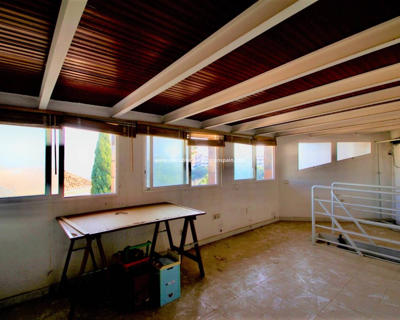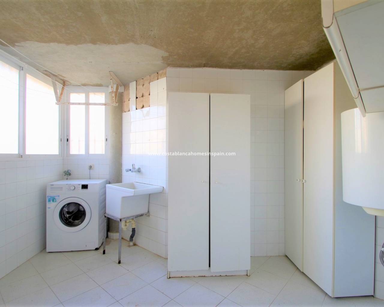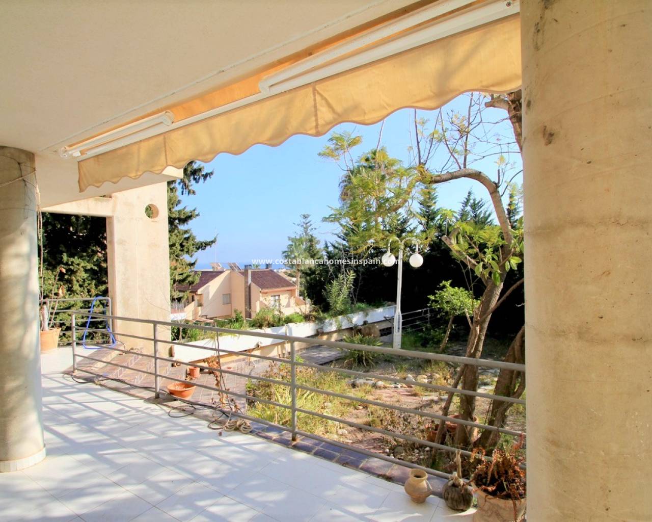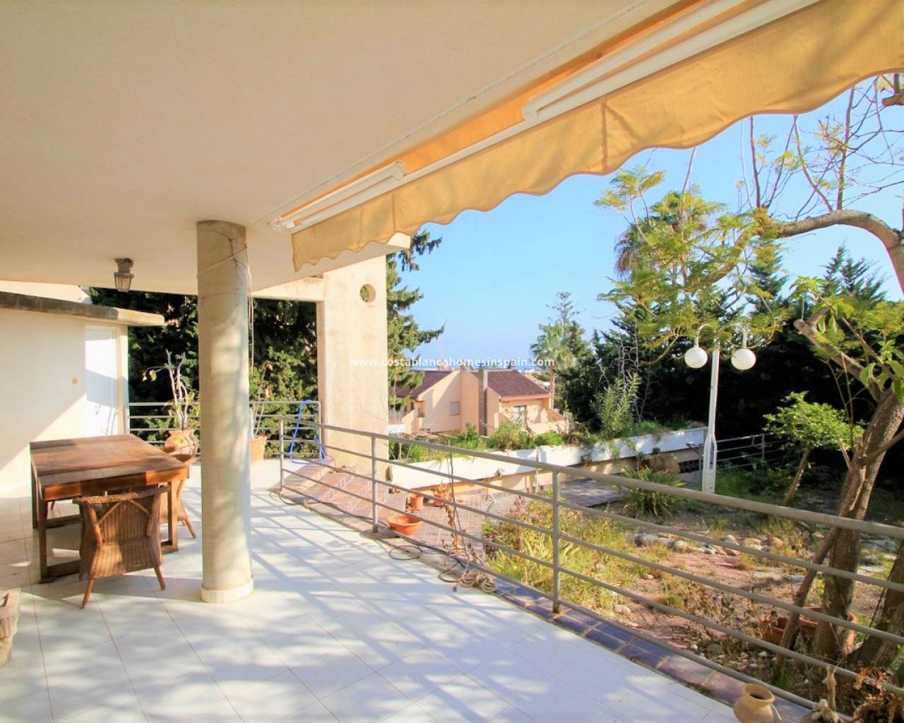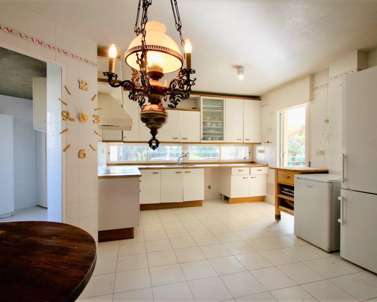 Detached villa with sea view close to the white sandy beaches of Campoamor. South facing villa on a flat plot of 1.000 m2, with sea-view from the terrace outside of the living-dining room, at the same time giving high privacy from neighbour views.There is plenty of room to construct a private pool surrounded by terraces, which could at the same level extend the existing terrace next to the living- and dining-room.The villa (360 m2) distributes on ground floor level over an entrance hall, a large living, dining area with a spacious kitchen (can easily be joined to the living-dining-area), a laundry / utility room, a double bedroom and a bathroom.On the upper floor a further 4 double bedrooms, and a family bathroom. The master bedroom with an ensuite bathroom and access to a terrace with sea view.On the third floor is a roof covered terrace of some 20 m2.The villa also has a massive garage with space enough to park 2/3 cars, motorbikes, jetskis, etc.The villa, which structural elements are made in strong concrete, needs to be refurbished. Price: 890.000€