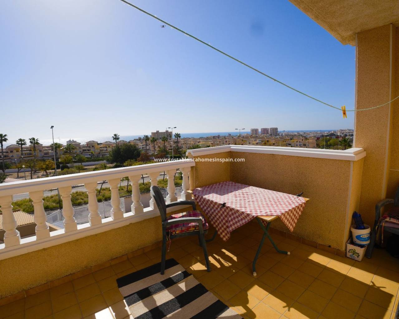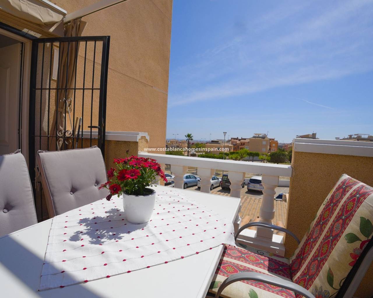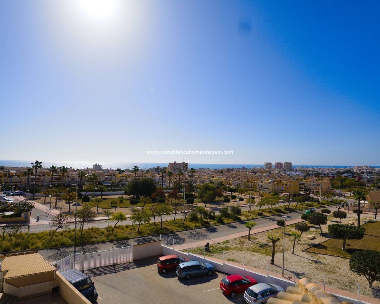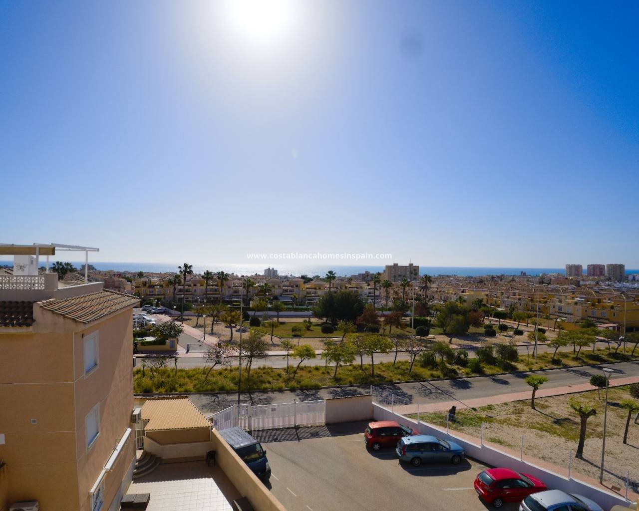 Look at this beautiful home that we just got in! It is south-facing and is located on a small hill just outside the centre of Torrevieja. The home has 3 bedrooms and 1.5 bathroom, 3 spacious balconies and a large, private roof terrace. There are fantastic views of the Mediterranean Sea, La Manga, the saltlake and the city - including both sunrise and sunset. The home is located in a well-run, gated urbanization with many Scandinavians. The urbanization has a large, beautiful pool area and parking for the owners inside the gated area. The home has had the same, Norwegian owners since it was brand new, and is well maintained. It is sold fully furnished and equipped, so you only need to bring your suitcase. If you want to update to a more modern style, we are happy to put you in touch with skilled craftsmen. Here you live centrally with good bus connections in the area, but also within comfortable walking distance to both the beach, promenade, city center, several supermarkets, restaurants, cafes, parks, pharmacies, etc. etc. Just a short drive away we also find several renowned golf courses such as La Marquesa, La Finca, Las Ramblas, Villamartin etc. The airport in Alicante is about 40 minutes away by car. Torrevieja is a popular area for those who want to enjoy the fantastic climate on Costa Blanca. Here you will find everything from great sports facilities, shopping, the popular Friday market that is held every week and many exciting events all year round. Contact us to arrange a viewing! We also arrange viewing trips from 3-5 days to show you homes that suits your wishes and budget. If you don’t have the opportunity to come to a viewing, we are happy to take a viewing digitally.