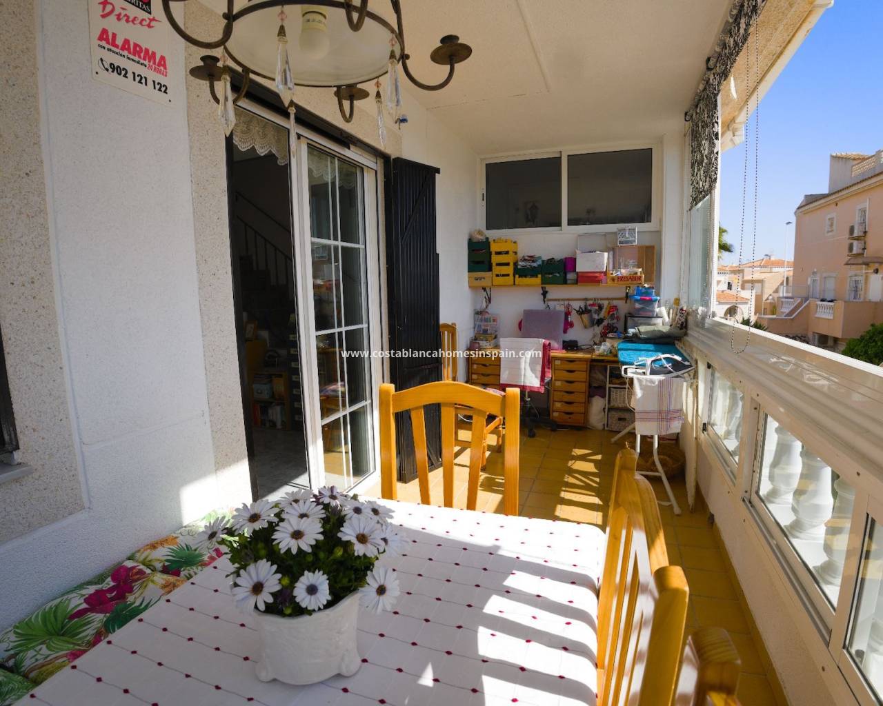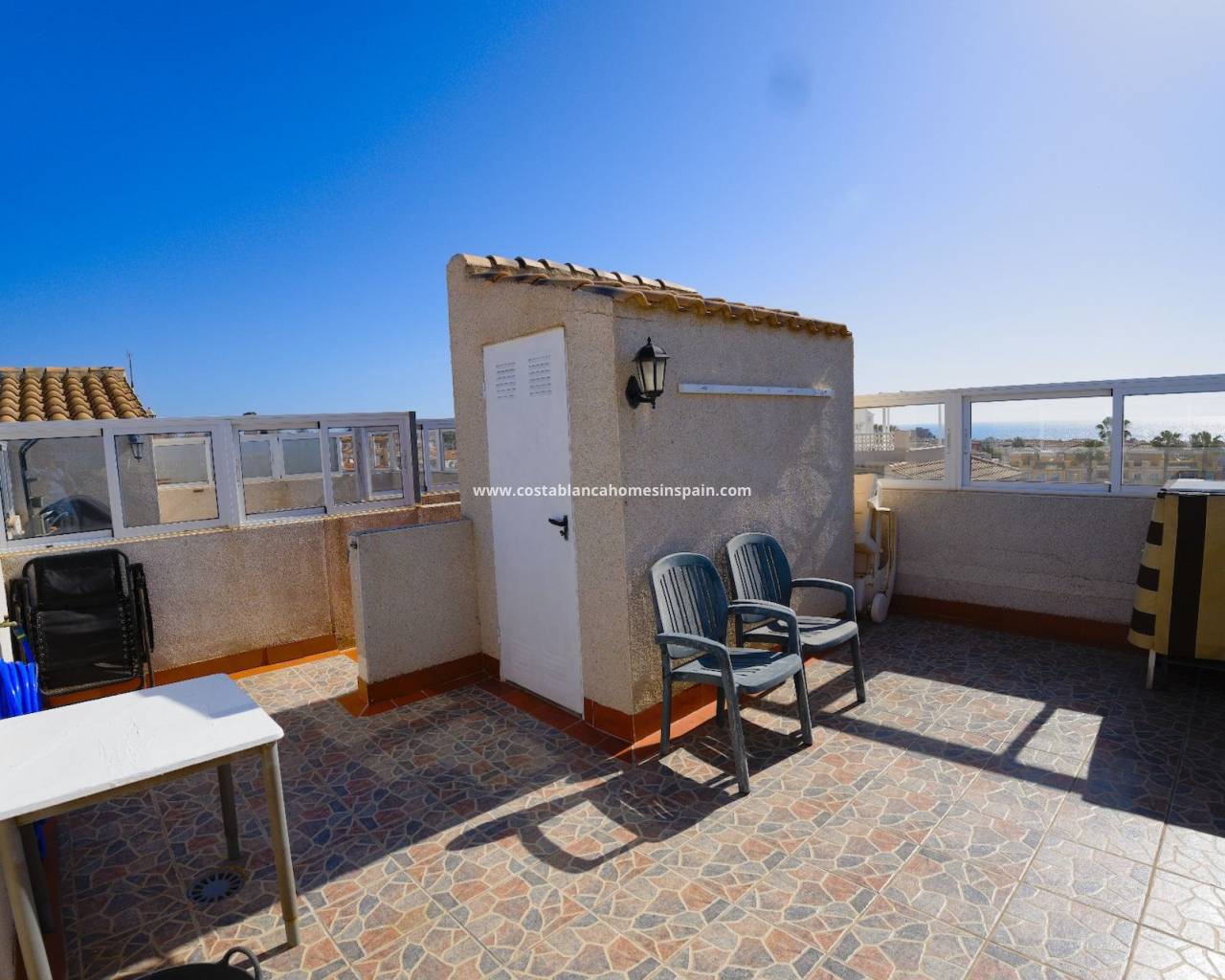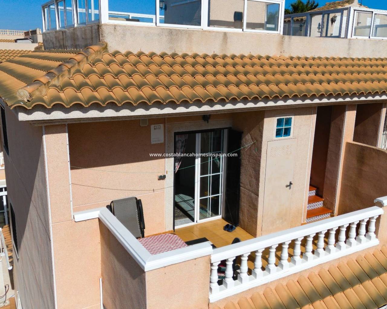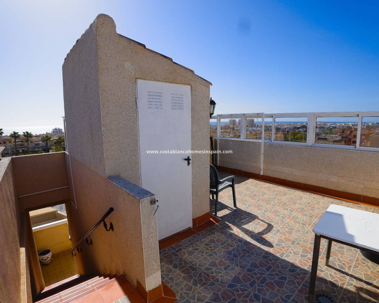 Look at this beautiful home that we just got in! It is south-facing and is located on a small hill just outside the centre of Torrevieja. The home has 3 bedrooms and 1.5 bathroom, 3 spacious balconies and a large, private roof terrace. There are fantastic views of the Mediterranean Sea, La Manga, the saltlake and the city - including both sunrise and sunset. The home is located in a well-run, gated urbanization with many Scandinavians. The urbanization has a large, beautiful pool area and parking for the owners inside the gated area. The home has had the same, Norwegian owners since it was brand new, and is well maintained. It is sold fully furnished and equipped, so you only need to bring your suitcase. If you want to update to a more modern style, we are happy to put you in touch with skilled craftsmen. Here you live centrally with good bus connections in the area, but also within comfortable walking distance to both the beach, promenade, city center, several supermarkets, restaurants, cafes, parks, pharmacies, etc. etc. Just a short drive away we also find several renowned golf courses such as La Marquesa, La Finca, Las Ramblas, Villamartin etc. The airport in Alicante is about 40 minutes away by car. Torrevieja is a popular area for those who want to enjoy the fantastic climate on Costa Blanca. Here you will find everything from great sports facilities, shopping, the popular Friday market that is held every week and many exciting events all year round. Contact us to arrange a viewing! We also arrange viewing trips from 3-5 days to show you homes that suits your wishes and budget. If you don’t have the opportunity to come to a viewing, we are happy to take a viewing digitally.