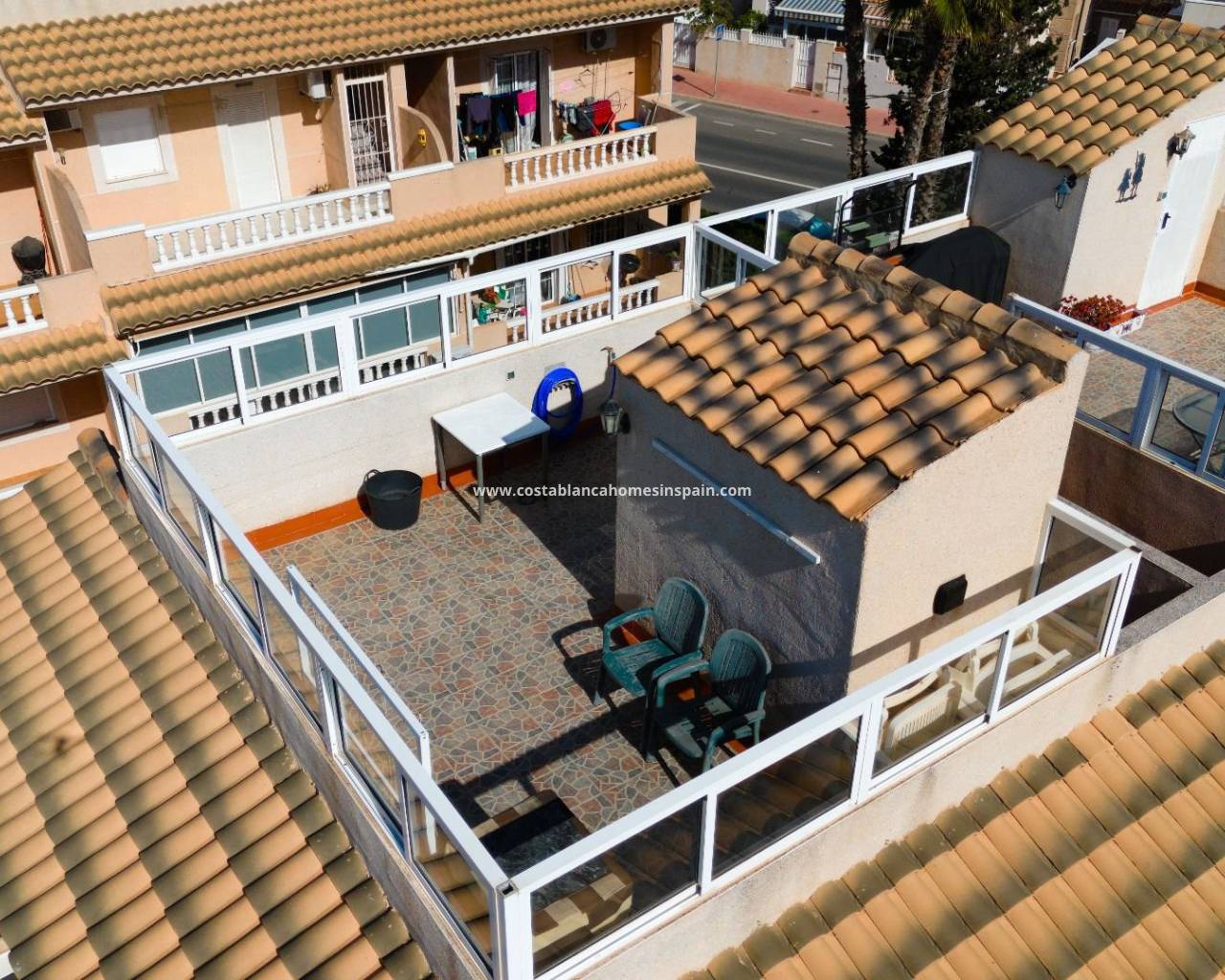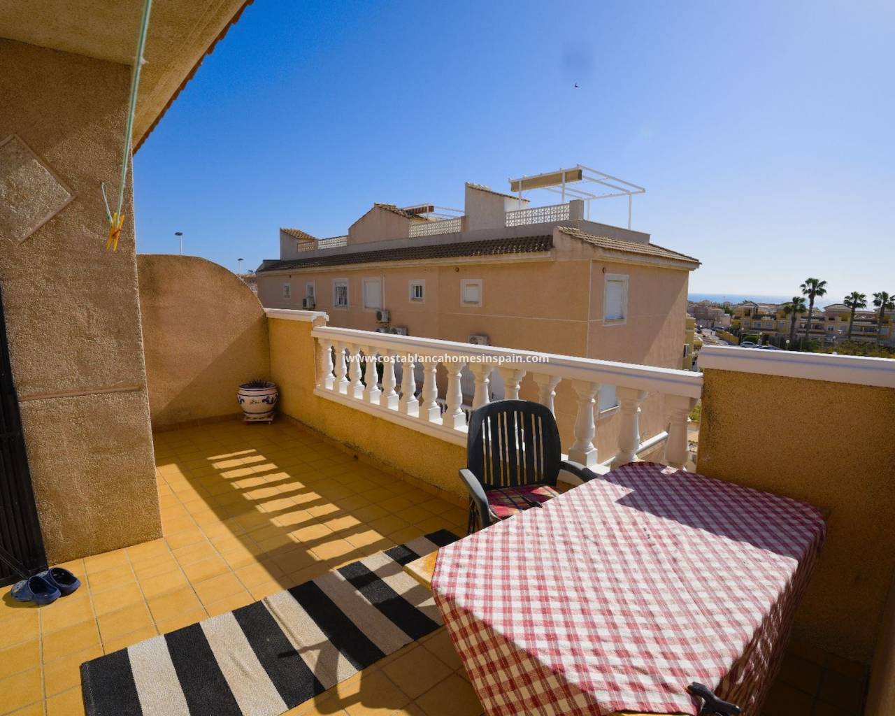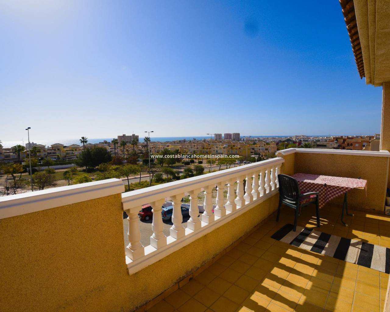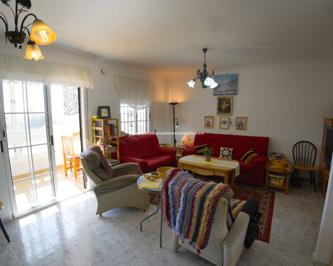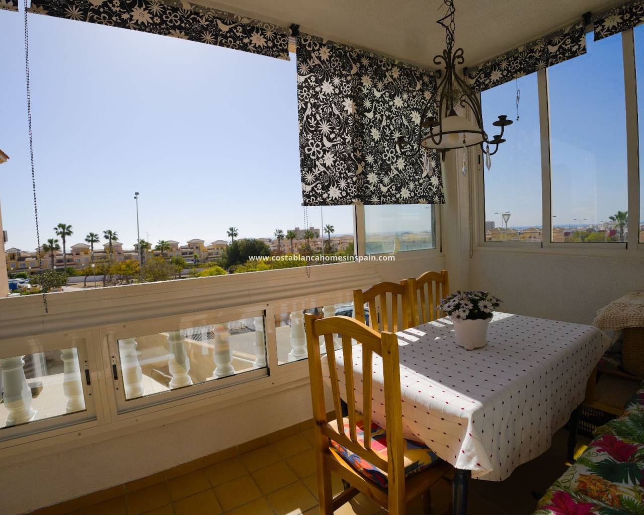Look at this beautiful home that we just got in! It is south-facing and is located on a small hill just outside the centre of Torrevieja. The home has 3 bedrooms and 1.5 bathroom, 3 spacious balconies and a large, private roof terrace. There are fantastic views of the Mediterranean Sea, La Manga, the saltlake and the city - including both sunrise and sunset. The home is located in a well-run, gated urbanization with many Scandinavians. The urbanization has a large, beautiful pool area and parking for the owners inside the gated area. The home has had the same, Norwegian owners since it was brand new, and is well maintained. It is sold fully furnished and equipped, so you only need to bring your suitcase. If you want to update to a more modern style, we are happy to put you in touch with skilled craftsmen. Here you live centrally with good bus connections in the area, but also within comfortable walking distance to both the beach, promenade, city center, several supermarkets, restaurants, cafes, parks, pharmacies, etc. etc. Just a short drive away we also find several renowned golf courses such as La Marquesa, La Finca, Las Ramblas, Villamartin etc. The airport in Alicante is about 40 minutes away by car. Torrevieja is a popular area for those who want to enjoy the fantastic climate on Costa Blanca. Here you will find everything from great sports facilities, shopping, the popular Friday market that is held every week and many exciting events all year round. Contact us to arrange a viewing! We also arrange viewing trips from 3-5 days to show you homes that suits your wishes and budget. If you don’t have the opportunity to come to a viewing, we are happy to take a viewing digitally.