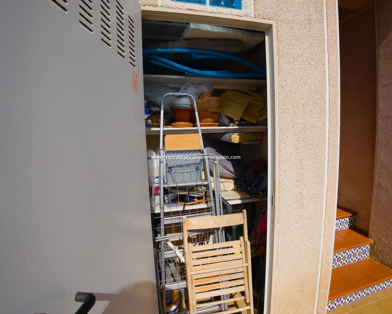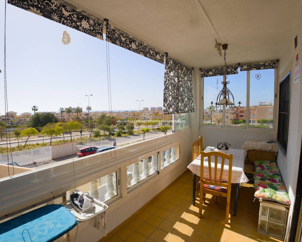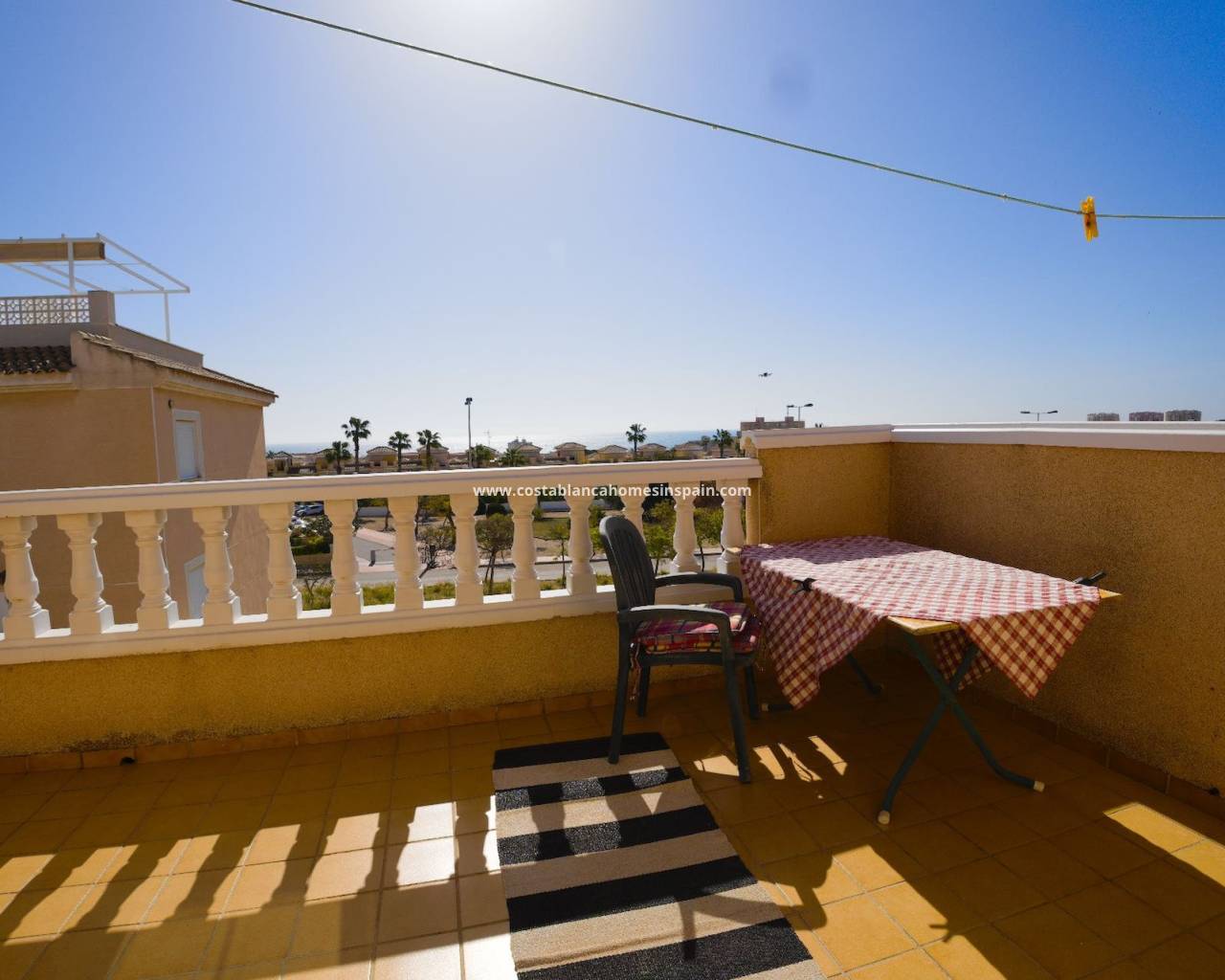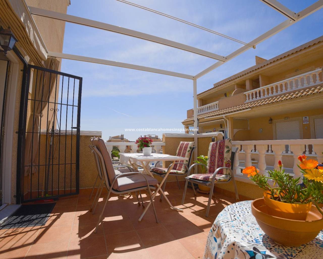 Look at this beautiful home that we just got in! It is south-facing and is located on a small hill just outside the centre of Torrevieja. The home has 3 bedrooms and 1.5 bathroom, 3 spacious balconies and a large, private roof terrace. There are fantastic views of the Mediterranean Sea, La Manga, the saltlake and the city - including both sunrise and sunset. The home is located in a well-run, gated urbanization with many Scandinavians. The urbanization has a large, beautiful pool area and parking for the owners inside the gated area. The home has had the same, Norwegian owners since it was brand new, and is well maintained. It is sold fully furnished and equipped, so you only need to bring your suitcase. If you want to update to a more modern style, we are happy to put you in touch with skilled craftsmen. Here you live centrally with good bus connections in the area, but also within comfortable walking distance to both the beach, promenade, city center, several supermarkets, restaurants, cafes, parks, pharmacies, etc. etc. Just a short drive away we also find several renowned golf courses such as La Marquesa, La Finca, Las Ramblas, Villamartin etc. The airport in Alicante is about 40 minutes away by car. Torrevieja is a popular area for those who want to enjoy the fantastic climate on Costa Blanca. Here you will find everything from great sports facilities, shopping, the popular Friday market that is held every week and many exciting events all year round. Contact us to arrange a viewing! We also arrange viewing trips from 3-5 days to show you homes that suits your wishes and budget. If you don’t have the opportunity to come to a viewing, we are happy to take a viewing digitally.