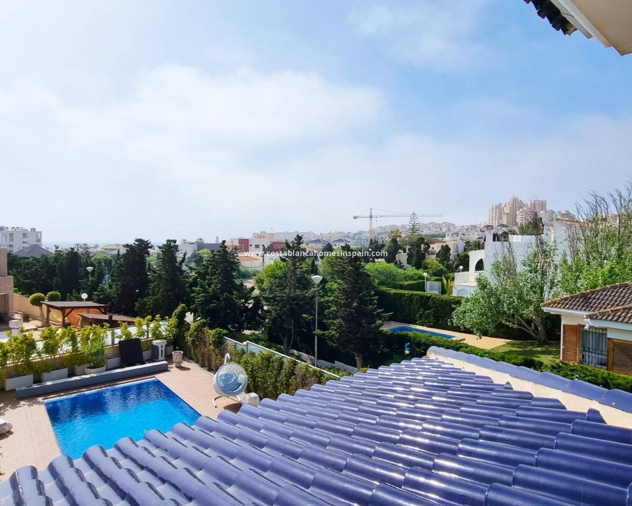 This exceptional villa presents a rare chance to own a spacious and elegant home in one of Torrevieja’s most desirable neighborhoods. Spanning three levels, the property features expansive living areas, panoramic views, and luxurious amenities crafted for comfort and leisure. Interior Layout Main Entrance Level: This floor includes three bedrooms, two bathrooms, a guest WC, and a shower room. A bright and airy living room and a fully equipped kitchen complete the space. Both the living area and one of the bedrooms open directly onto a large terrace—ideal for enjoying the outdoors. Upper Floor: Here you'll find two more bedrooms, an additional bathroom, and a charming balcony that showcases stunning views of the Mediterranean Sea and the surrounding area. Basement Level: The lower floor houses a spacious common room, a walk-in closet (which can be converted into an extra bedroom), a laundry area, and a luxurious private spa zone. This includes a Finnish sauna, Turkish steam room, and modern shower facilities. Outdoor Space Set on a generous plot, the villa offers a variety of outdoor spaces for entertainment and relaxation. Features include: A private swimming pool with a sun-drenched lounging area Ample parking for several vehicles Access to a shared garden and tennis court within the residential community Prime Location Located in a vibrant and well-connected area, the villa is surrounded by a wide selection of restaurants, bars, shops, and essential services. The famous La Mata Beach is just a short stroll away, offering golden sands and inviting beach bars where you can fully embrace the Mediterranean lifestyle. Lifestyle & Amenities Torrevieja is a lively coastal city that offers year-round entertainment and activities for all ages, including: Go-karting, bowling, cinemas, and shopping centers Several top-quality golf courses in the nearby region A rich culinary scene with a variety of excellent restaurants and bars A scenic harbor and a dynamic city center Your Dream Home Awaits Offering a blend of space, style, and a prime location, this villa is the perfect choice for a permanent residence or a luxurious holiday escape in the heart of Torrevieja.
