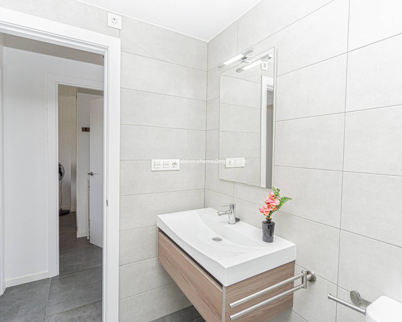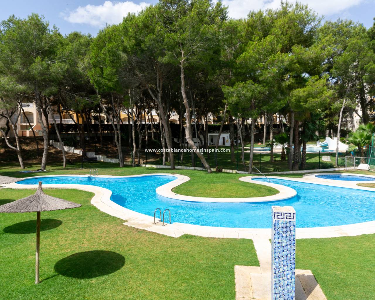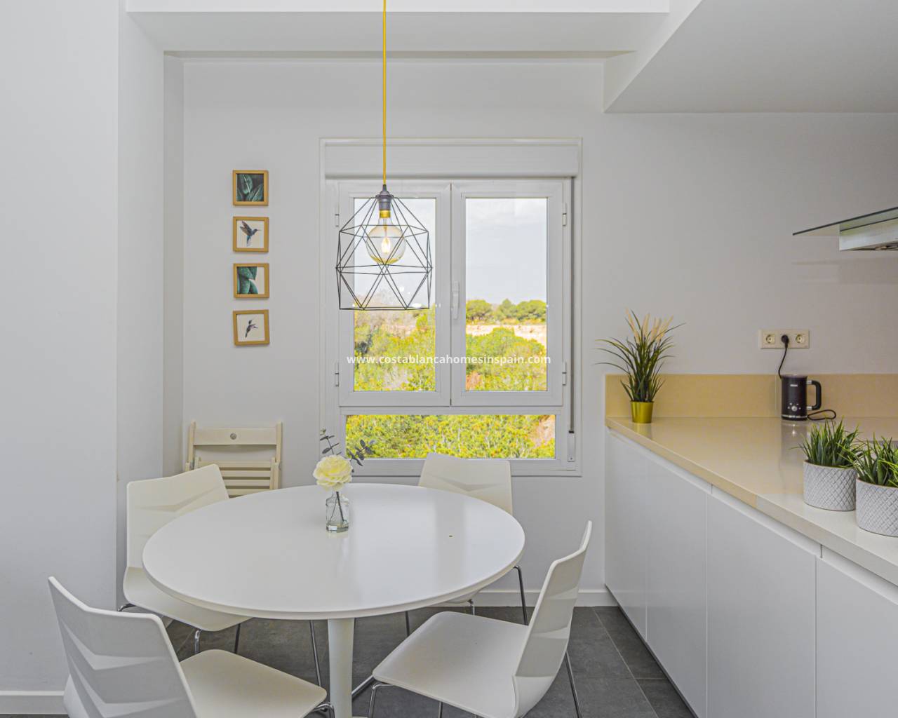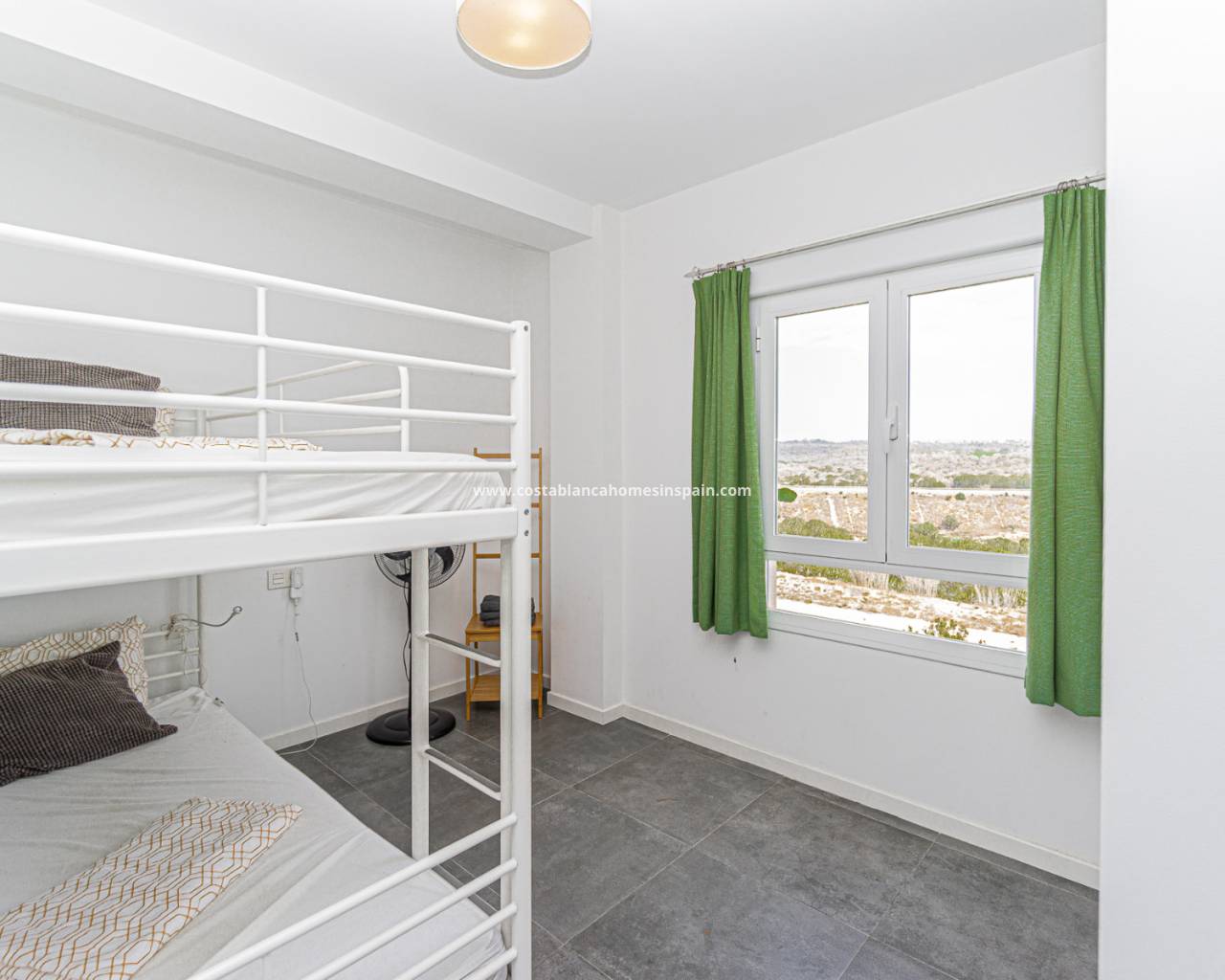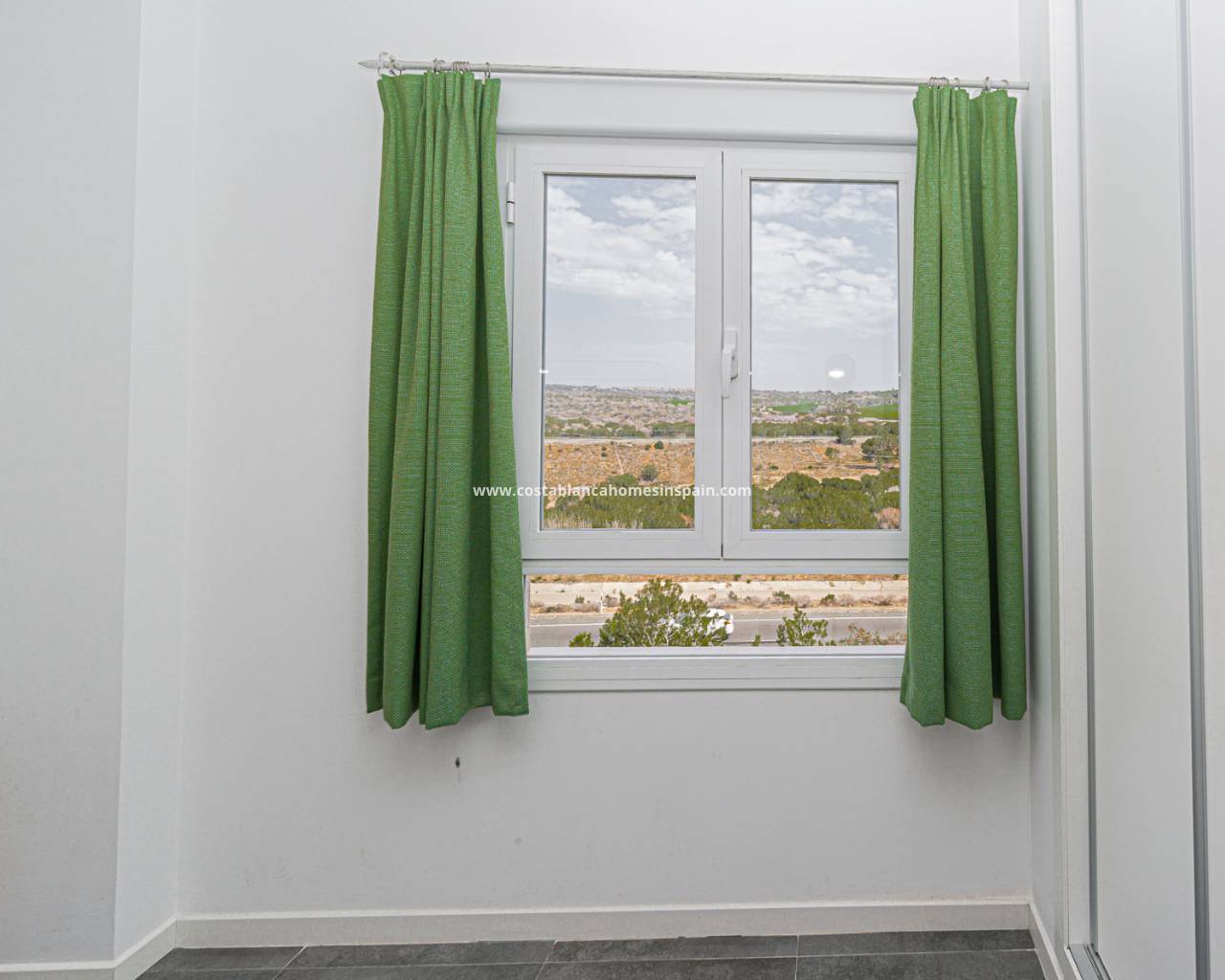 The layout is practical and comfortable. To the right of the entrance are two spacious bedrooms, both offering beautiful views of the Campoamor ravine and the Las Ramblas and Campoamor golf courses – ideal for nature and golf lovers.