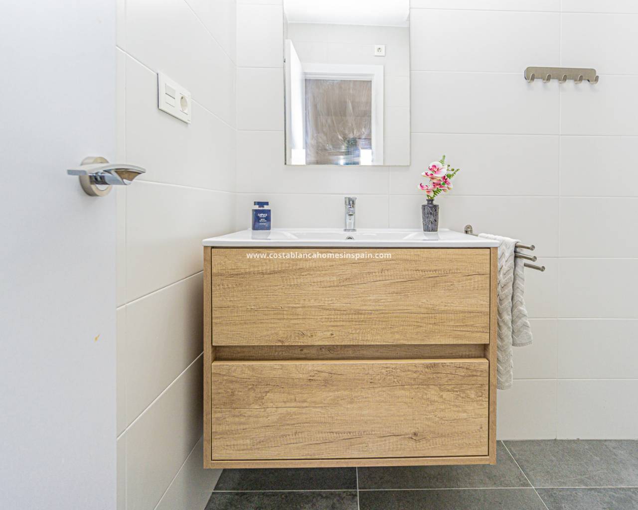 We present this lovely apartment located on the fifth floor of a modern building with a lift, built in 2016, in the sought-after urbanisation of Altos de Campoamor. The building offers a spacious and bright entrance hall, giving a great first impression.